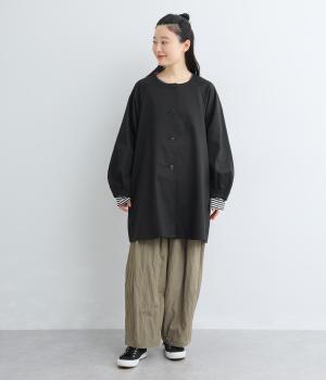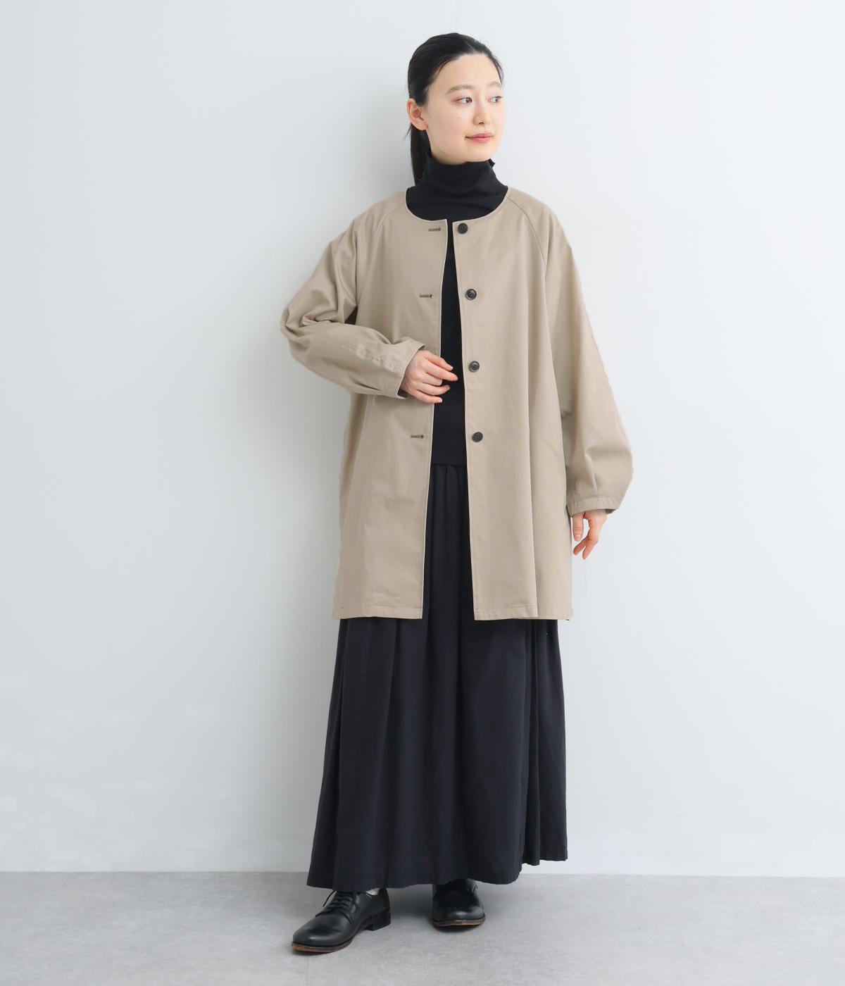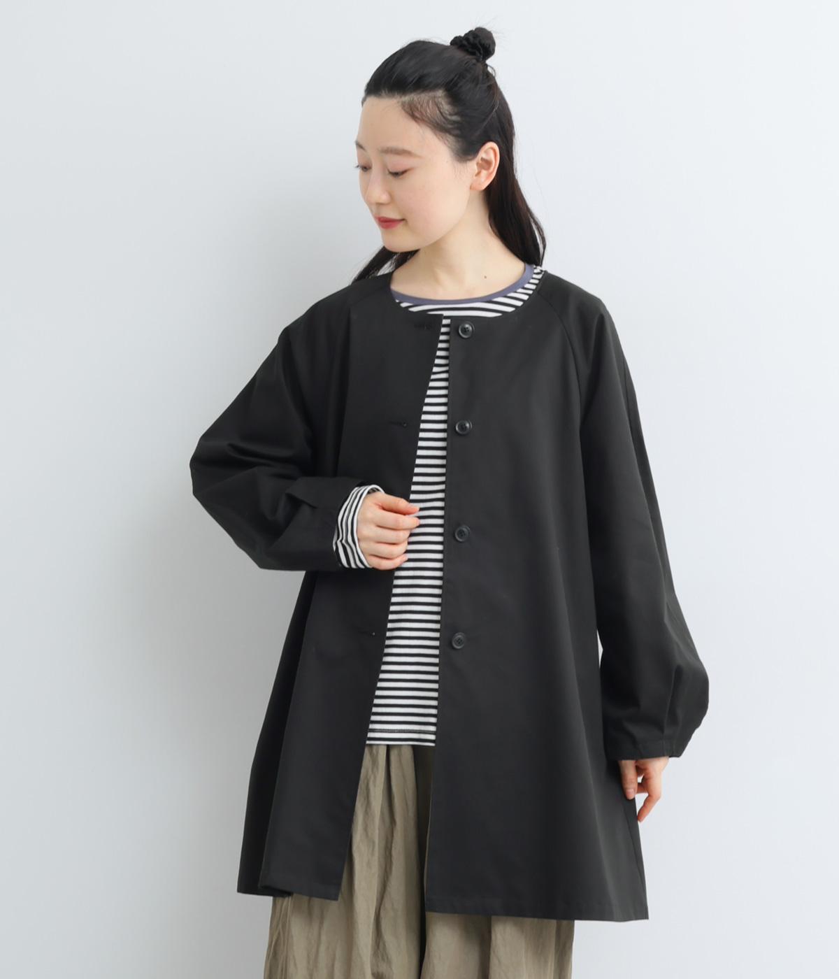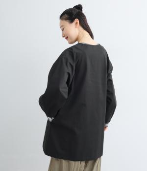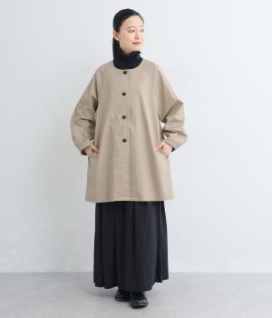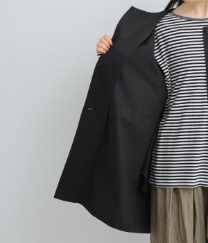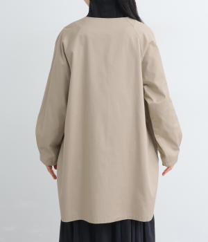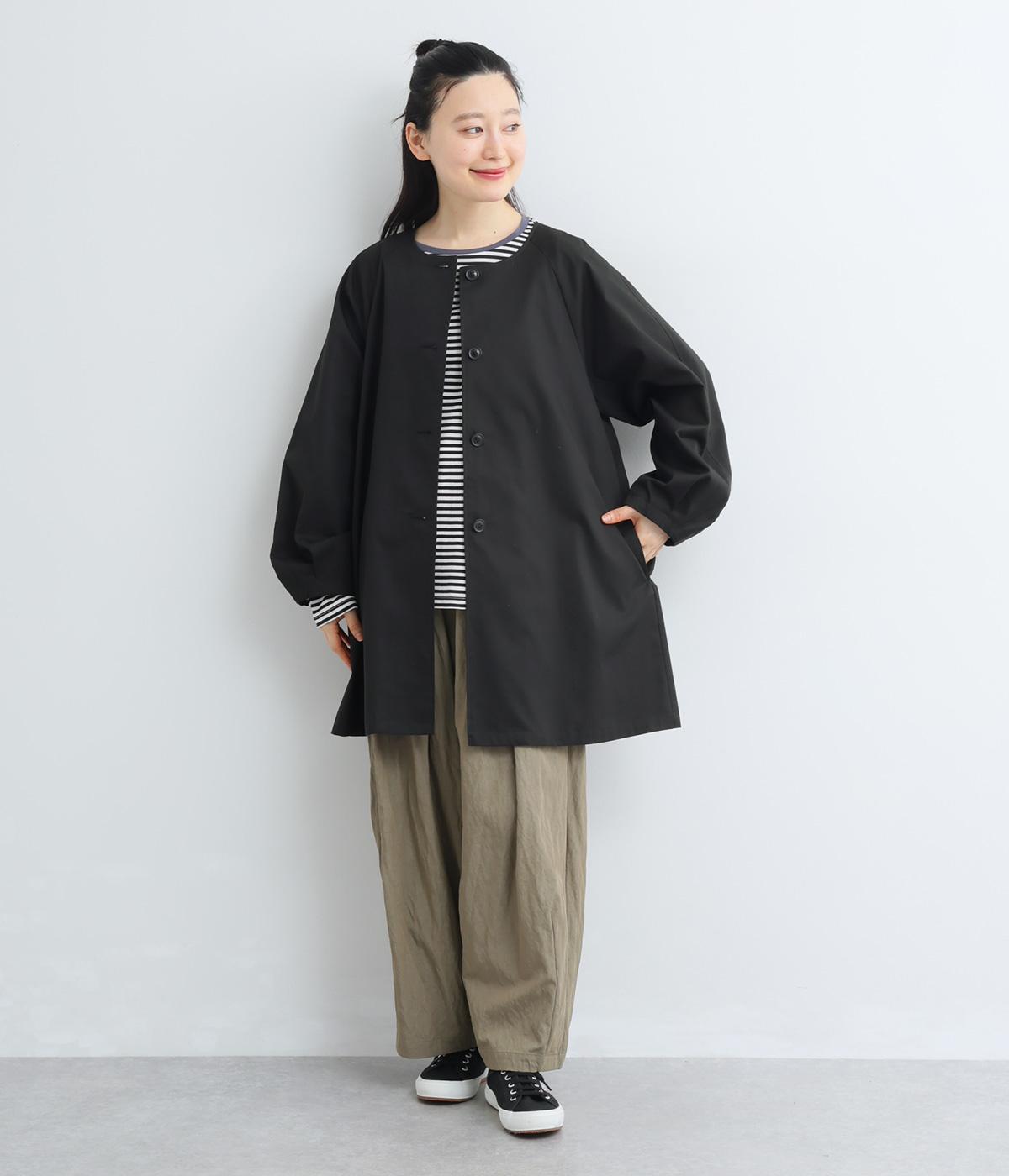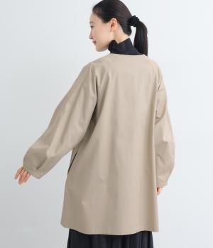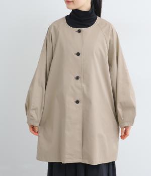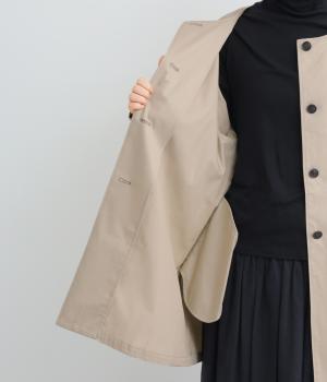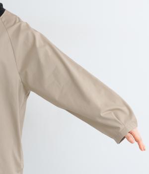 ほどよくハリのある生地感がボリューム袖のシルエットをきれいに描き、クラシカルでレディライクな雰囲気に仕上がりました。ラグラン仕立てのフレアシルエットで羽織りやすく、ノーカラーでさまざまなトップスと相性◎。
