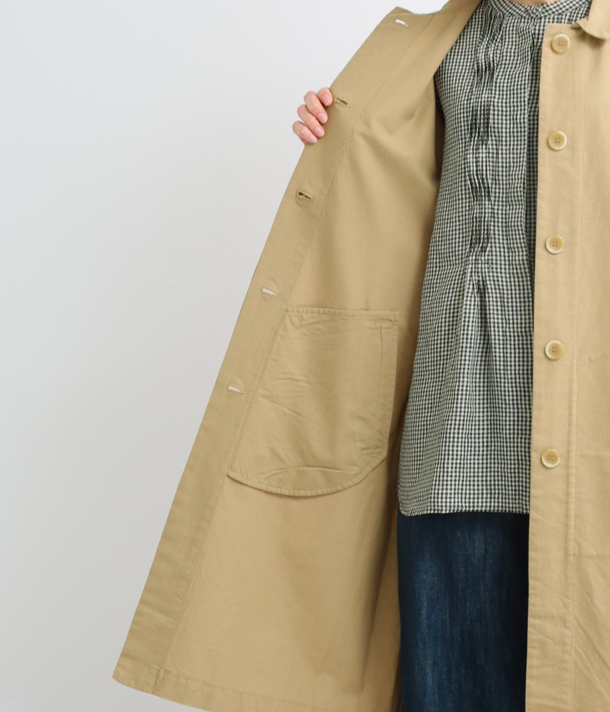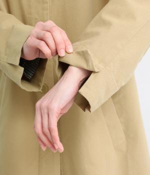 きちんとしたハリで存在感がありながらも、585gと軽量で羽織りやすいアウターです。シンプルなステンカラーコートは、オンにもオフにも活躍する頼れる一枚。袖口のスリットがさりげなく抜け感を添えます。