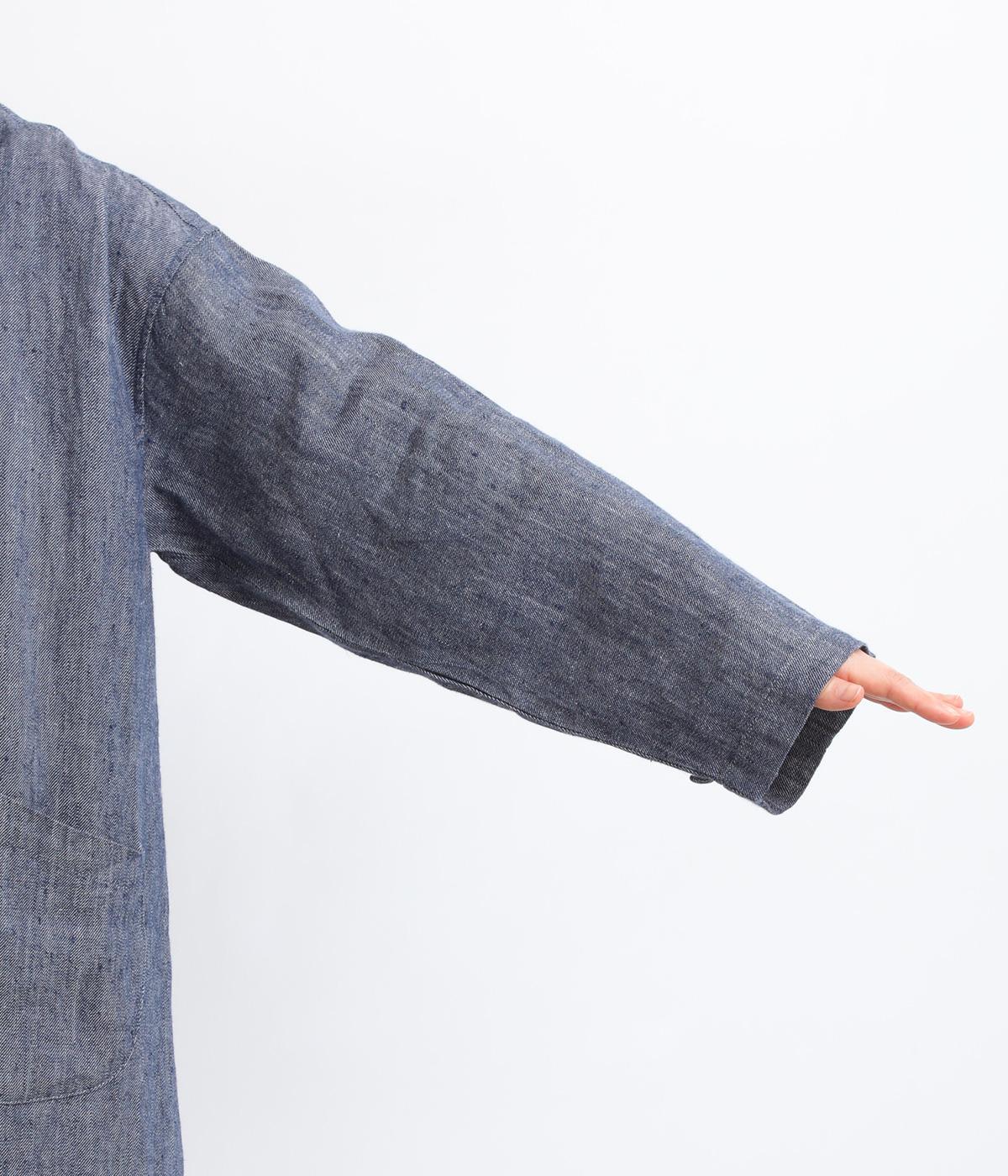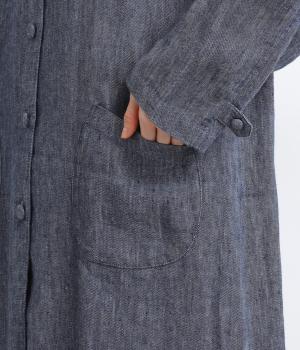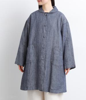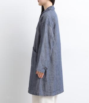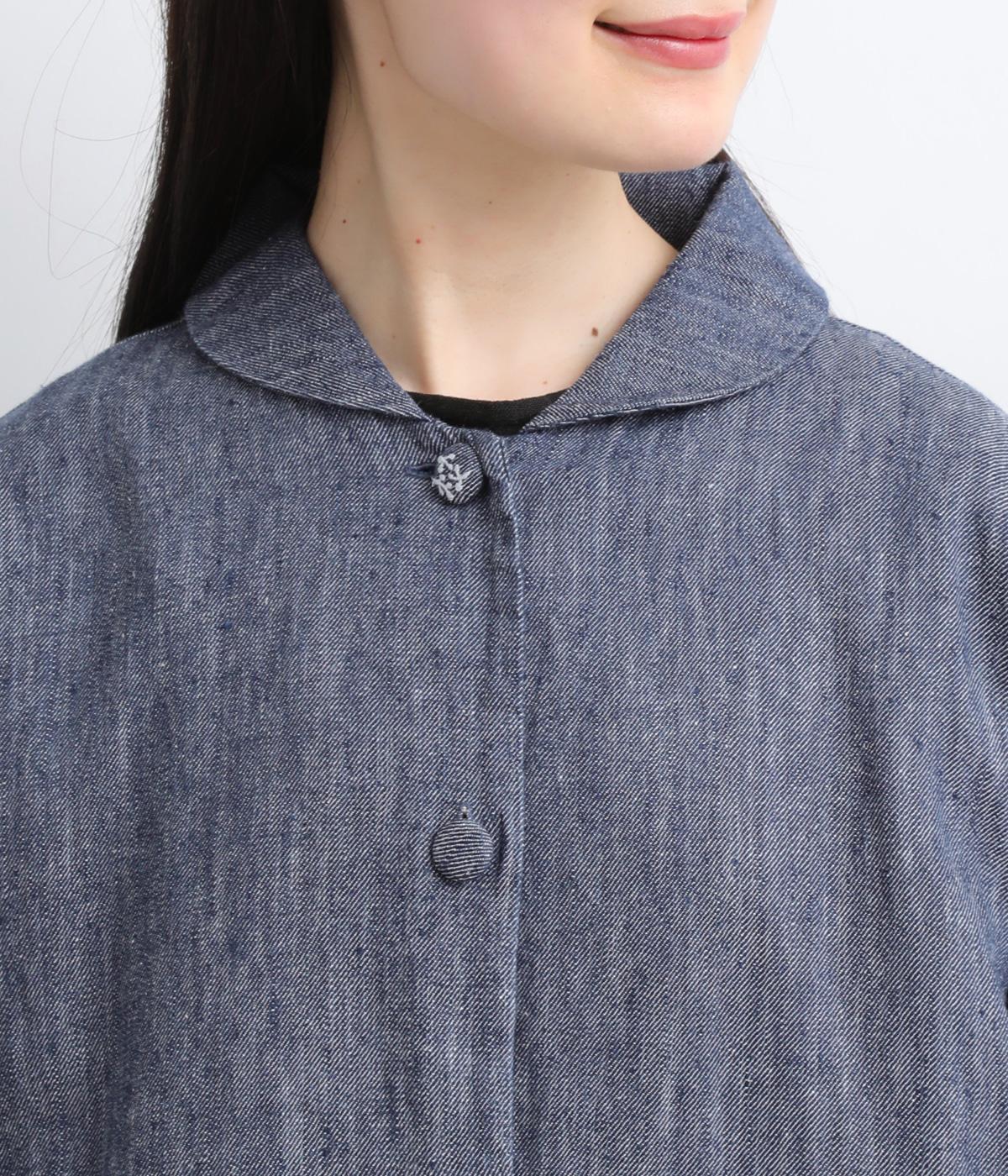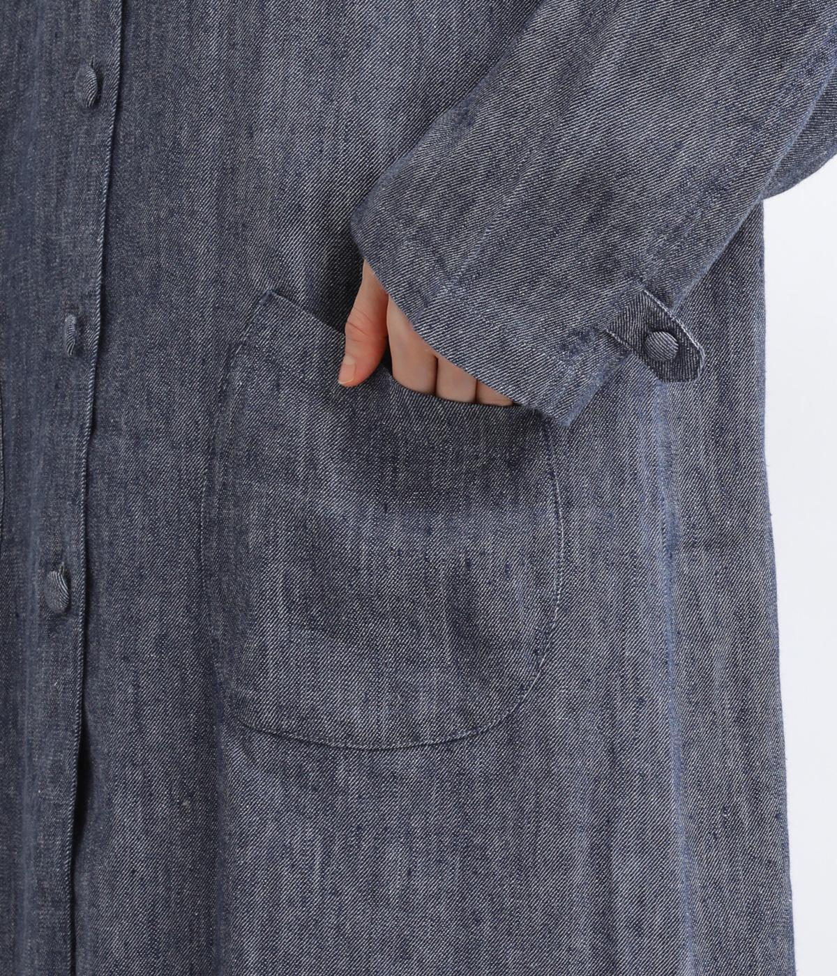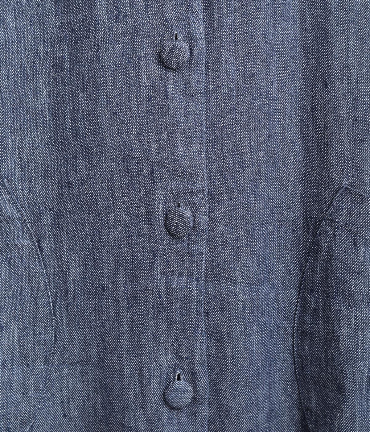 リネンを綾織りで仕立てた生地は、さらっとした手ざわりと軽やかな着用感が魅力。ほどよいハリがありながらも、やわらかく動きになじみます。織りの表情が、ナチュラルな風合いを引き立てる生地感です。