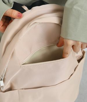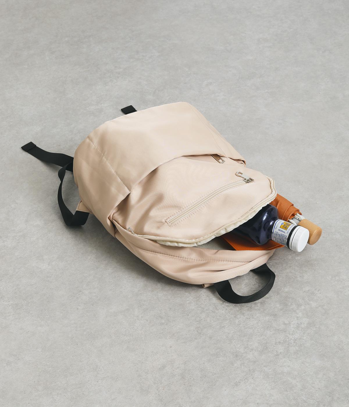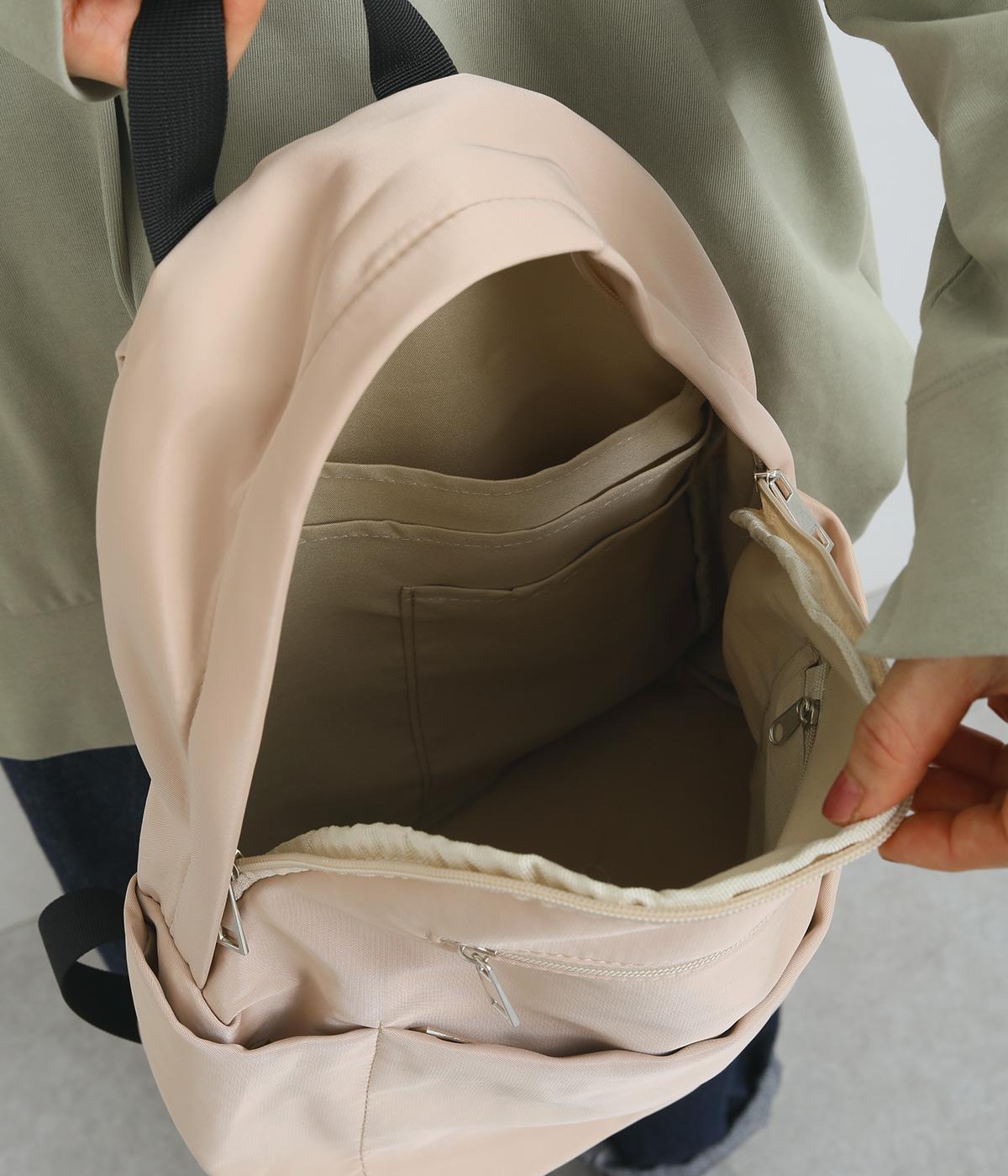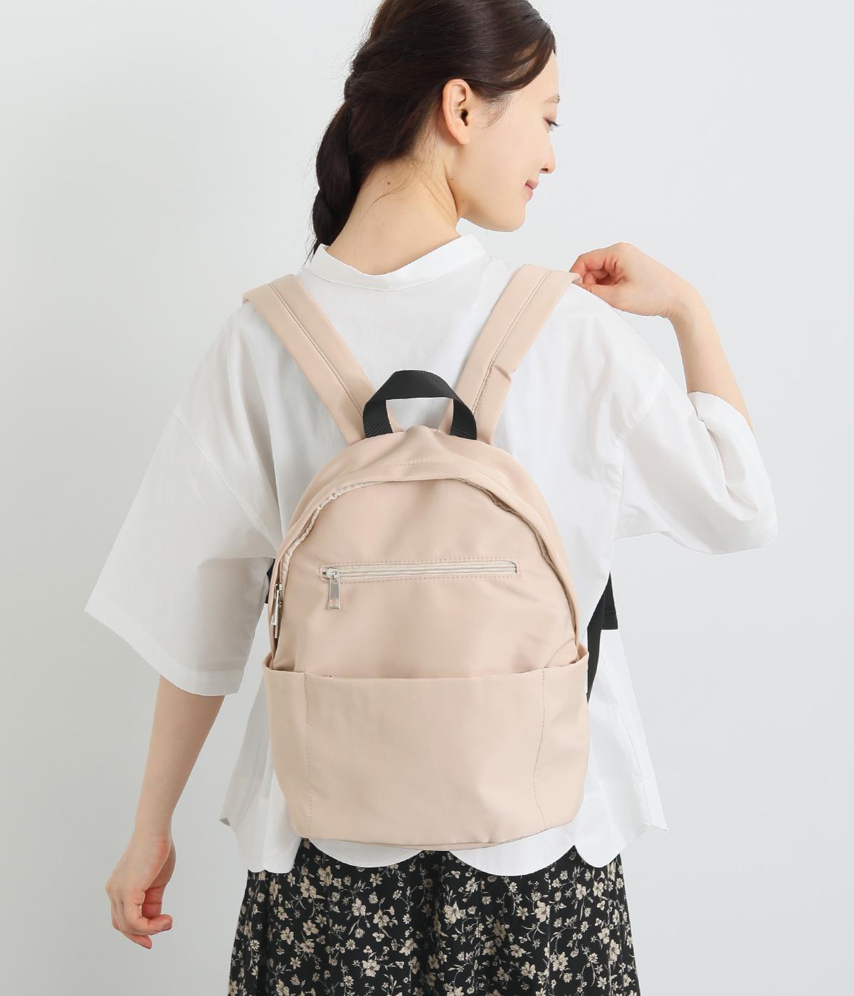 カジュアルさをおさえたシンプルなデザインで、さまざまな装いになじみやすいリュックです。内外に計8つのポケットを備えており、スマホやポーチ、チケットといった細かなものを整理して収納可能。A4書類が入るので通勤にも便利です。