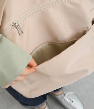 上品なツヤ感が特徴のさらりとしなやかなツイル生地で仕立てています。とても軽く丈夫なうえに撥水加工がほどこされており、日常使いにぴったりです。