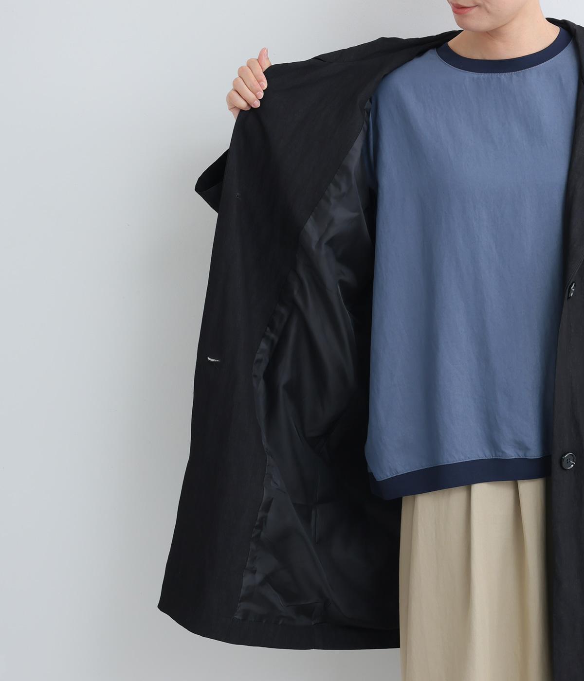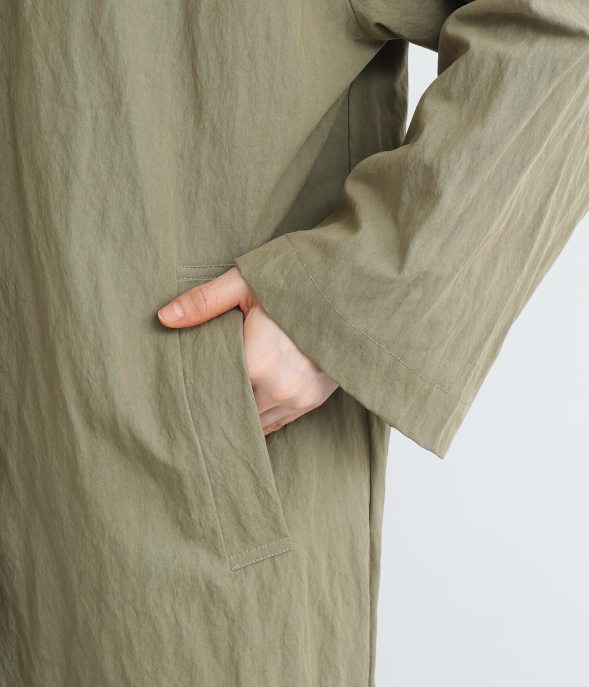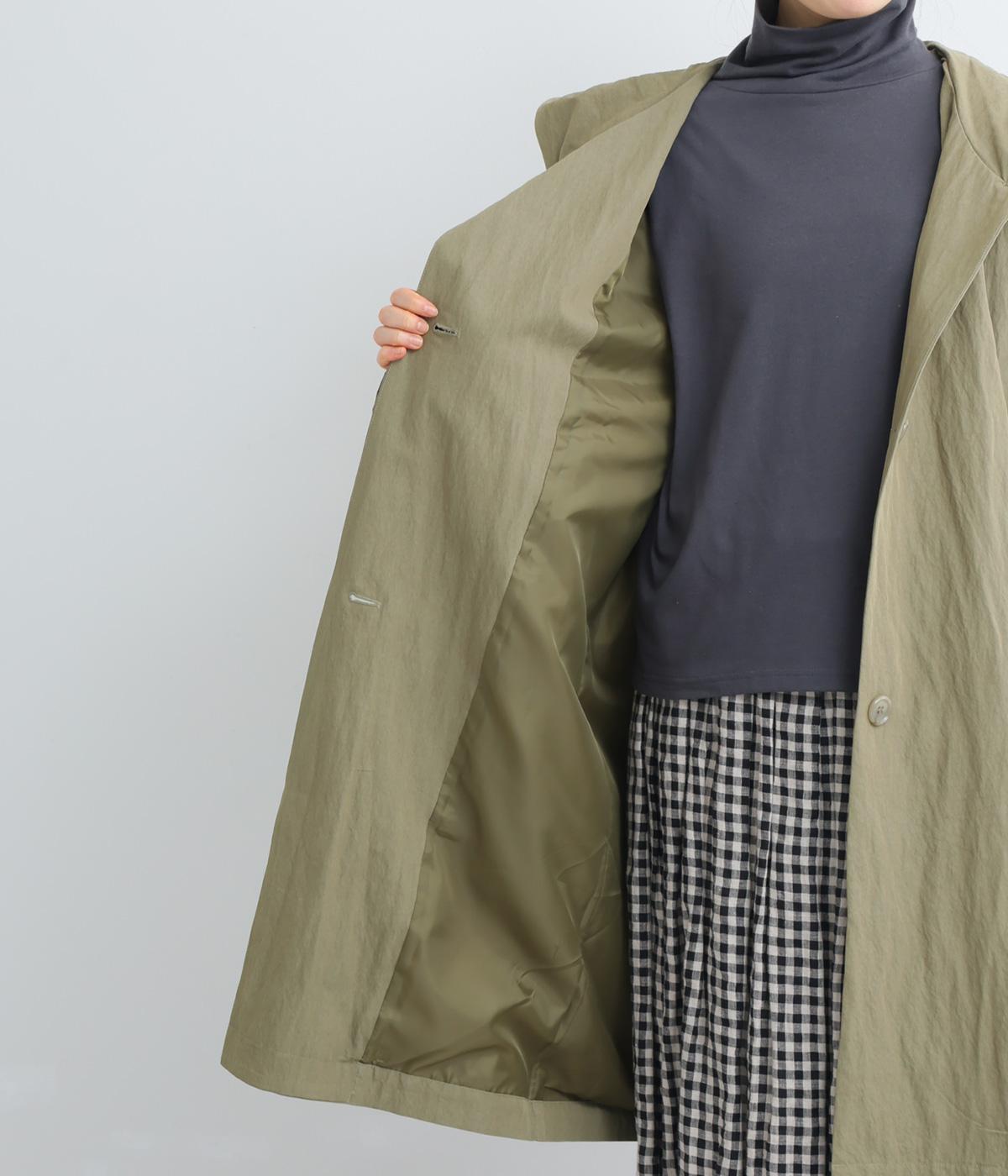 レーヨンのなめらかな光沢感とナイロンのタフさを併せ持った薄めの混紡生地を採用。自然なシボ感が独特のこなれ感を生み、すべりのいい総裏地つきで薄手ながらもロングシーズン活躍。