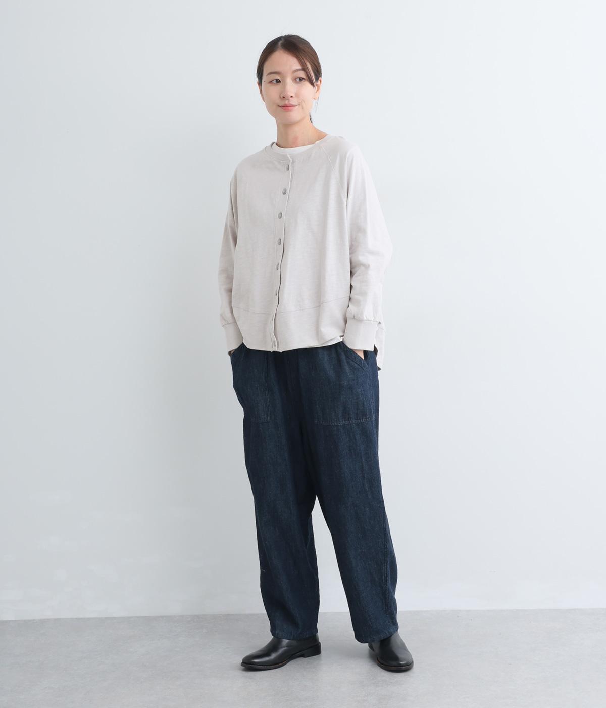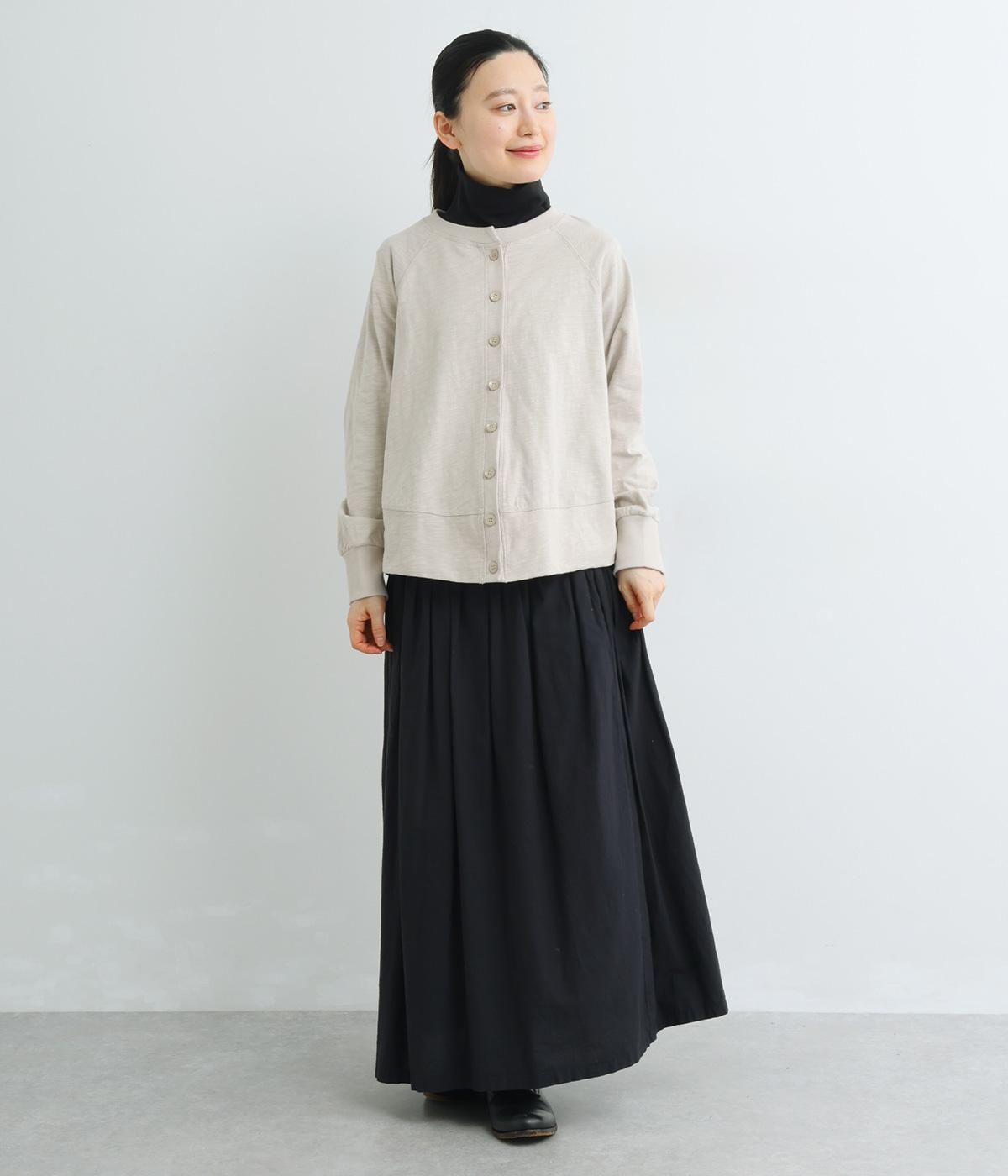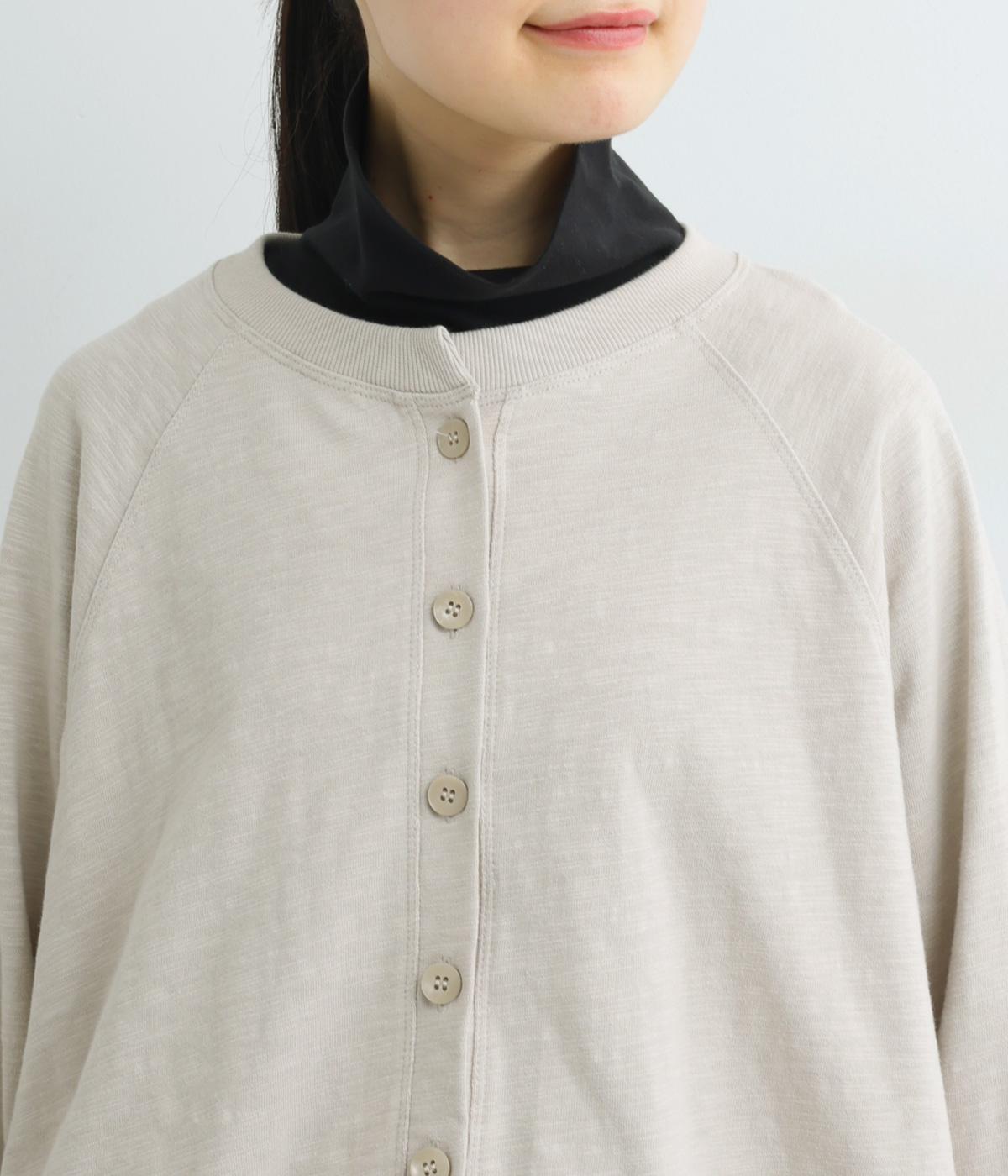 ゆったりとしたドルマンスリーブに、体を包み込むような後ろ裾が特徴的なカーディガン。カットソー生地でカジュアルに羽織りやすく、それでいてスタイリング全体をやわらかな雰囲気にまとめてくれます。襟ぐりと袖口はリブでメリハリを。