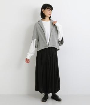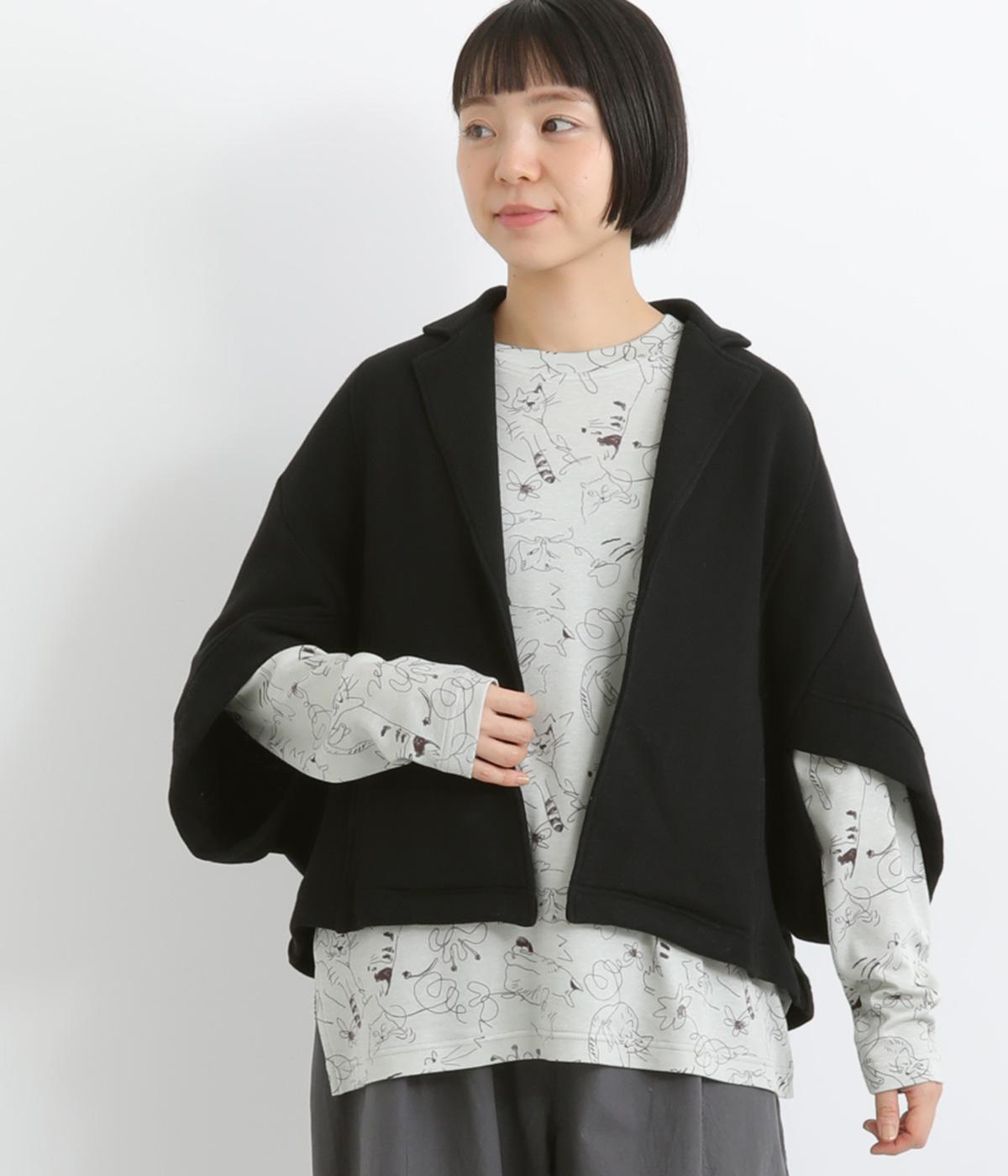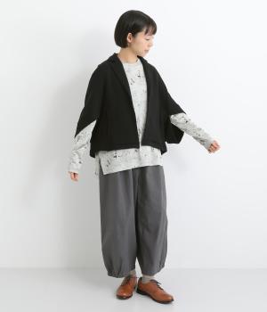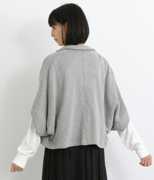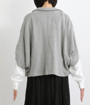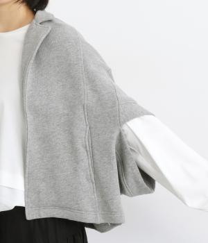 袖のデザインが個性的ながら、ラフに羽織りやすいテーラー風のショート丈ジャケット。ボレロのように肩まわりをやさしく包みこみ、スタイリングにニュアンスを追加してくれるデザイン。便利なポケットつきで実用性も◎。