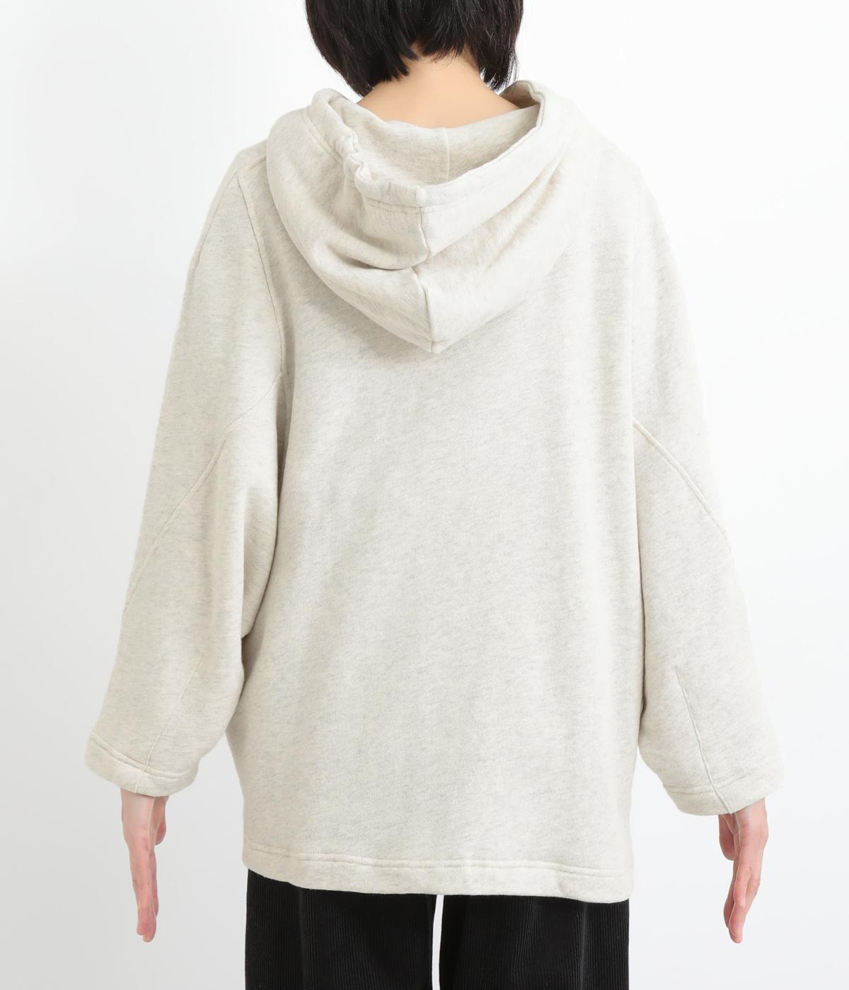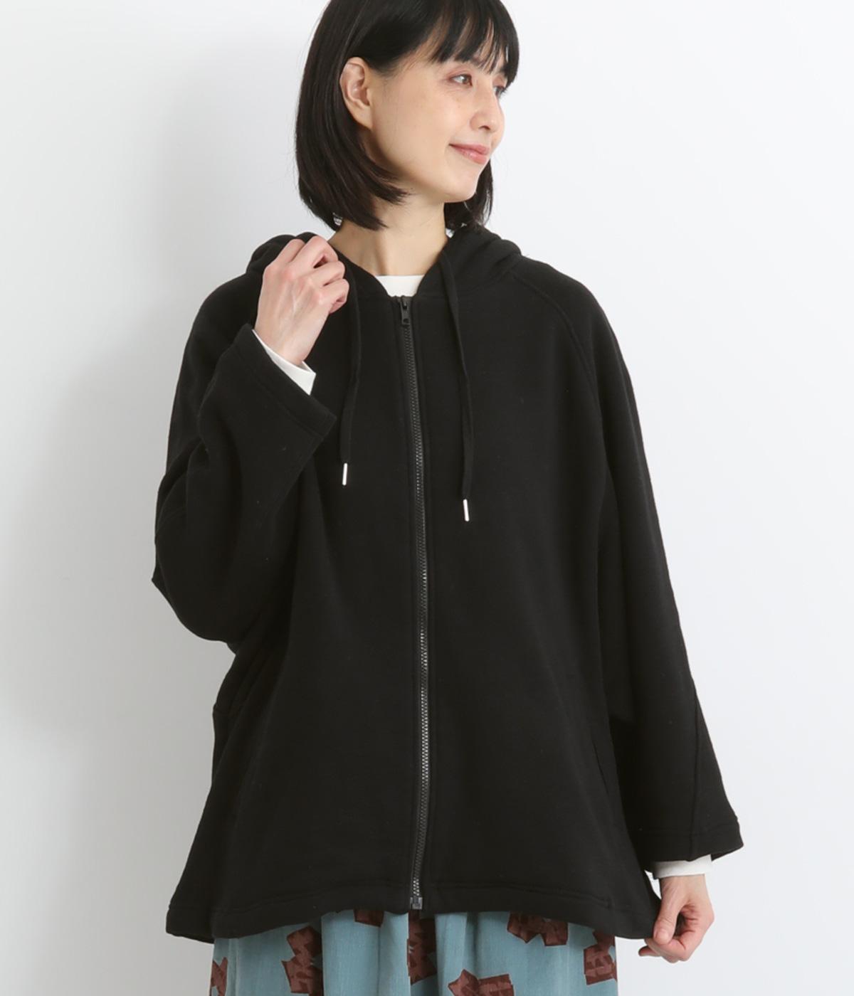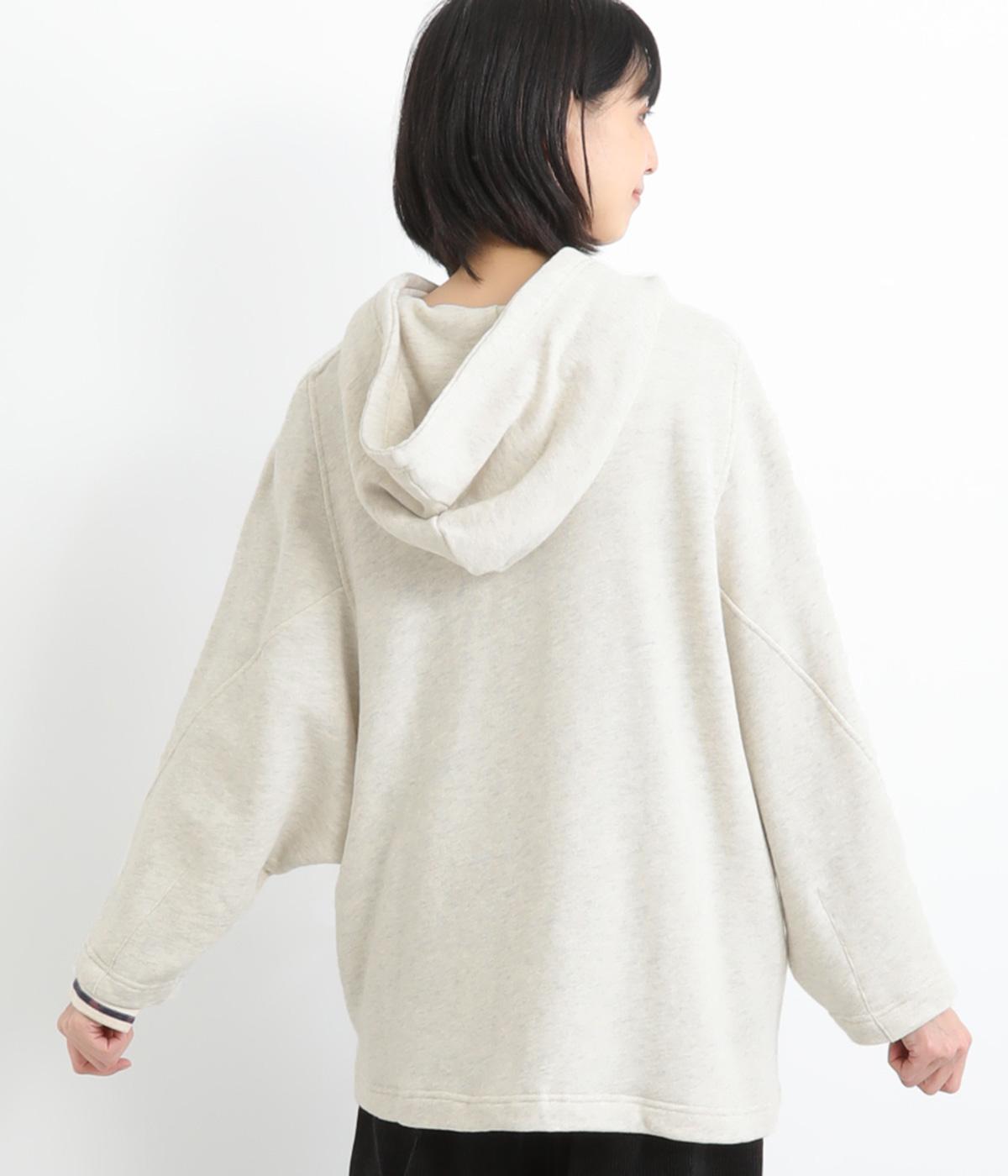 袖まわりの切り替えが特徴的な、ドルマンタイプのブルゾンです。パーカーとはひと味違ったフードつきのジップタイプで、ゆったりとしたラフ感とカジュアルさの絶妙なバランスが◎。オーバーサイズで着合わせしやすく、便利なポケットつきでふだん使いに最適。