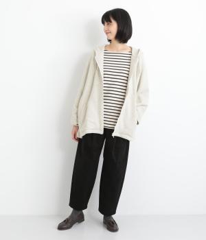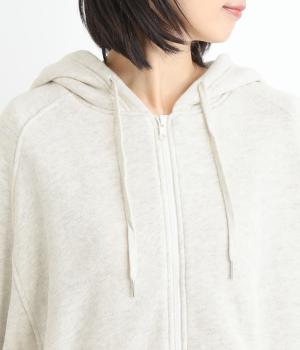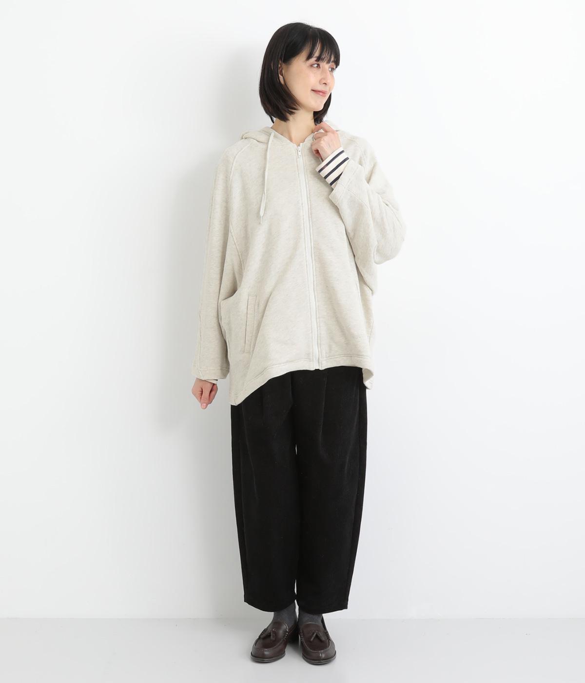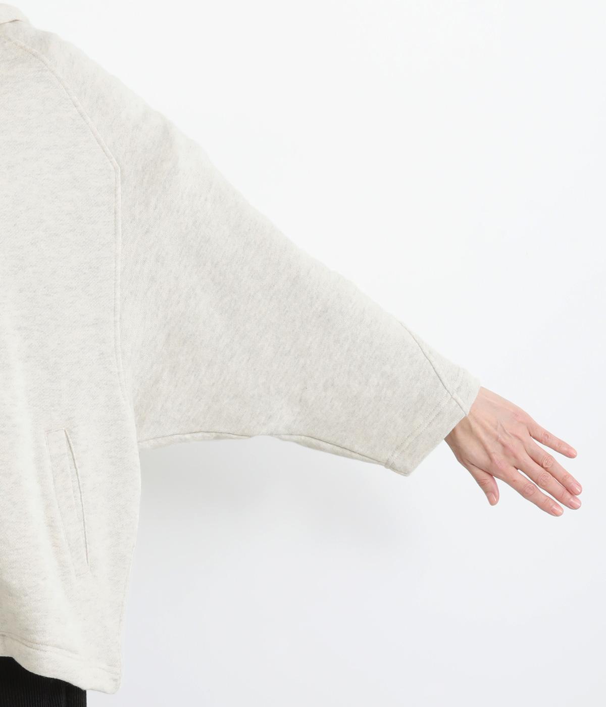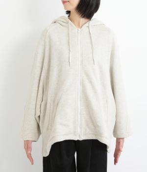 袖まわりの切り替えが特徴的な、ドルマンタイプのブルゾンです。パーカーとはひと味違ったフードつきのジップタイプで、ゆったりとしたラフ感とカジュアルさの絶妙なバランスが◎。オーバーサイズで着合わせしやすく、便利なポケットつきでふだん使いに最適。