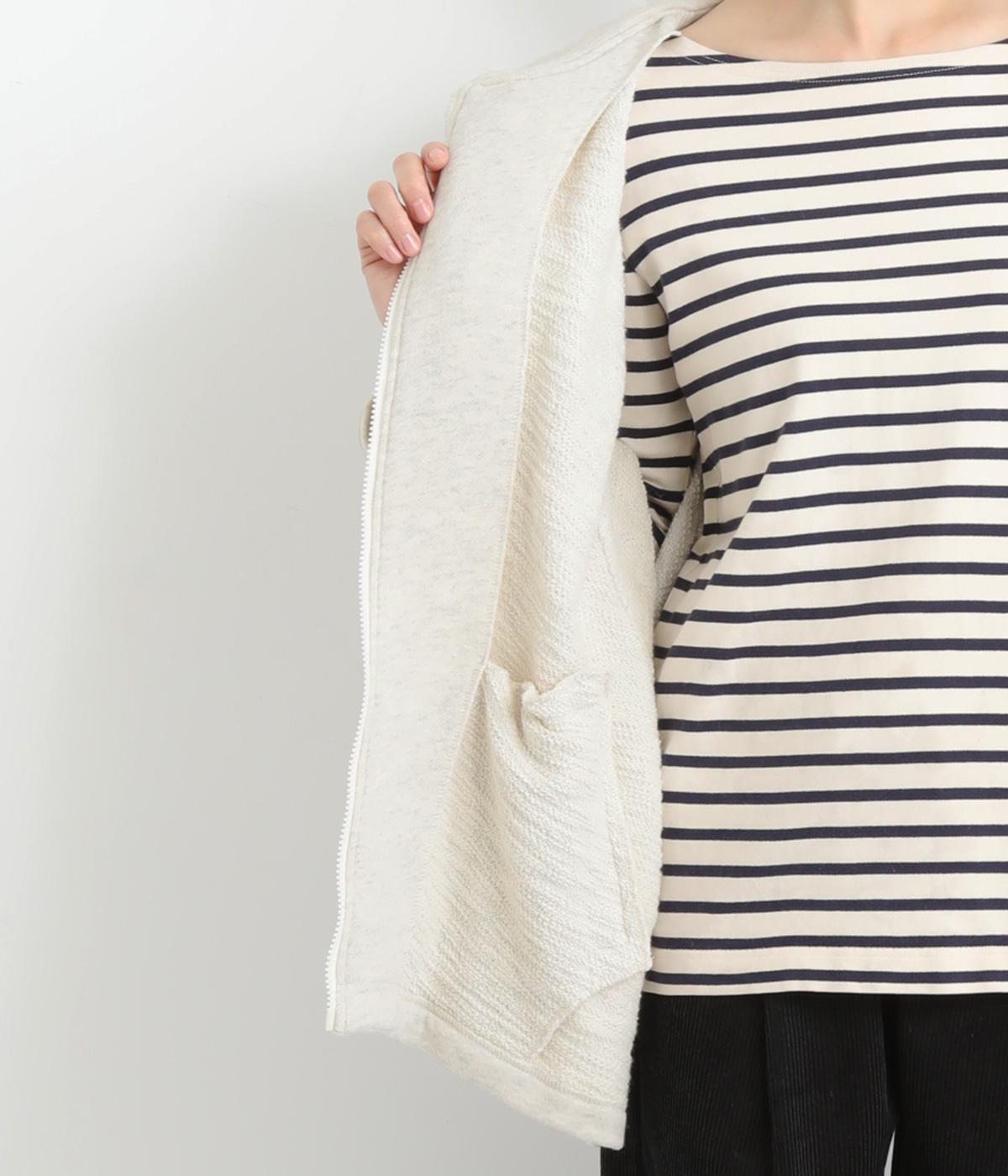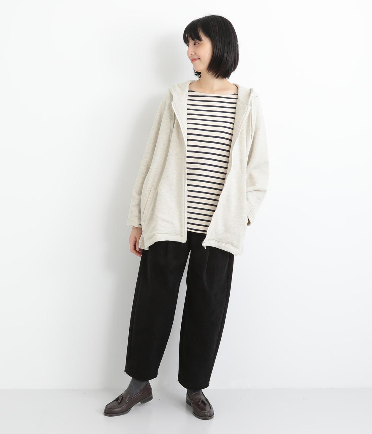 ループ裏毛という特殊な編み方をしたスラブメランジ裏毛のコットン生地を採用。とてもやわらかで伸びも良く、抜群の着心地が魅力的。裏毛で肌あたりも快適です。