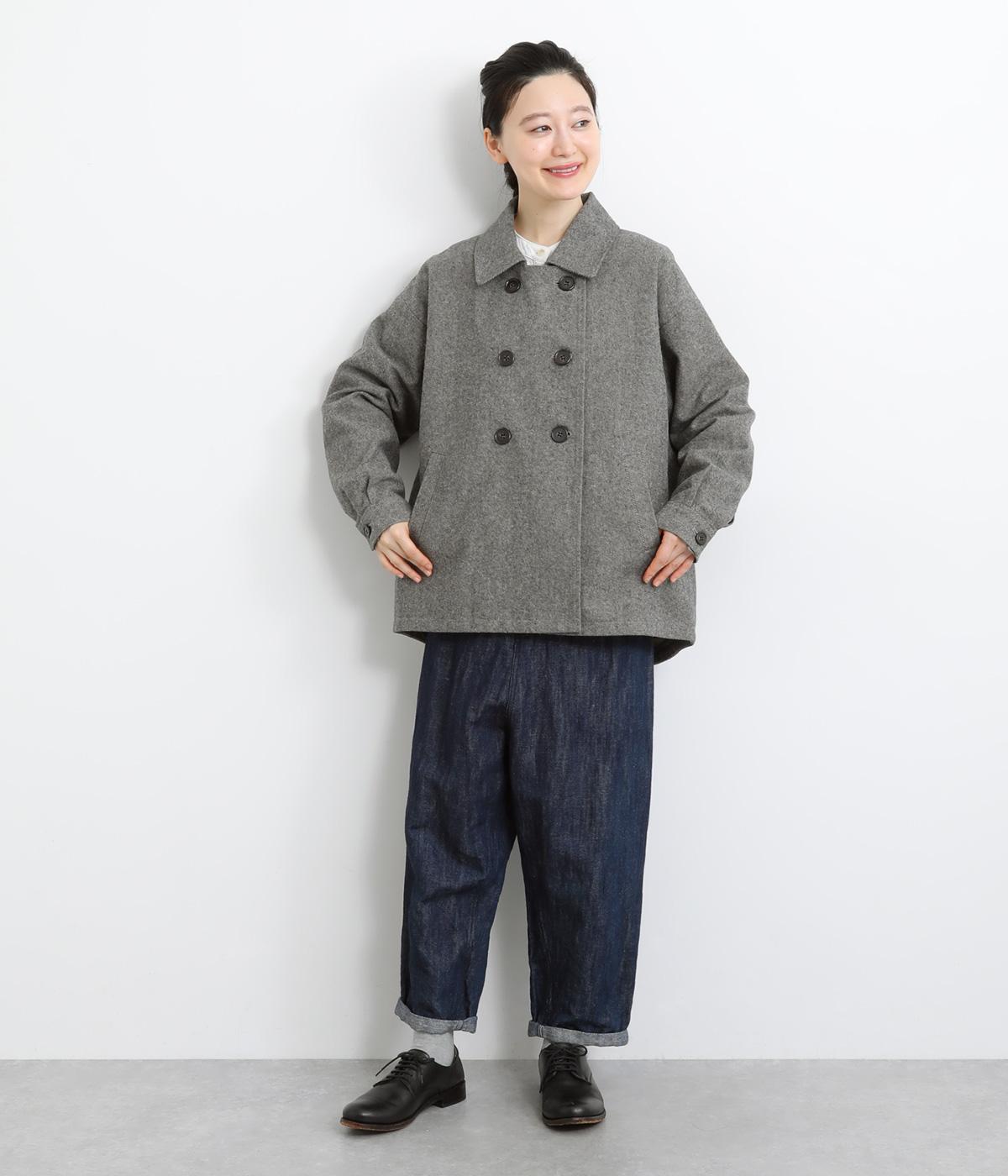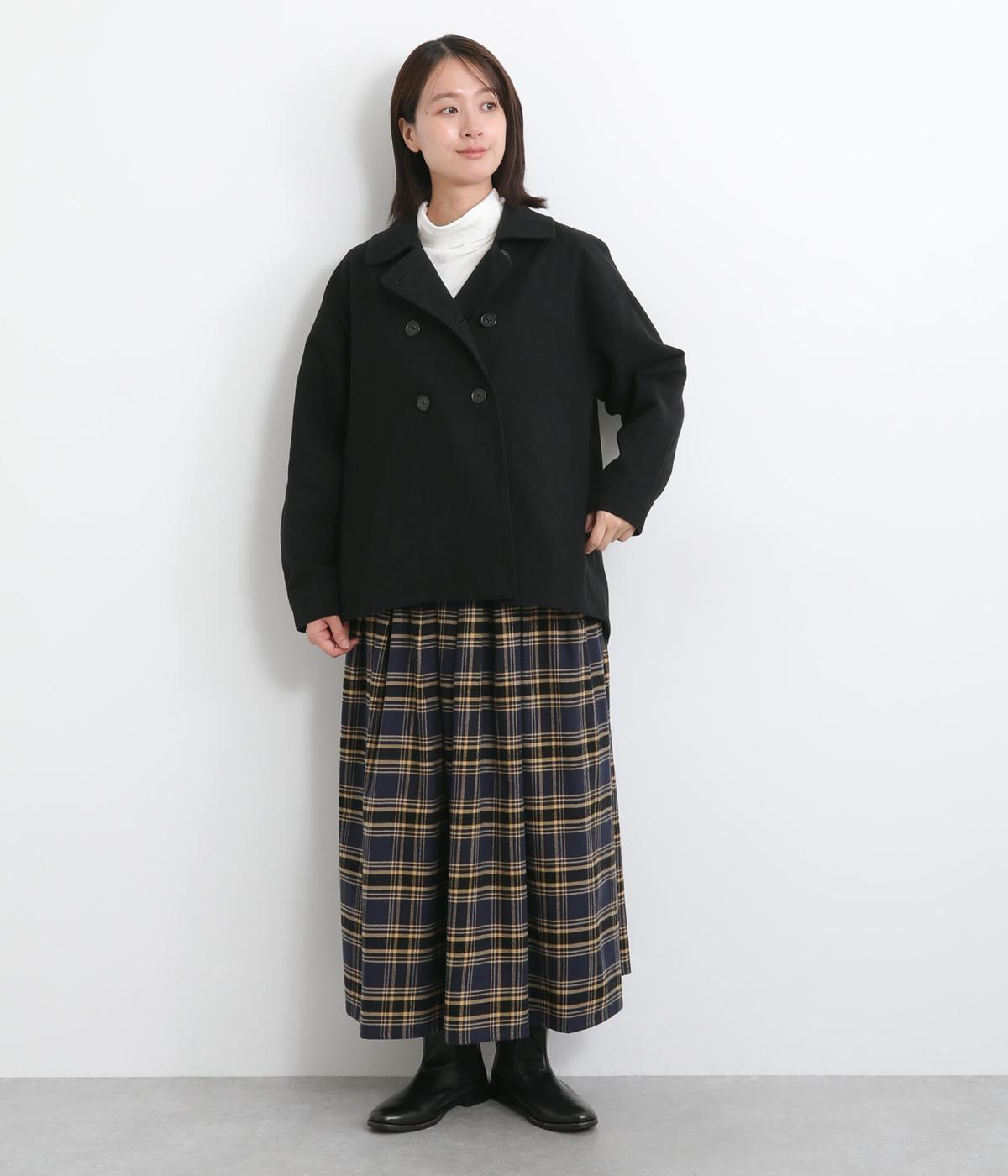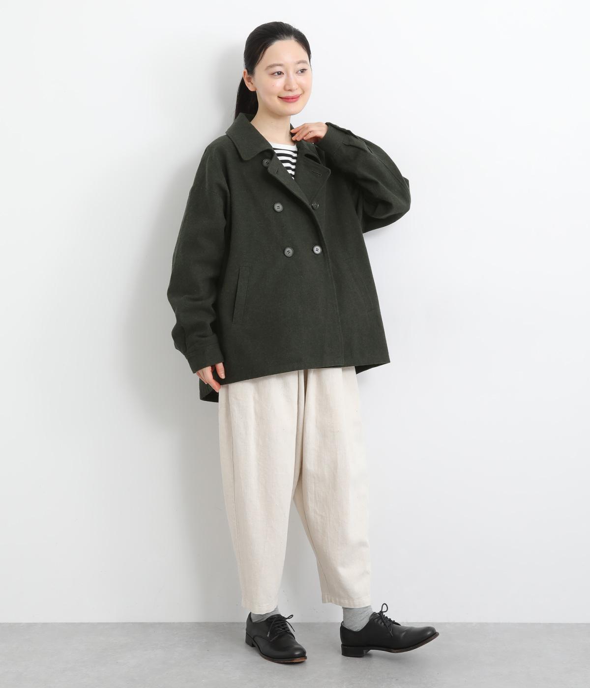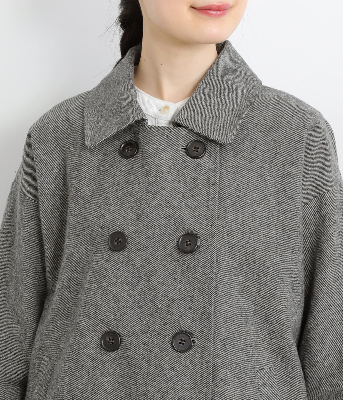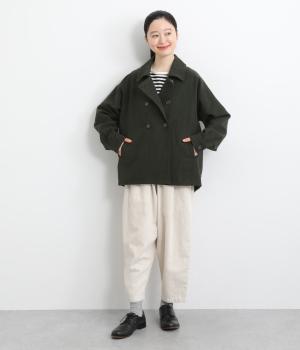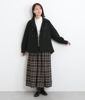 タックを寄せたボリューム袖でトラッドなPジャケットに大人かわいい要素をプラス。上部分にまとめたダブルボタンや、開き具合で印象が変わる襟元もポイント。後ろ裾がやや長くラウンドしているので腰までしっかり防寒してくれます。