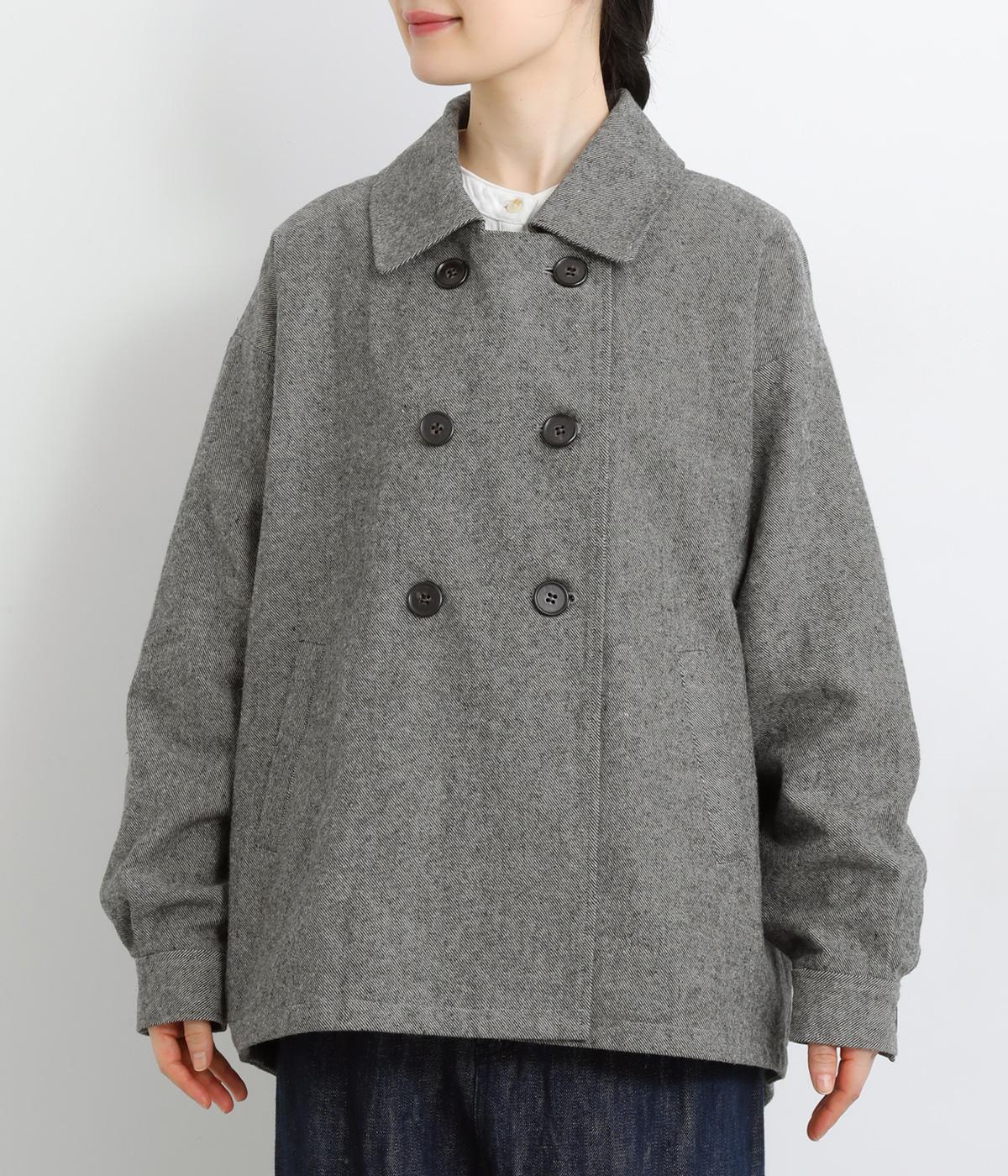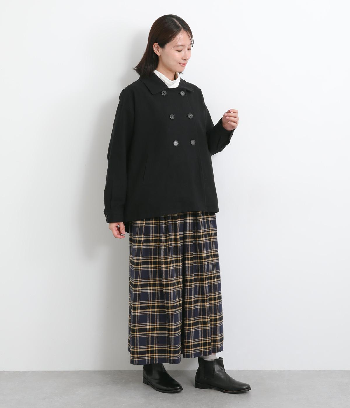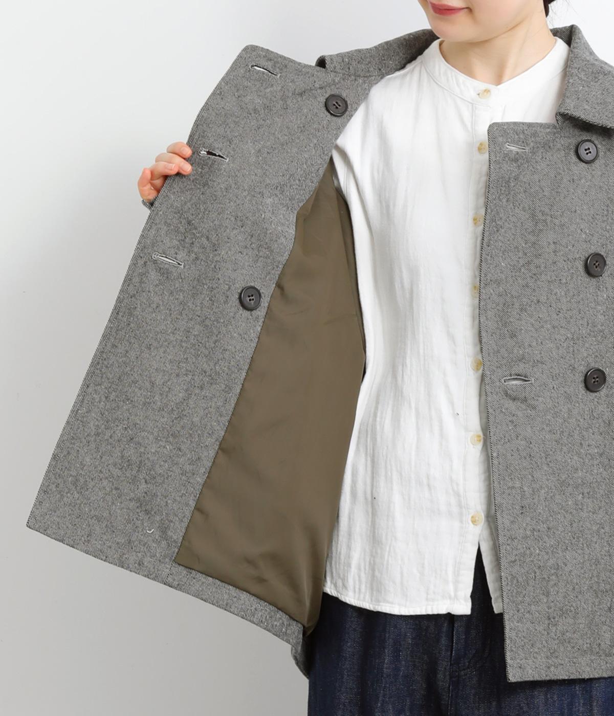 タックを寄せたボリューム袖でトラッドなPジャケットに大人かわいい要素をプラス。上部分にまとめたダブルボタンや、開き具合で印象が変わる襟元もポイント。後ろ裾がやや長くラウンドしているので腰までしっかり防寒してくれます。