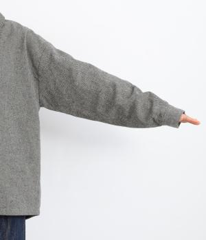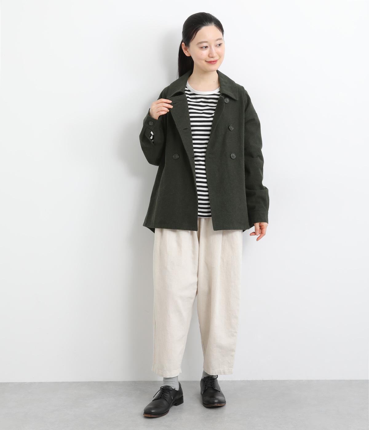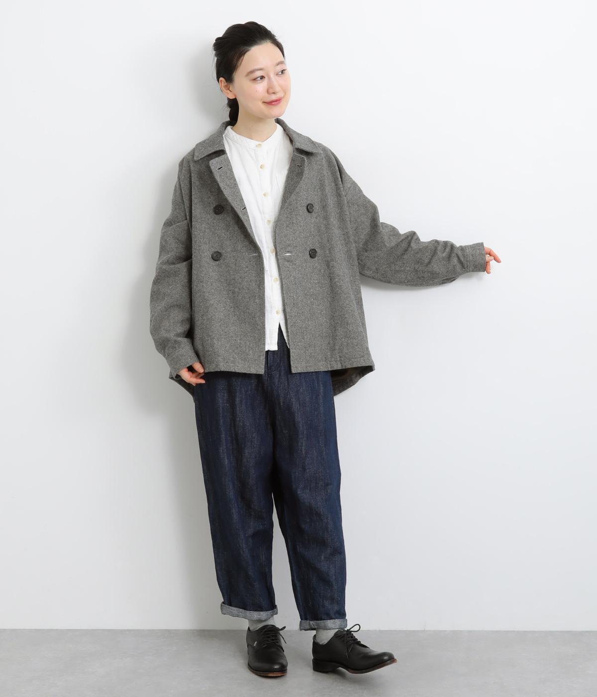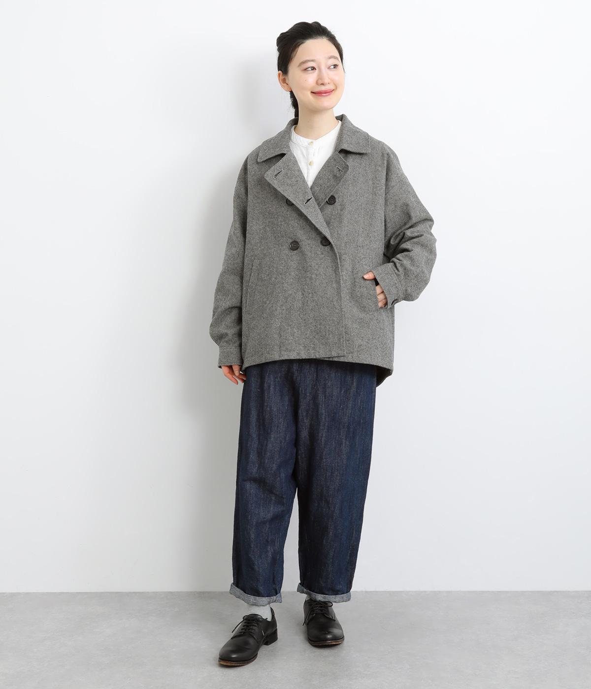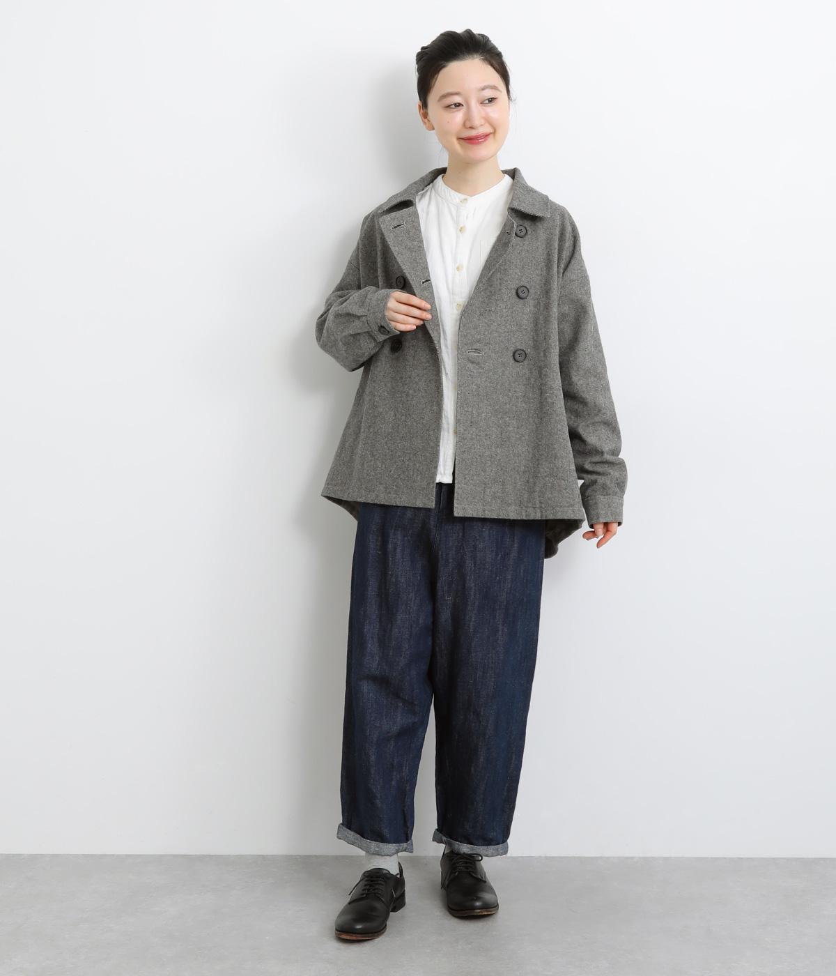 タックを寄せたボリューム袖でトラッドなPジャケットに大人かわいい要素をプラス。上部分にまとめたダブルボタンや、開き具合で印象が変わる襟元もポイント。後ろ裾がやや長くラウンドしているので腰までしっかり防寒してくれます。