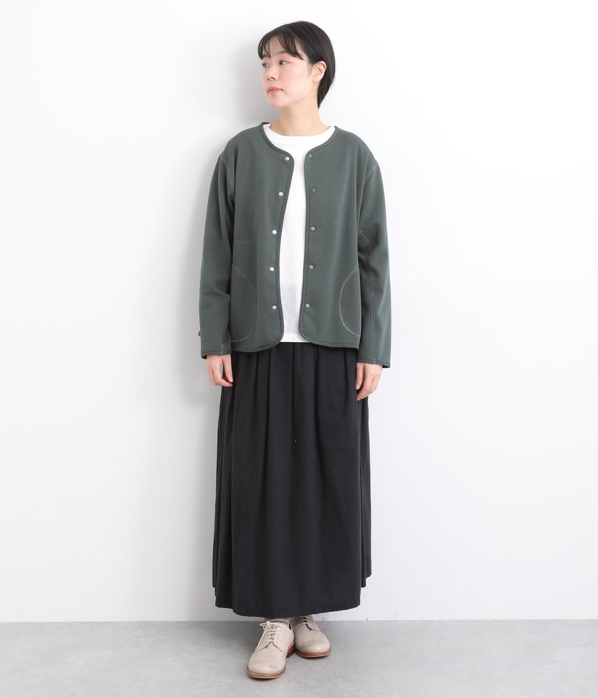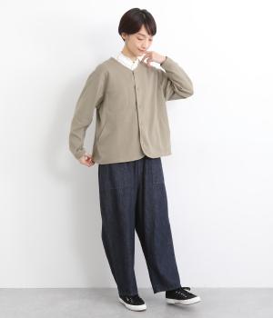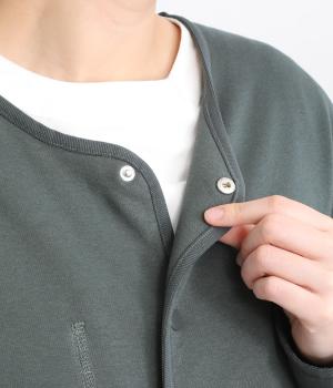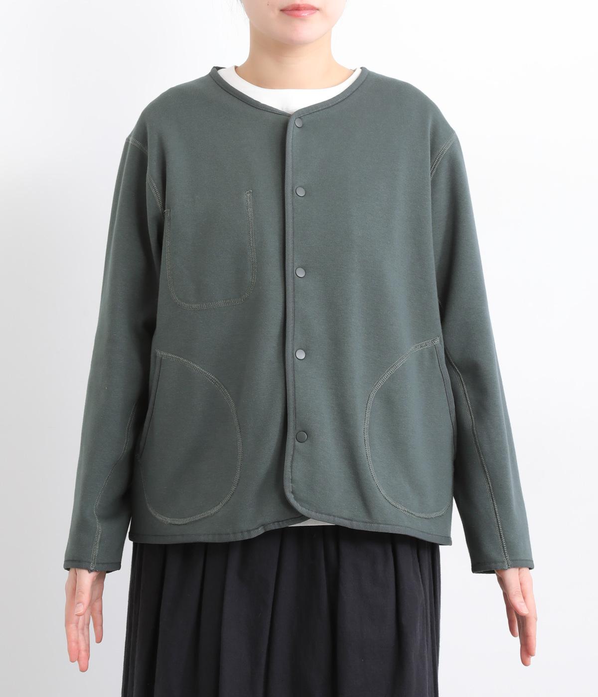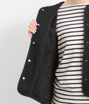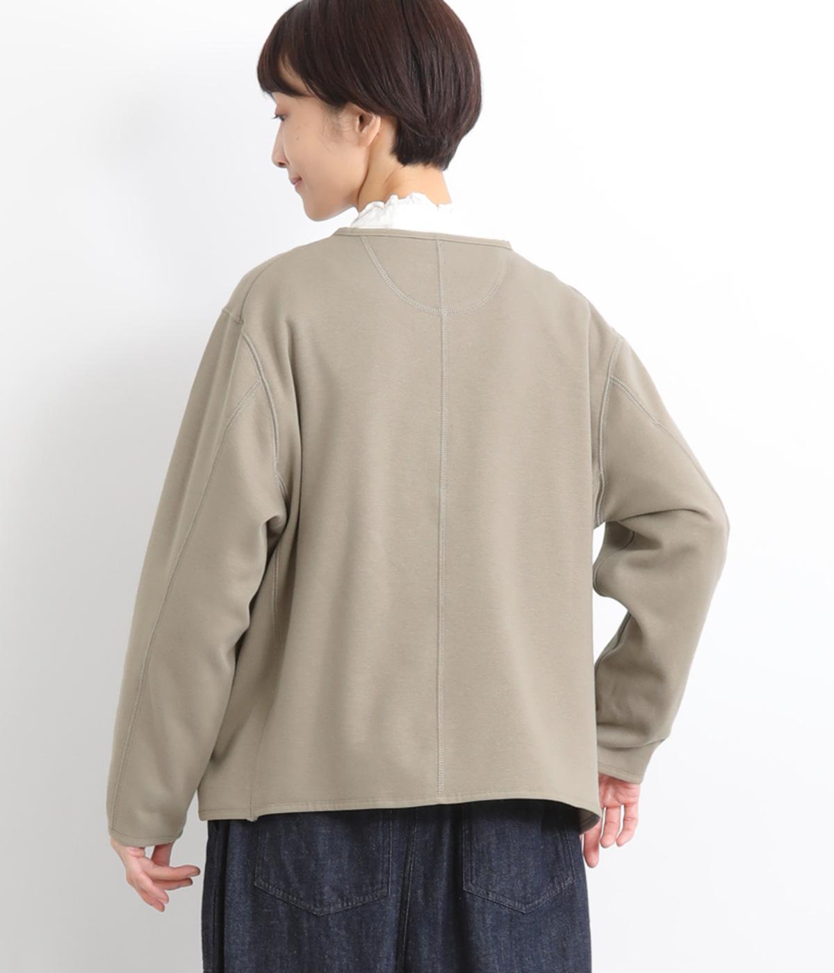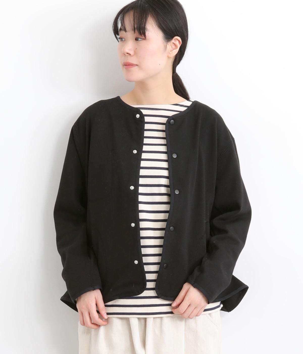 パイピングでさり気なくメリハリをつけながらも、ワントーンですっきりシンプルにまとめたジャケット。カーディガン感覚で羽織りやすく、アウターのインに着込んでも◎。内側に胸ポケットをほどこしたり、ディテールにもこだわりを。