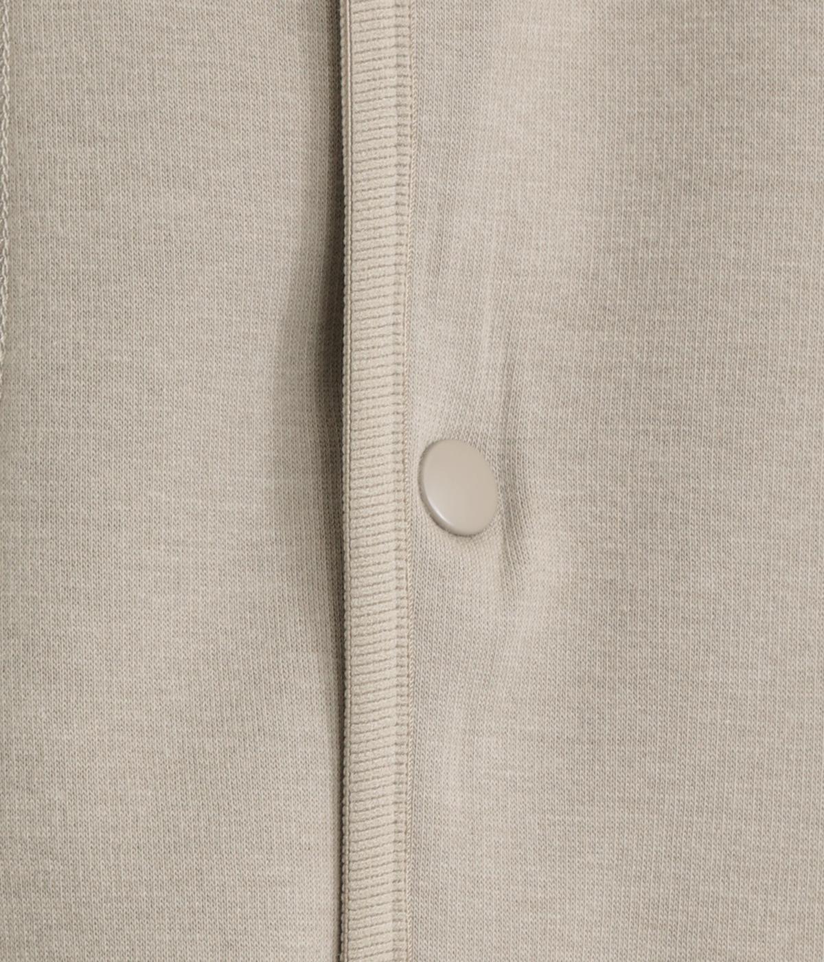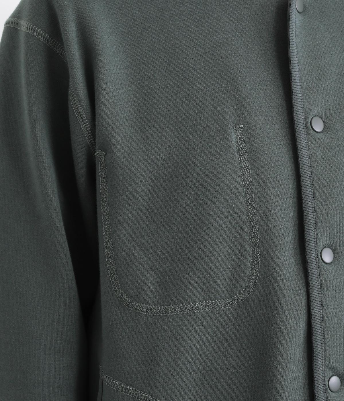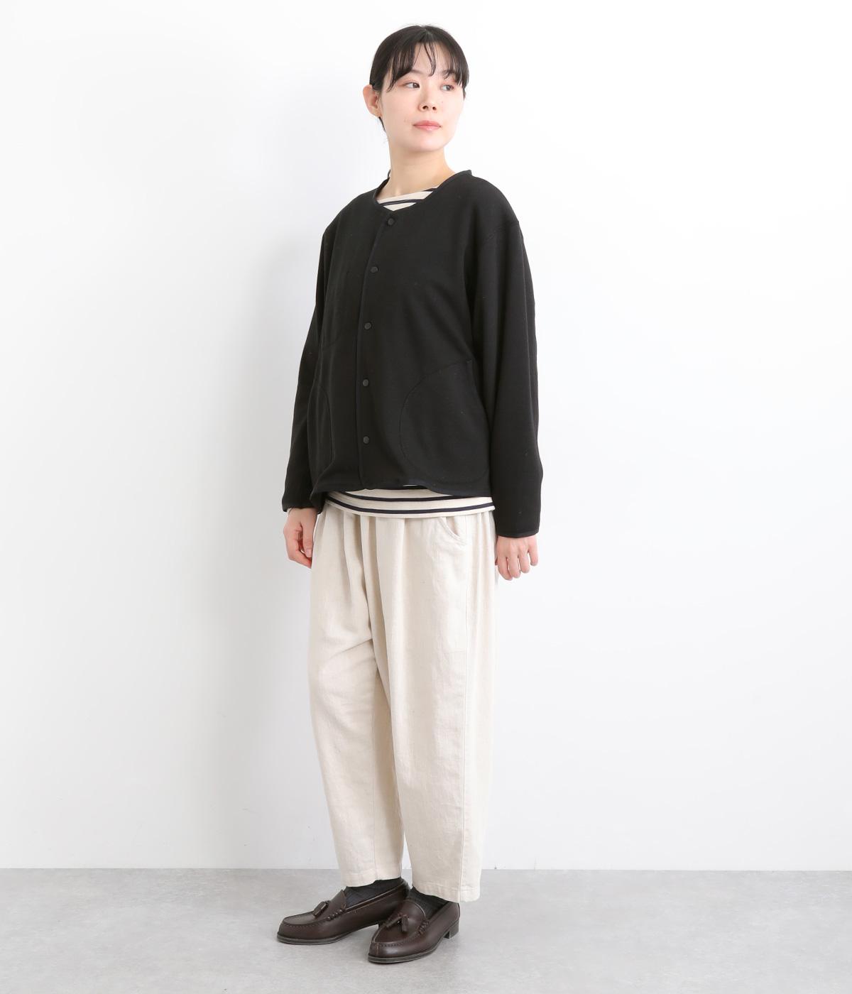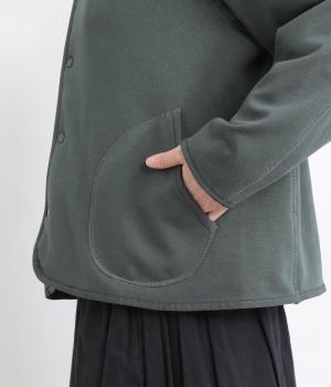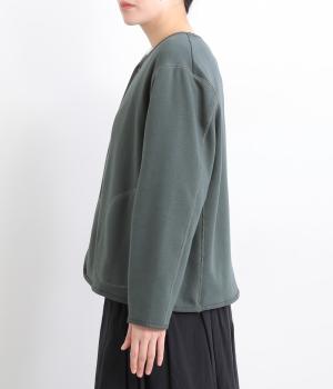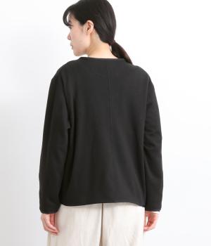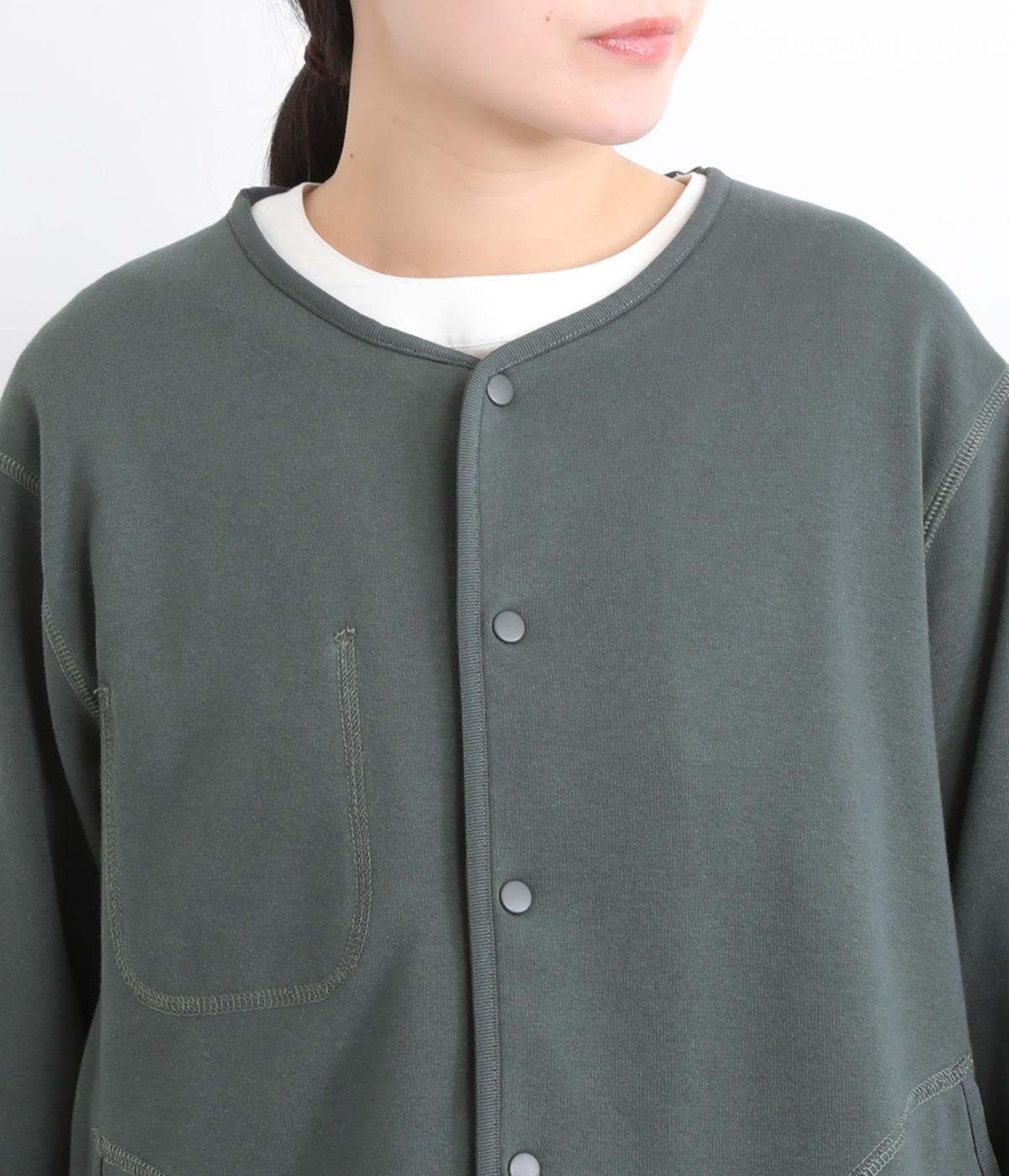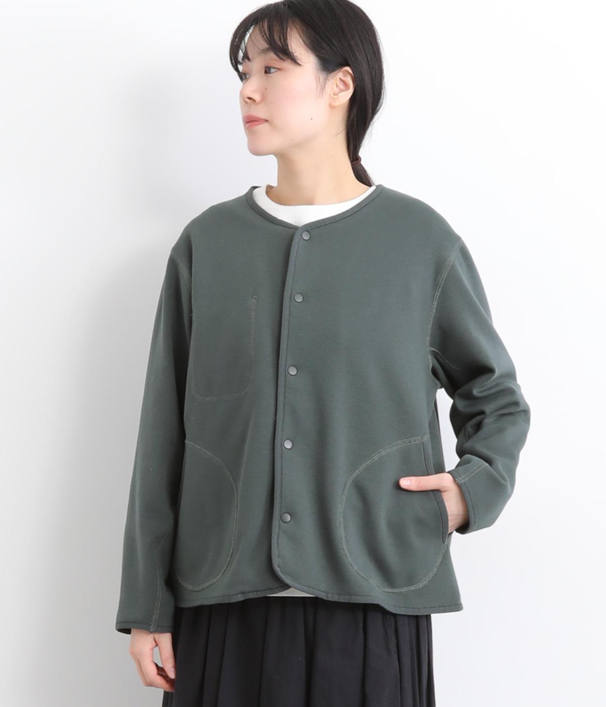 パイピングでさり気なくメリハリをつけながらも、ワントーンですっきりシンプルにまとめたジャケット。カーディガン感覚で羽織りやすく、アウターのインに着込んでも◎。内側に胸ポケットをほどこしたり、ディテールにもこだわりを。