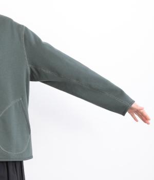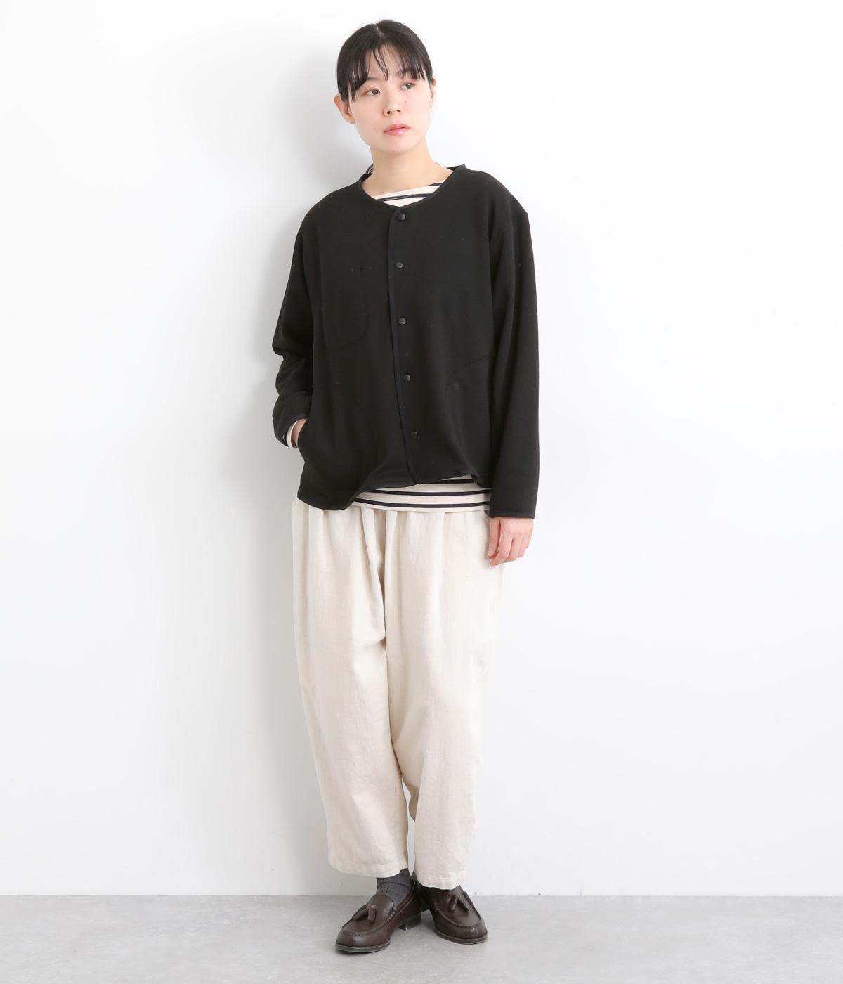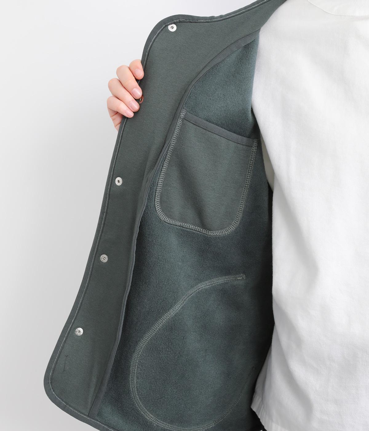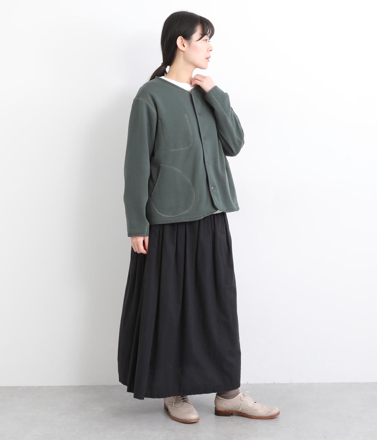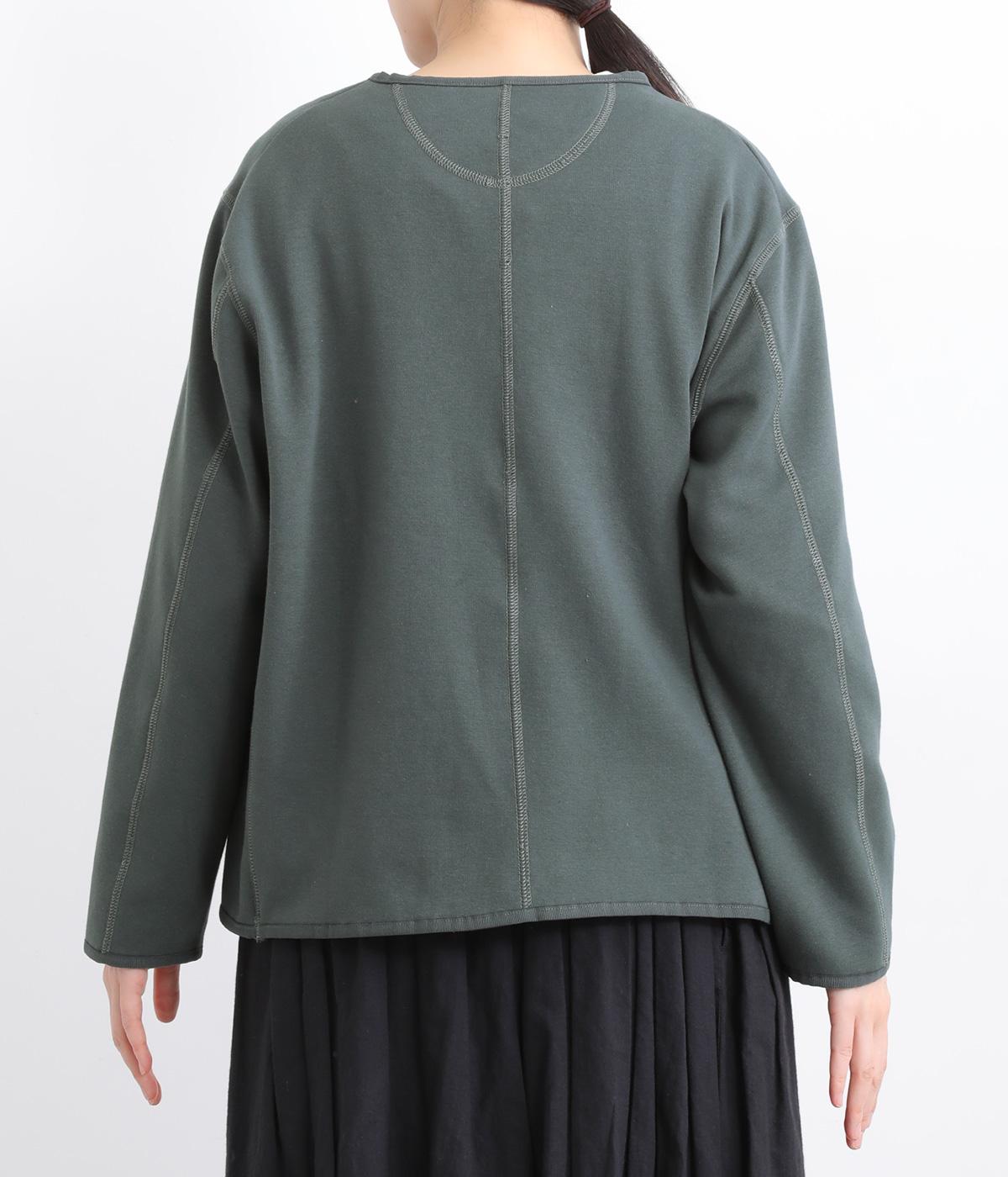 パイピングでさり気なくメリハリをつけながらも、ワントーンですっきりシンプルにまとめたジャケット。カーディガン感覚で羽織りやすく、アウターのインに着込んでも◎。内側に胸ポケットをほどこしたり、ディテールにもこだわりを。