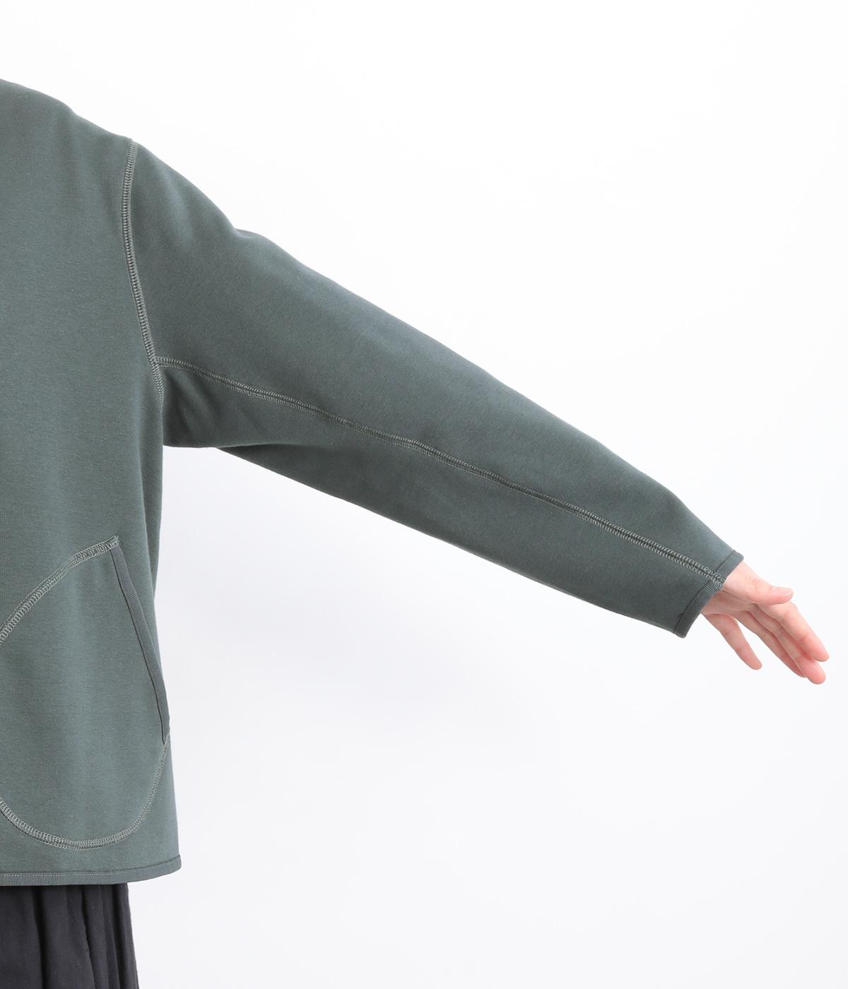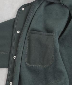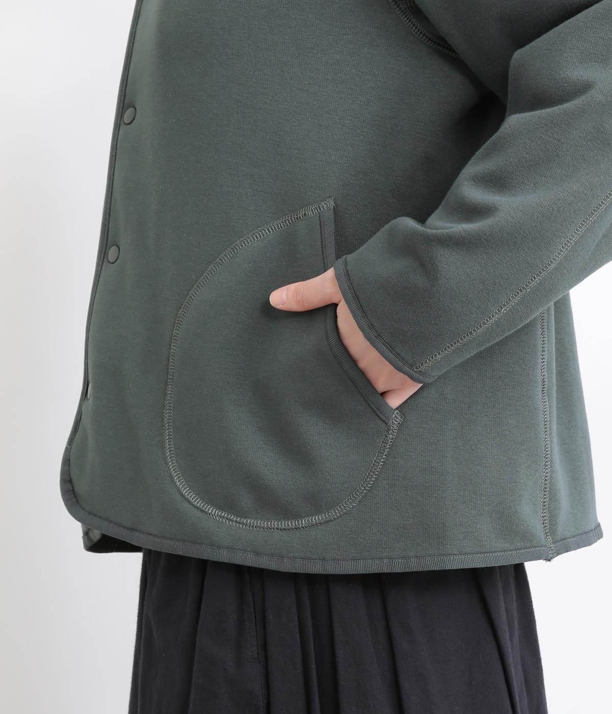 ふわっふわのベロア裏毛が防寒力を高めてくれる、コットン生地を使用しています。やわらかで伸びもよく、着心地抜群な中厚手生地です。