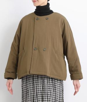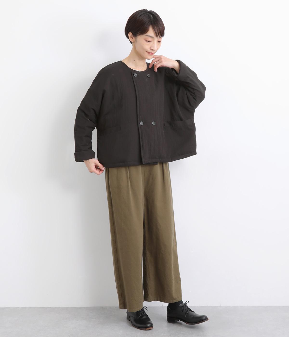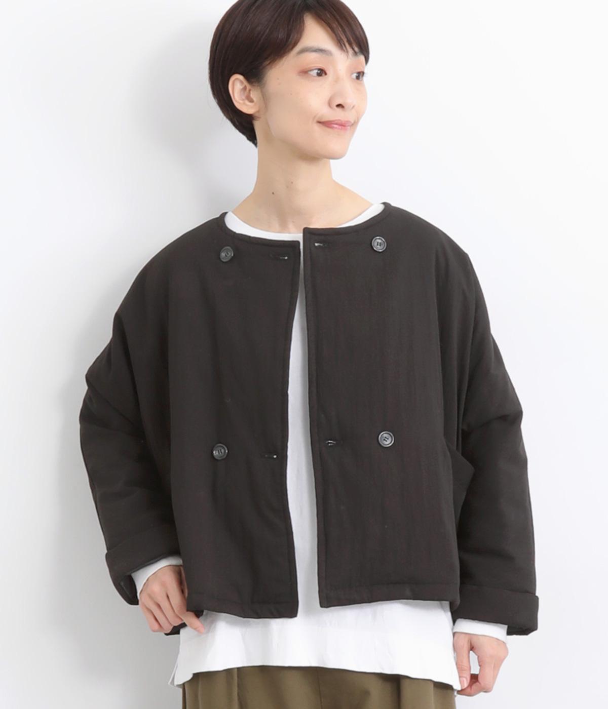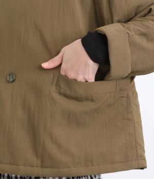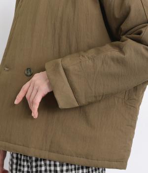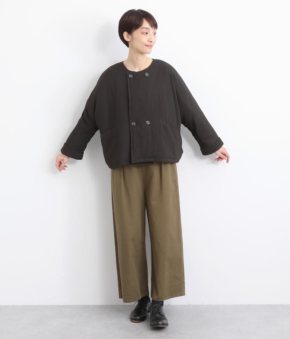 ゆとりのあるドルマンスリーブにコンパクトなボックスシルエットが好バランスなショートジャケット。すっきりとした丸首で、ボタンを留めればミニマムな印象に。ダブルボタンでしっかりと防寒でき、袖口は折り返すのがおすすめです。