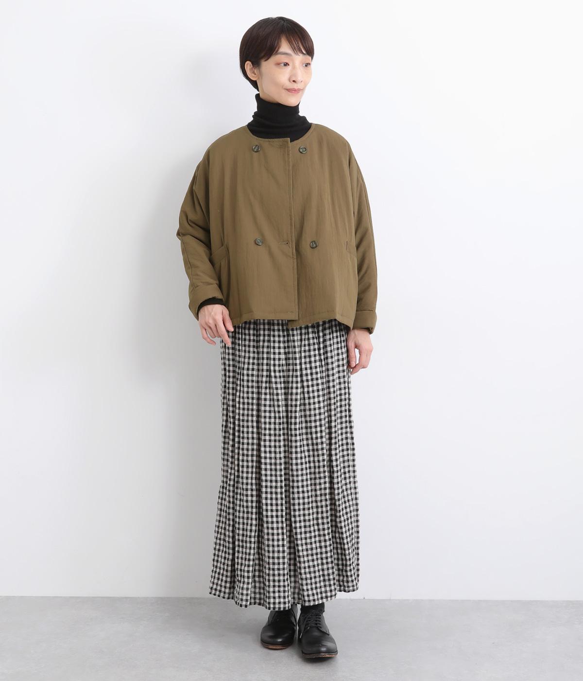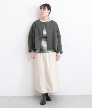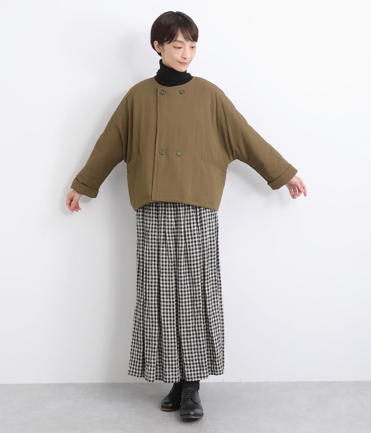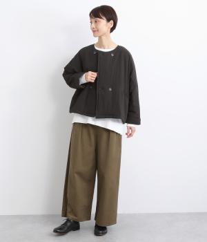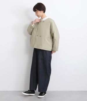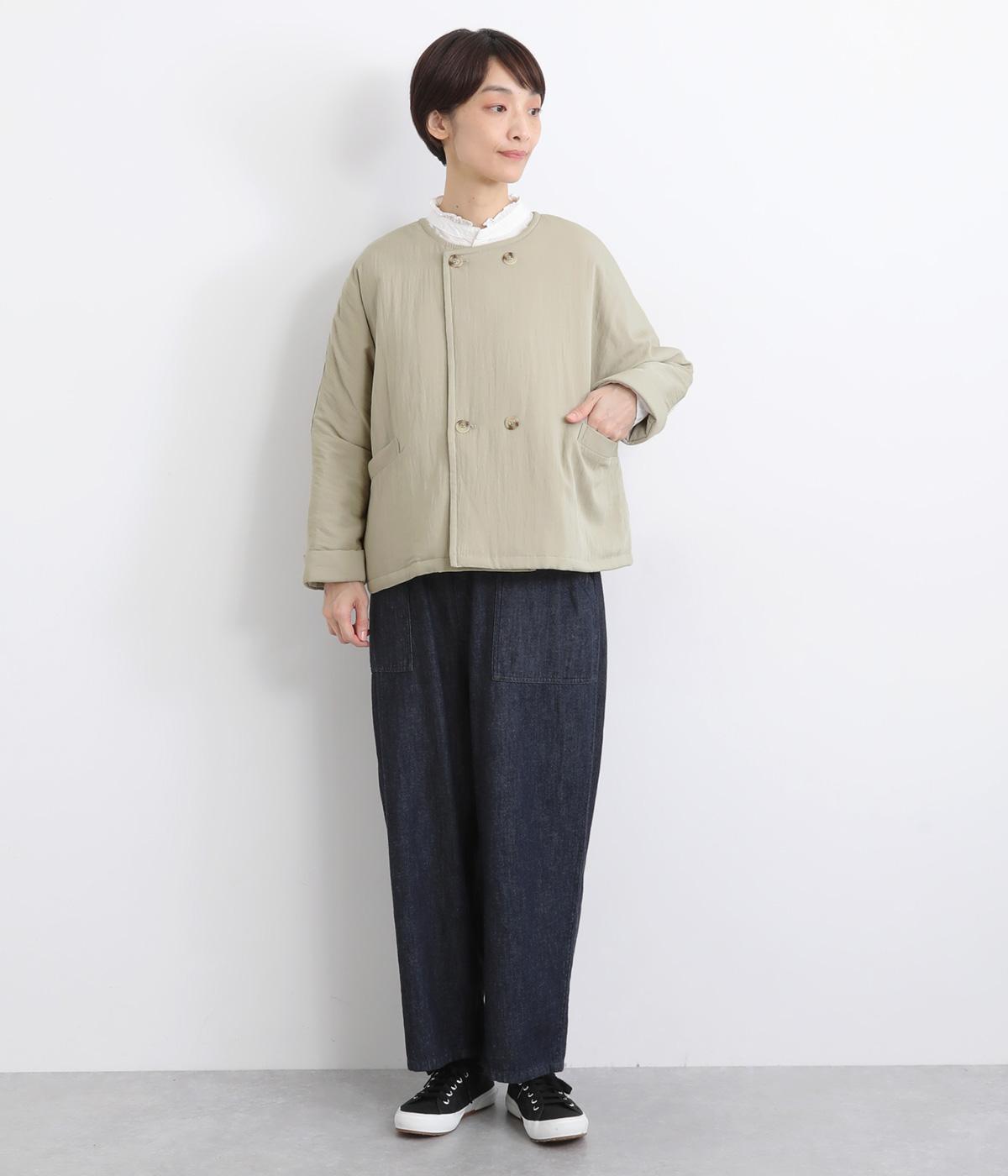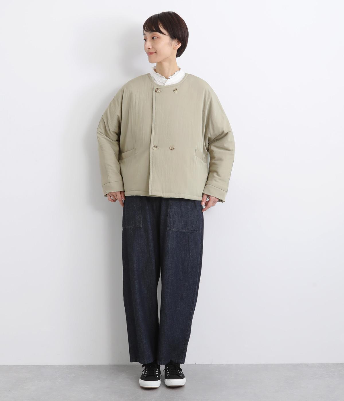 ゆとりのあるドルマンスリーブにコンパクトなボックスシルエットが好バランスなショートジャケット。すっきりとした丸首で、ボタンを留めればミニマムな印象に。ダブルボタンでしっかりと防寒でき、袖口は折り返すのがおすすめです。