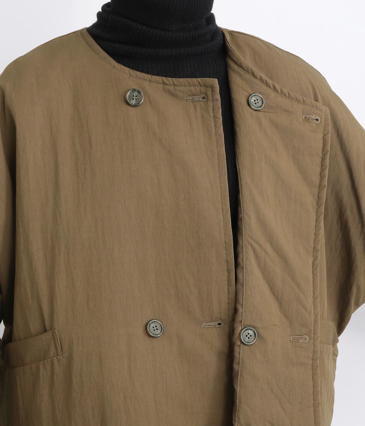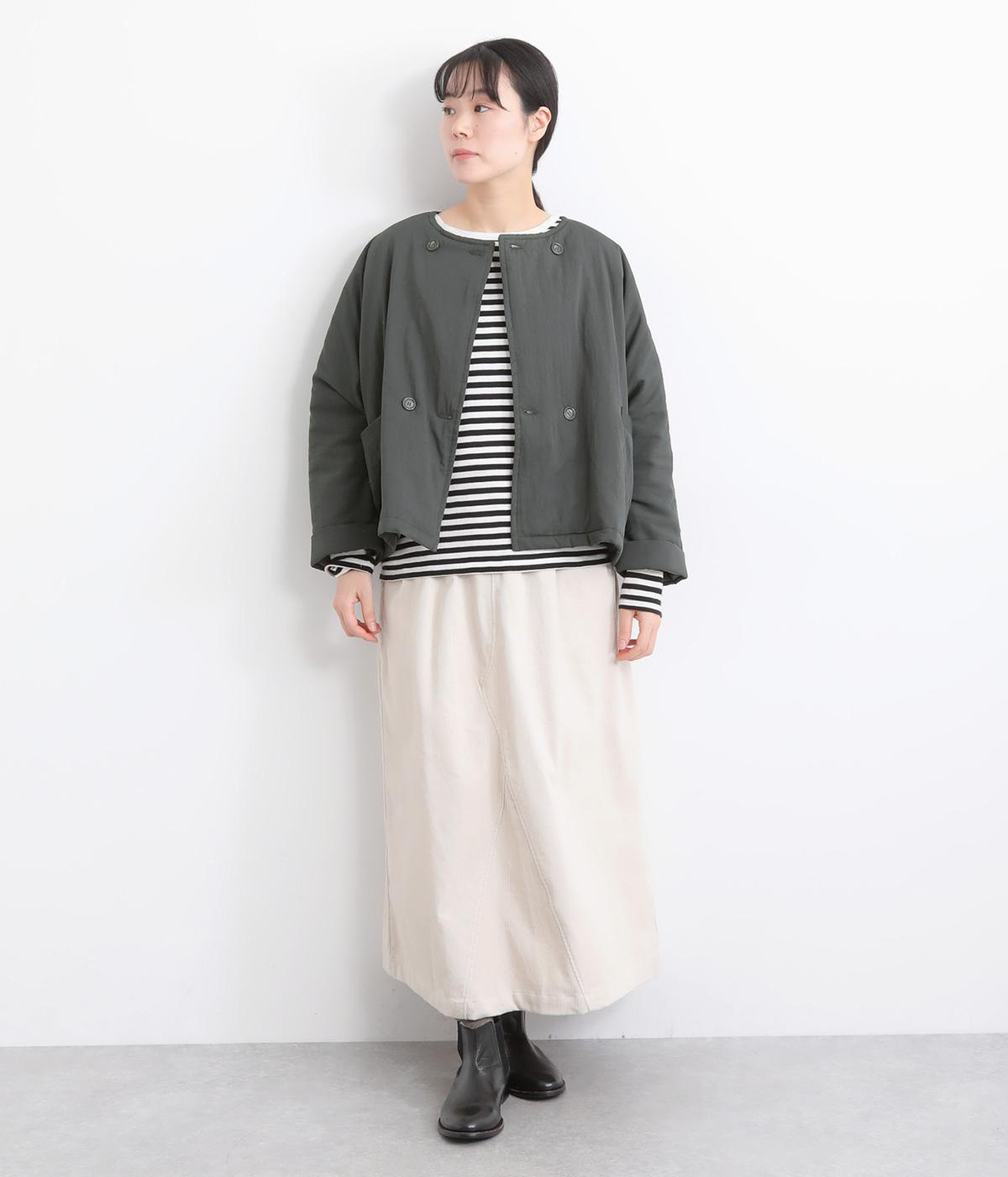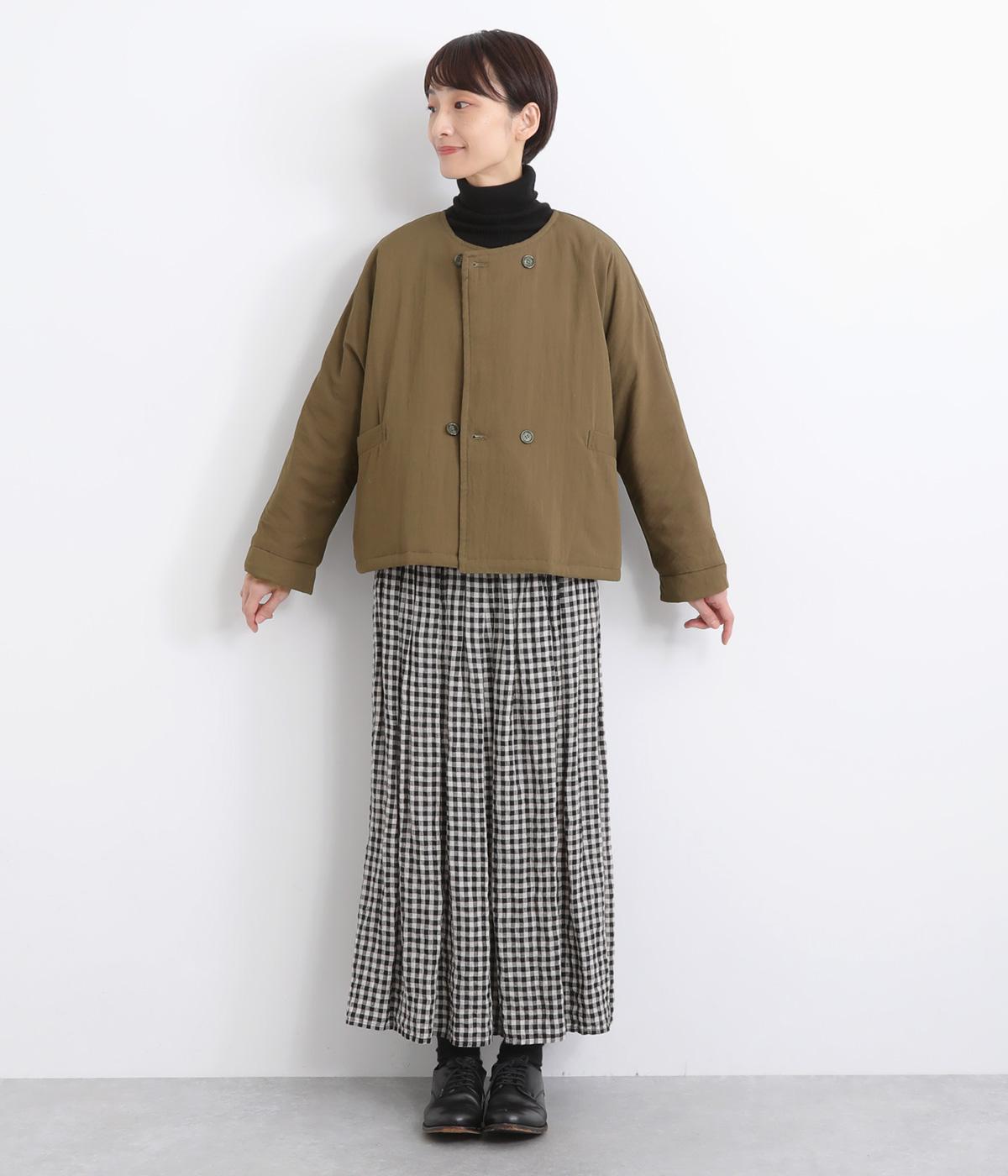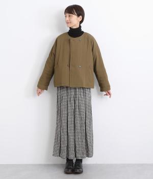 ゆとりのあるドルマンスリーブにコンパクトなボックスシルエットが好バランスなショートジャケット。すっきりとした丸首で、ボタンを留めればミニマムな印象に。ダブルボタンでしっかりと防寒でき、袖口は折り返すのがおすすめです。