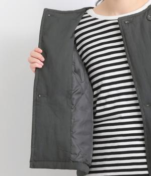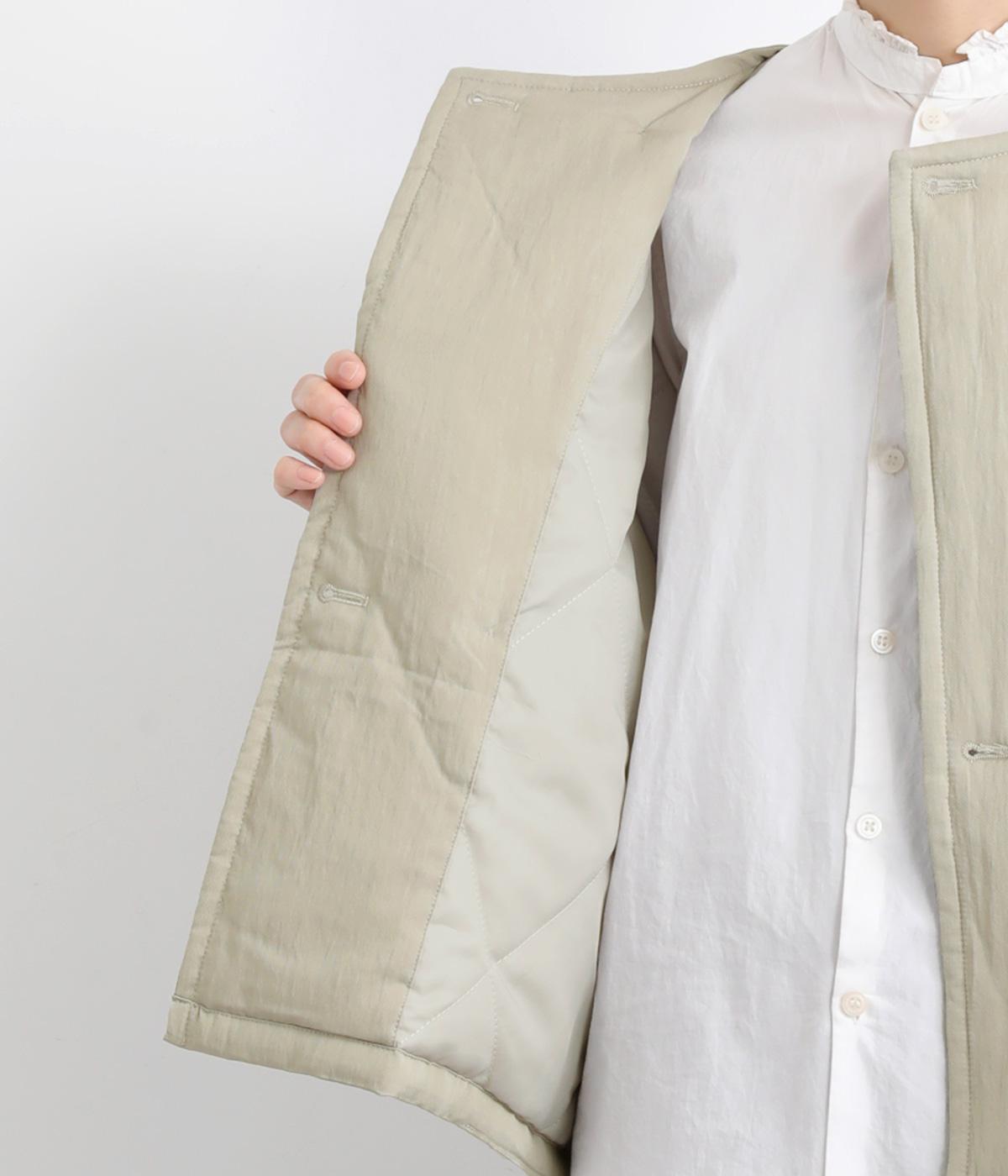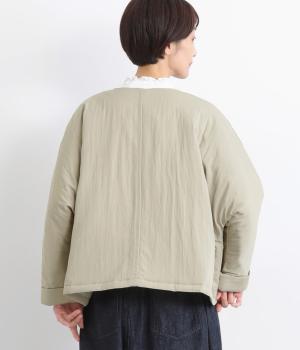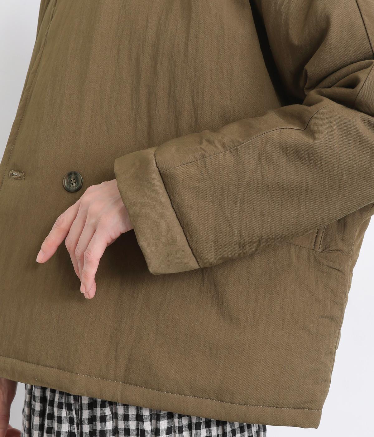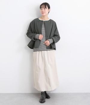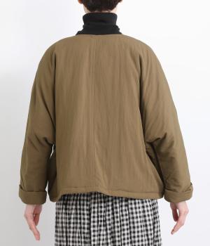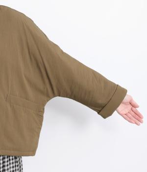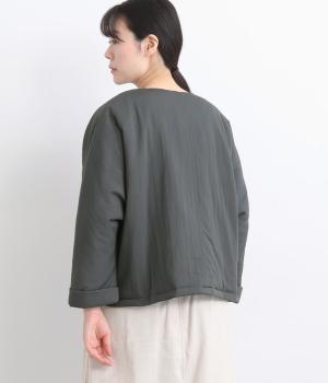 レーヨンのなめらかな光沢感とナイロンのタフさを併せ持った、混紡ツイルを使用しています。ポリエステルの中綿入りで軽さをキープしつつも防寒力を高めました。