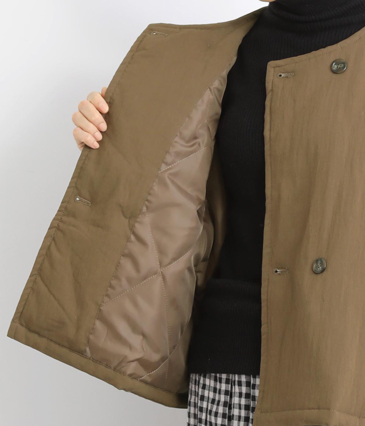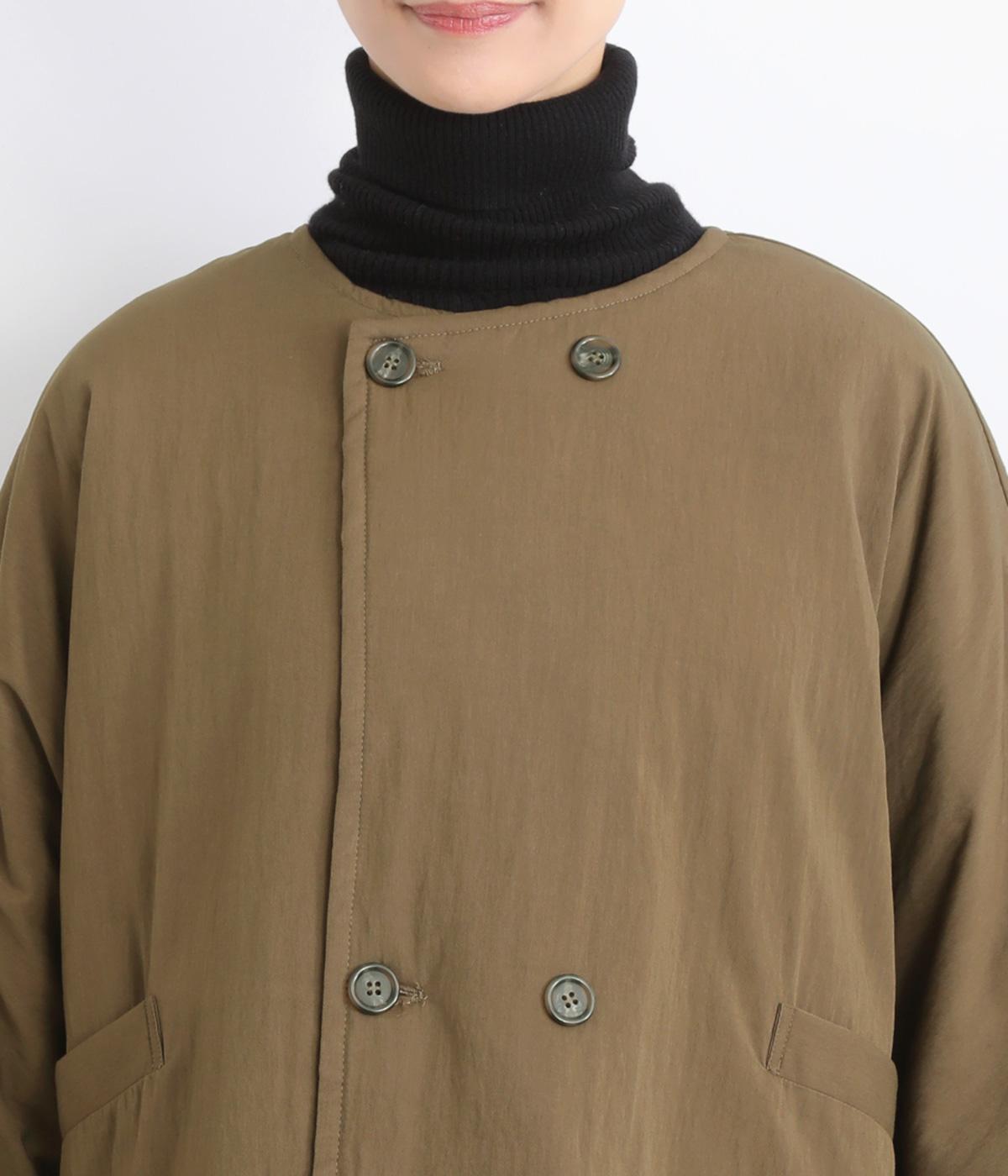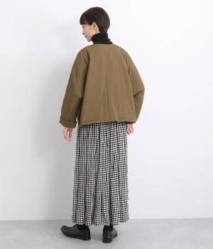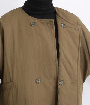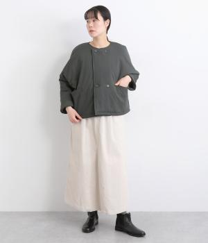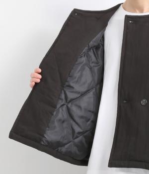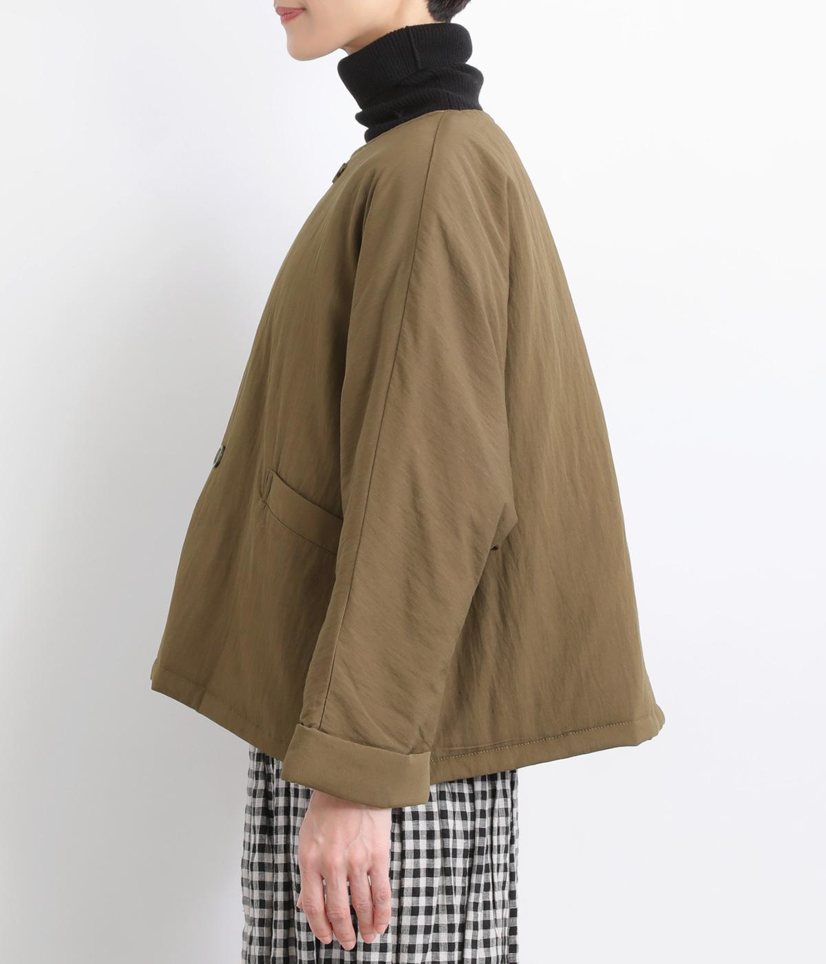 レーヨンのなめらかな光沢感とナイロンのタフさを併せ持った、混紡ツイルを使用しています。ポリエステルの中綿入りで軽さをキープしつつも防寒力を高めました。