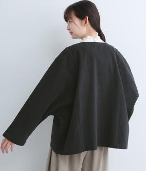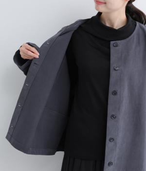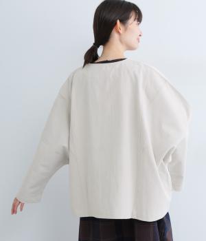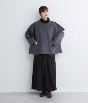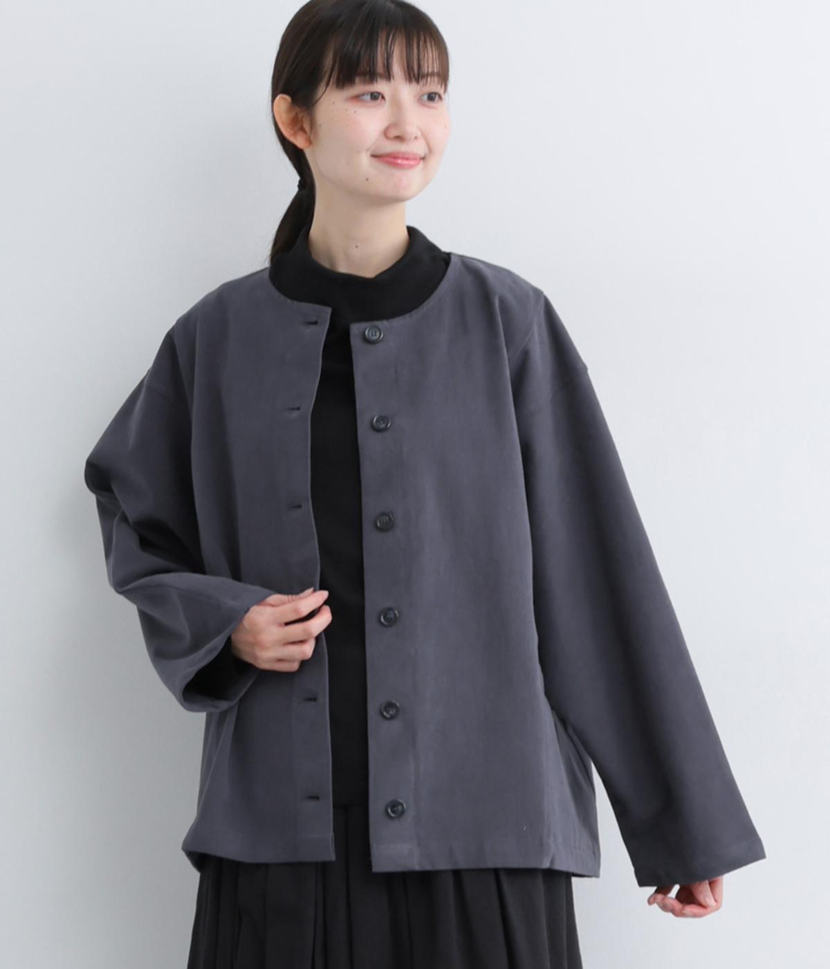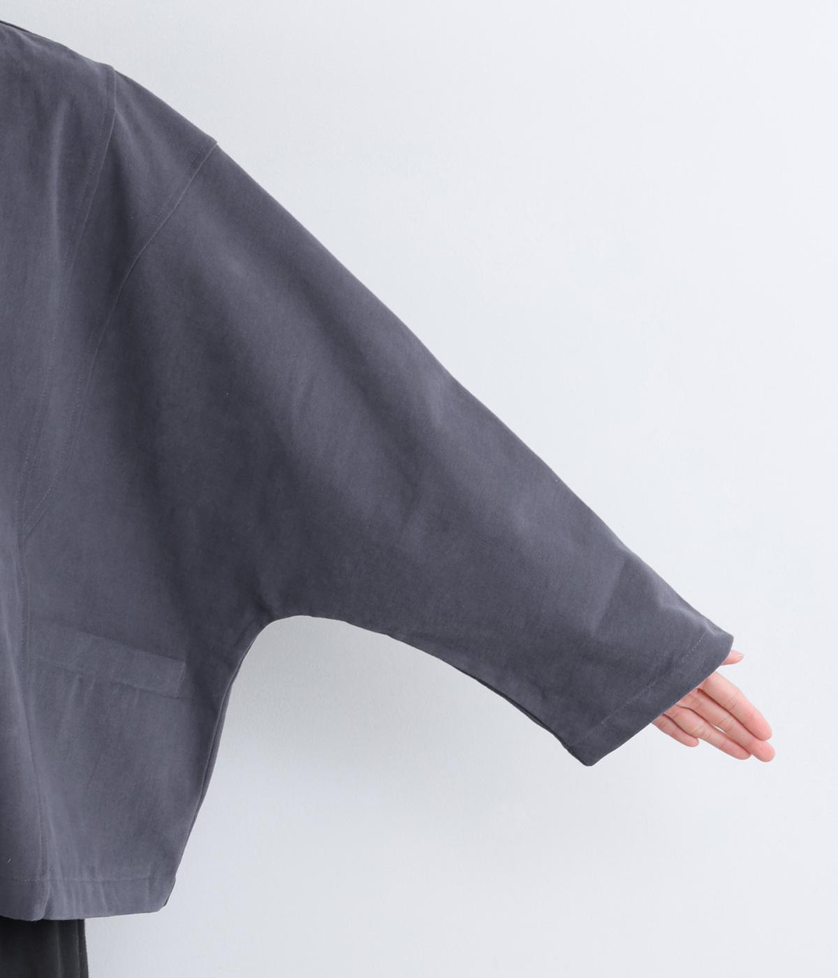 ドルマンスリーブのゆったりシルエットを切り替えラインがすっきりと見せてくれます。ノーカラーに仕立てた首元やほどよい丈感もスタイリングをバランスよくまとめるポイントに。カジュアルにもキレイめにも着まわしできる万能アイテムです。