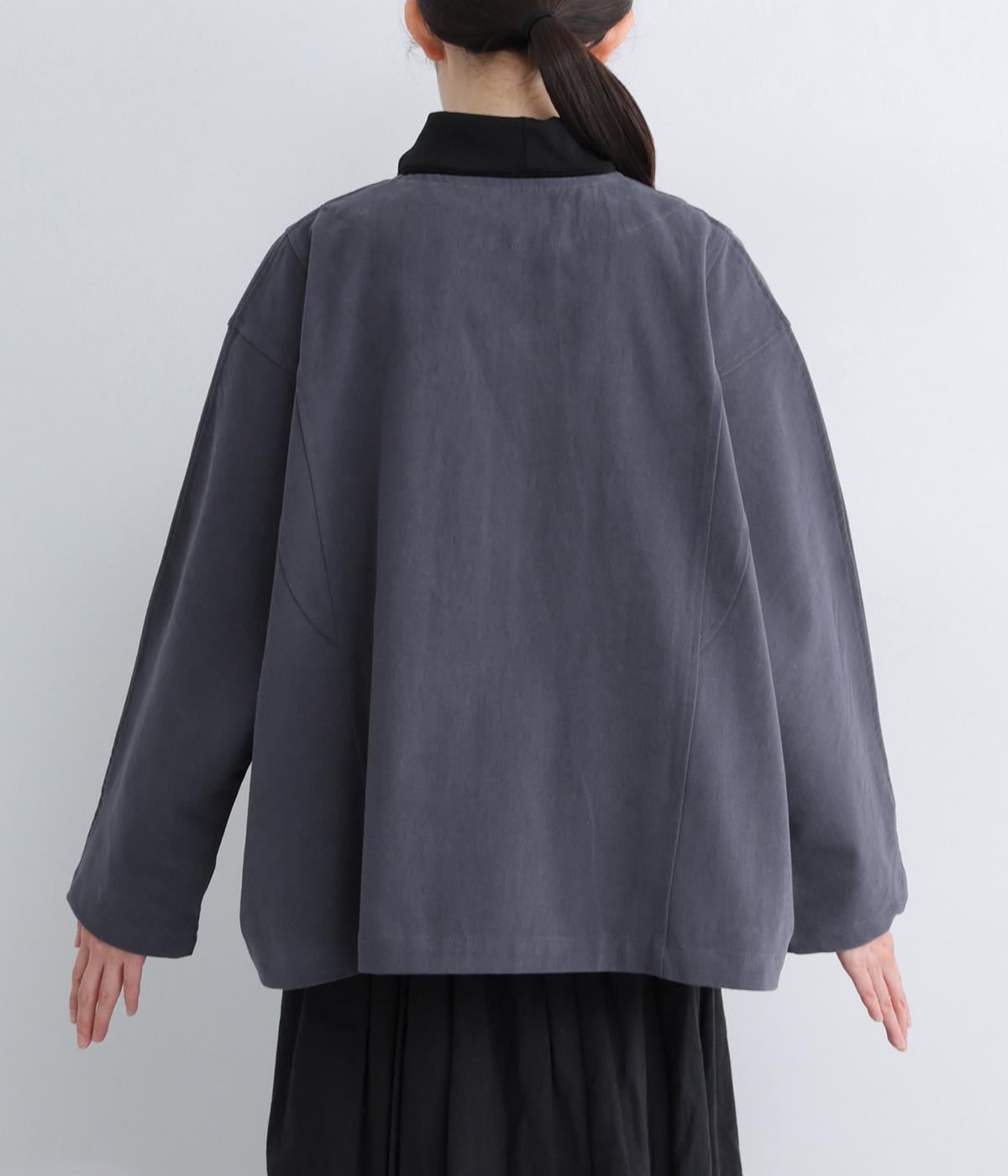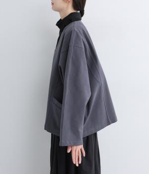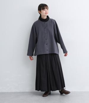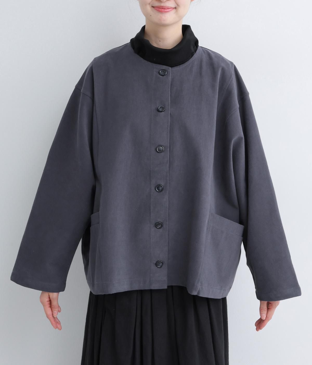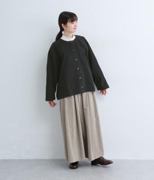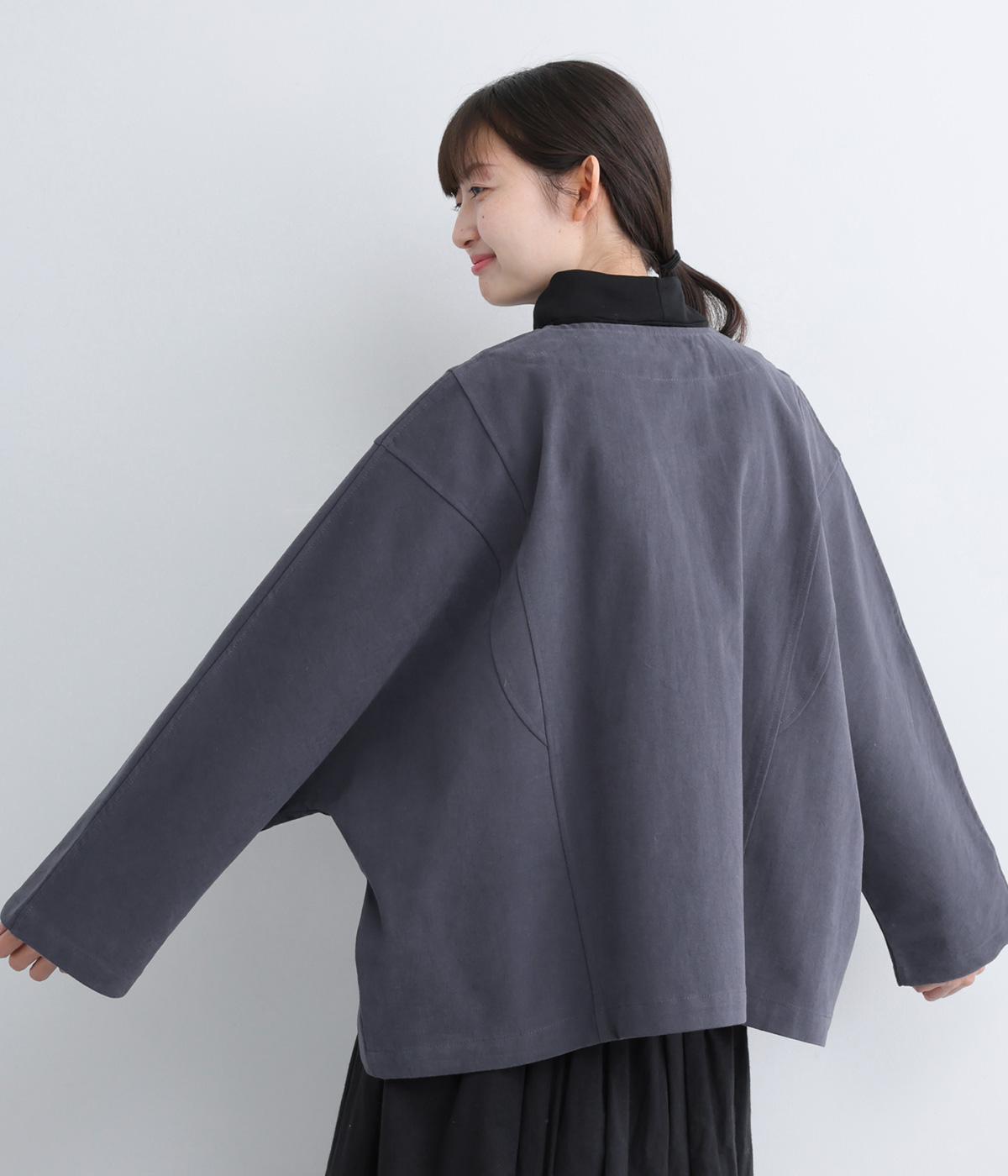 ドルマンスリーブのゆったりシルエットを切り替えラインがすっきりと見せてくれます。ノーカラーに仕立てた首元やほどよい丈感もスタイリングをバランスよくまとめるポイントに。カジュアルにもキレイめにも着まわしできる万能アイテムです。