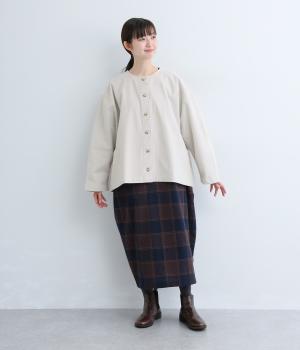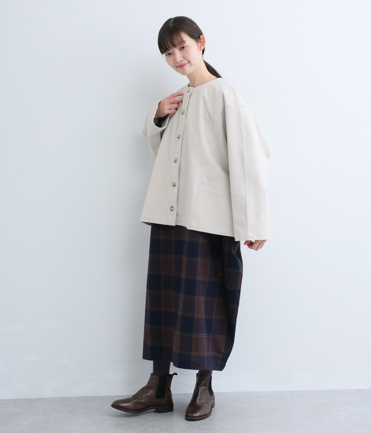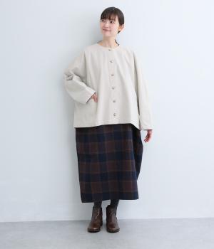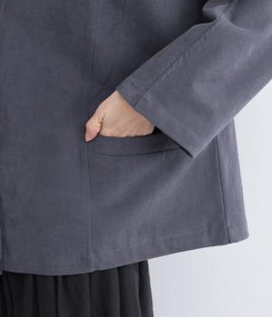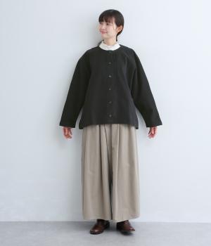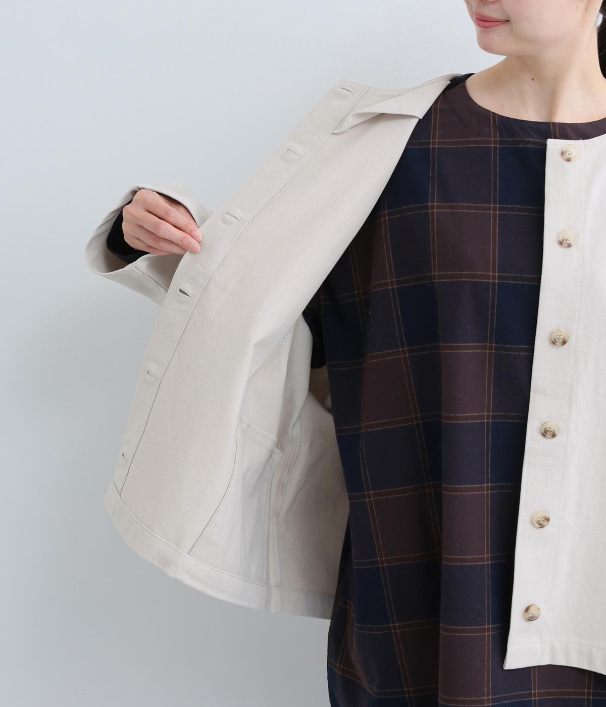 ほどよい厚みできちんと見えするハリ感が魅力のコットン生地です。ほのかに起毛した優しい雰囲気で、着るほどに深みを増していく味わいのある素材感です。