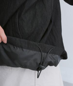 ナチュラルなシワ感が優しい雰囲気のレーヨンとナイロンのミックス生地です。中綿入りでふっくらとしながら810gと軽量に仕上げました。さらりとした質感になめらかな裏地つきです。