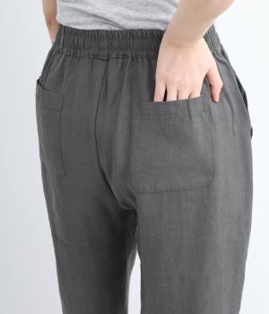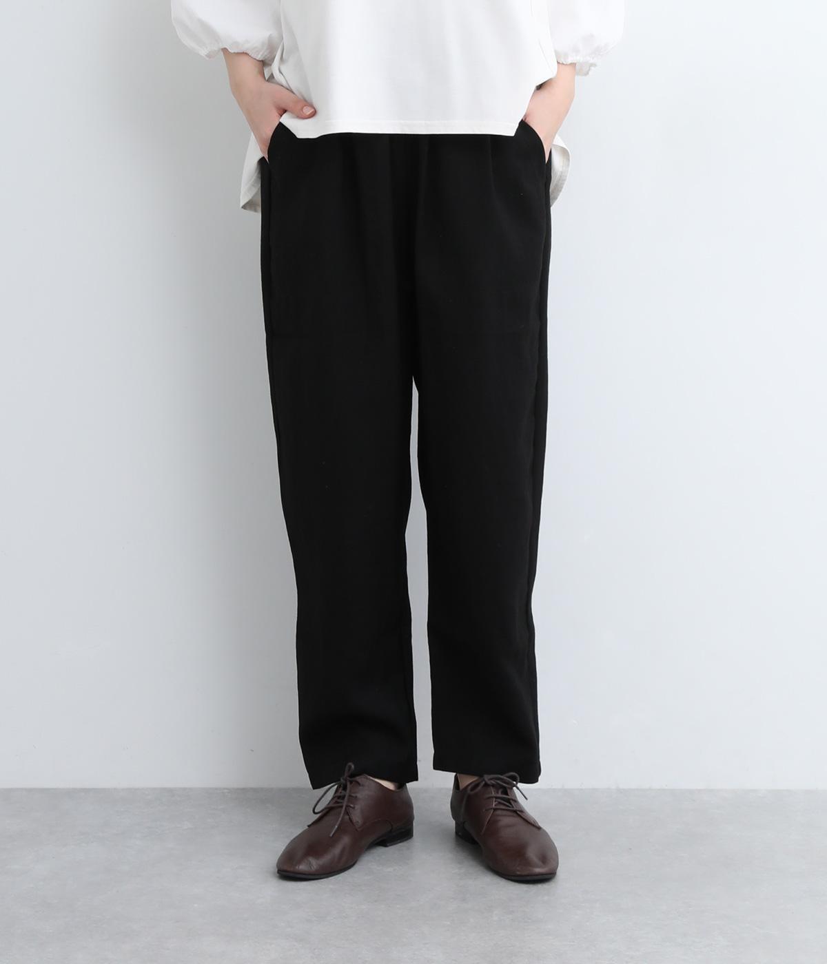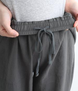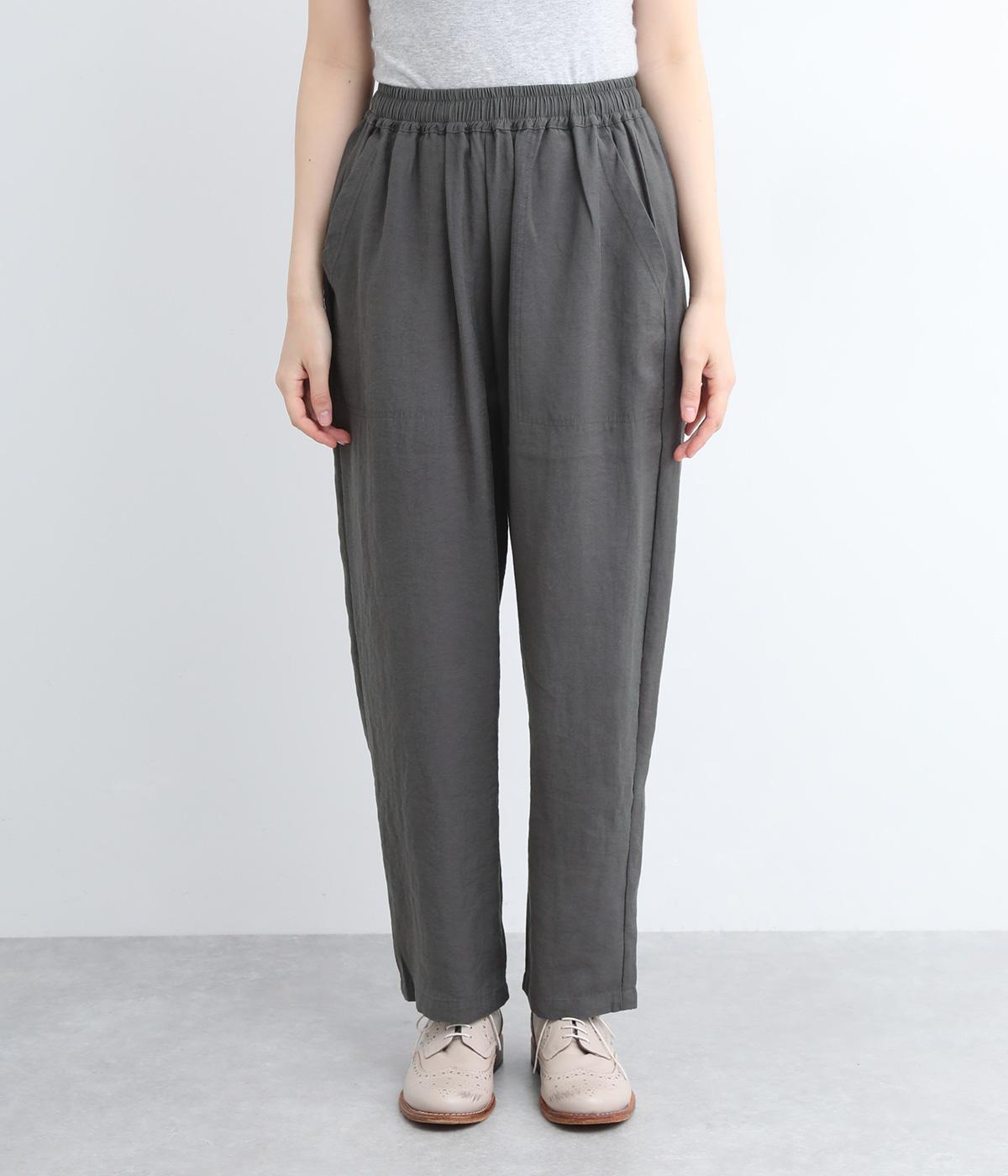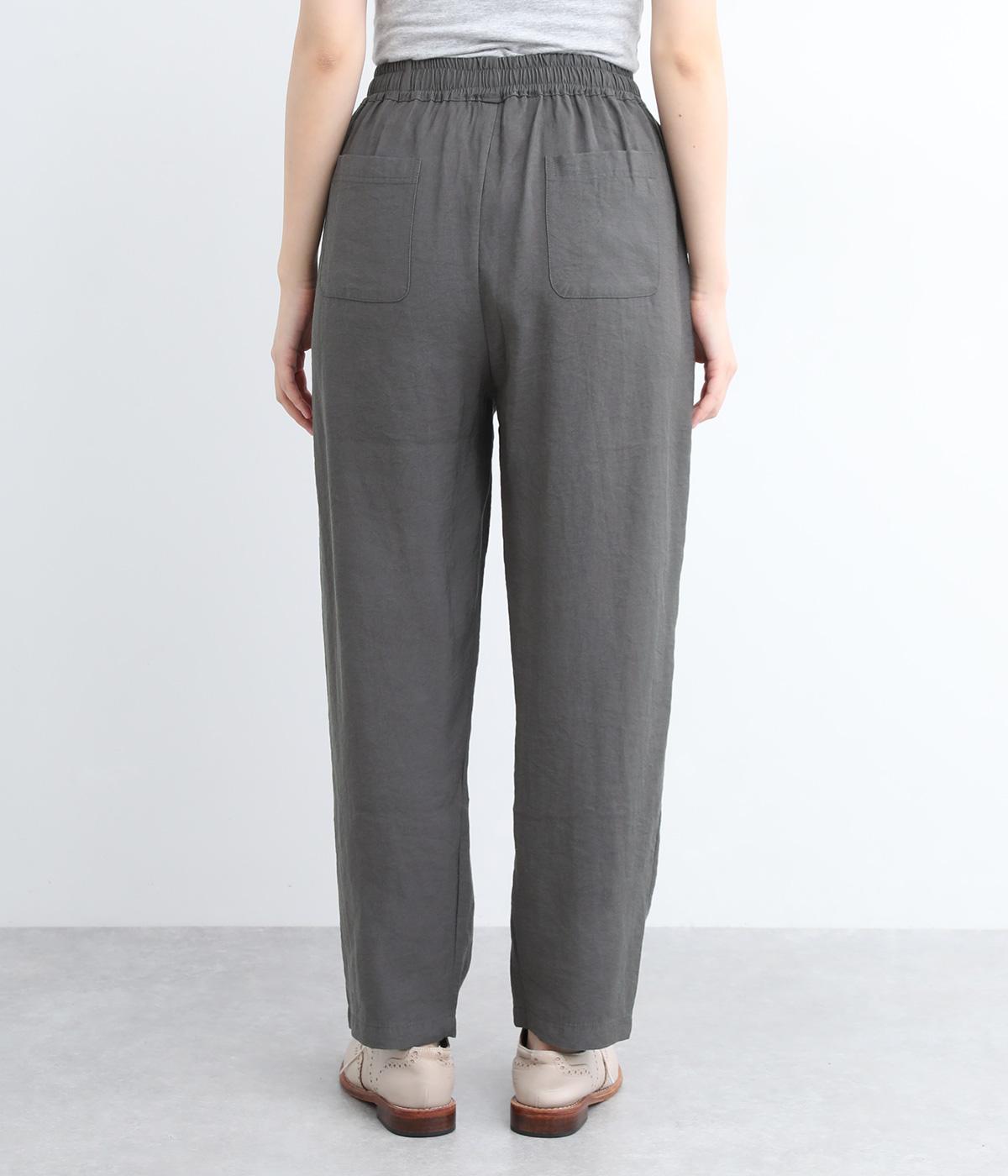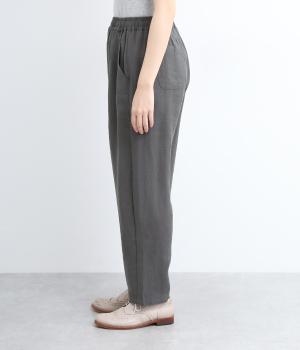 さまざまなトップスとバランスよくコーディネートできるテーパードパンツ。ほどよいゆとりがありながらも、ワイドすぎないシルエットが魅力です。ウエストは総ゴム入りで、ファスナーなしのイージータイプ。ラクにはけてきちんと見える、大人の装いにぴったりの一枚です。