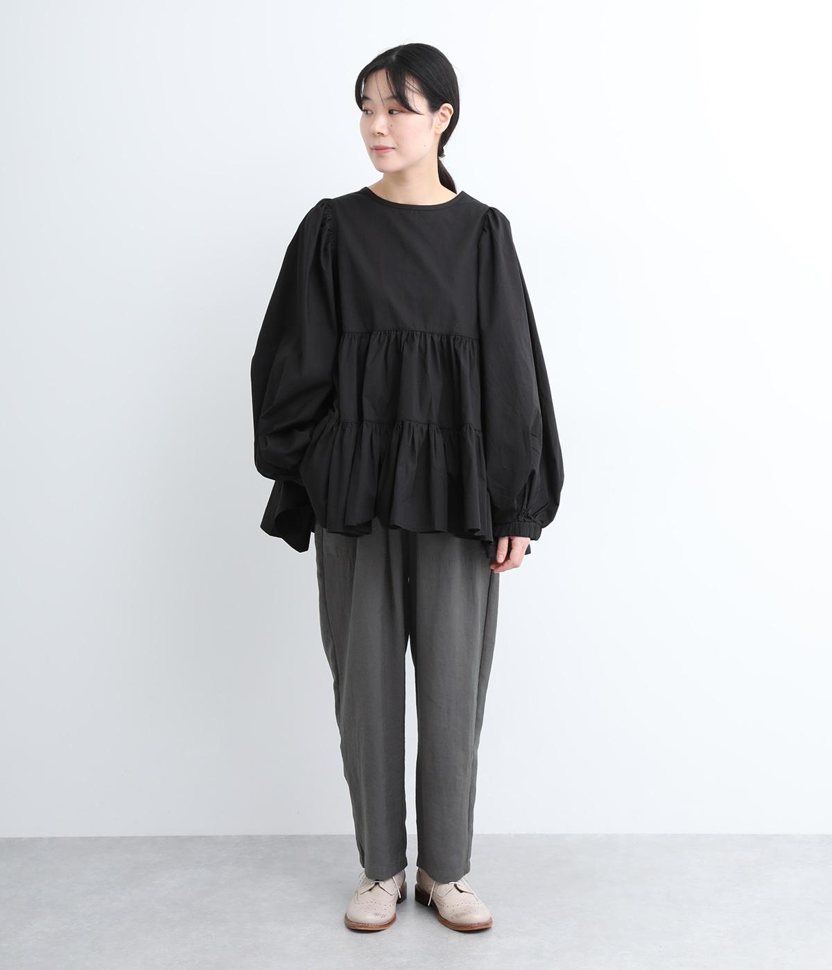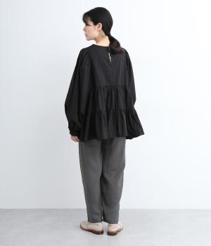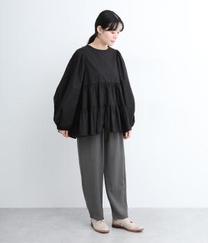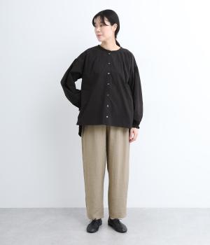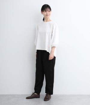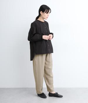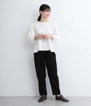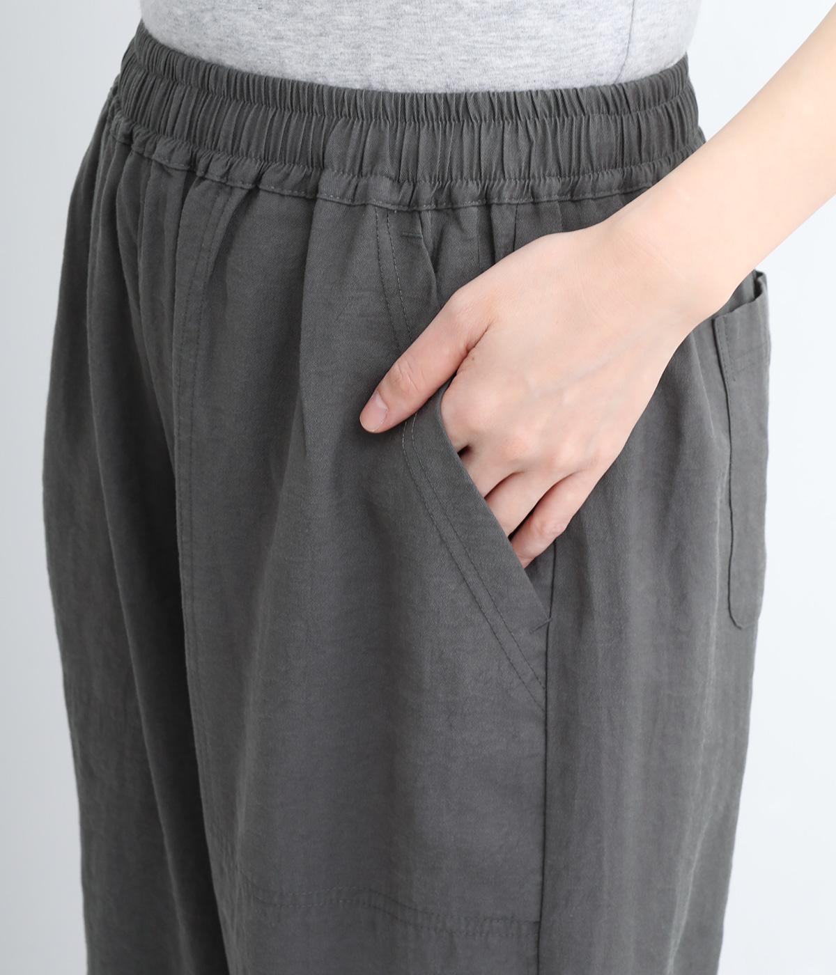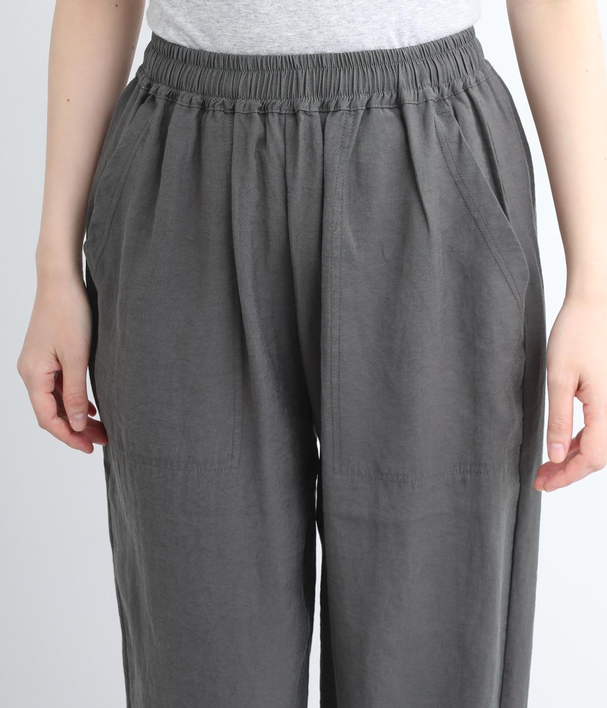 さまざまなトップスとバランスよくコーディネートできるテーパードパンツ。ほどよいゆとりがありながらも、ワイドすぎないシルエットが魅力です。ウエストは総ゴム入りで、ファスナーなしのイージータイプ。ラクにはけてきちんと見える、大人の装いにぴったりの一枚です。