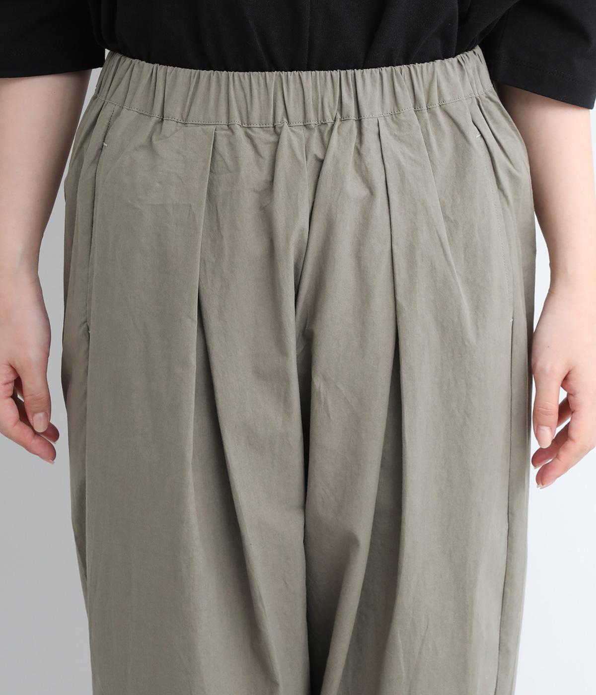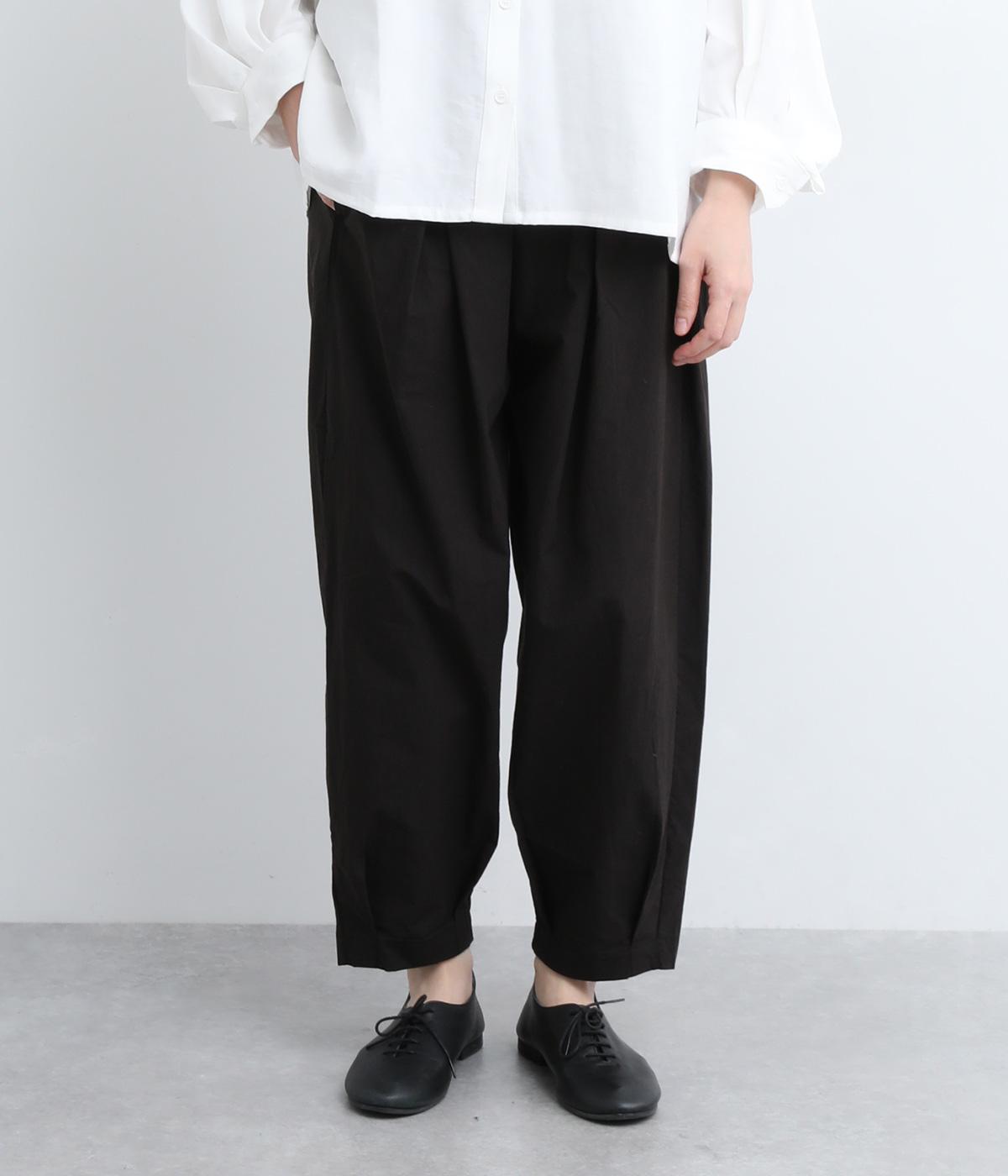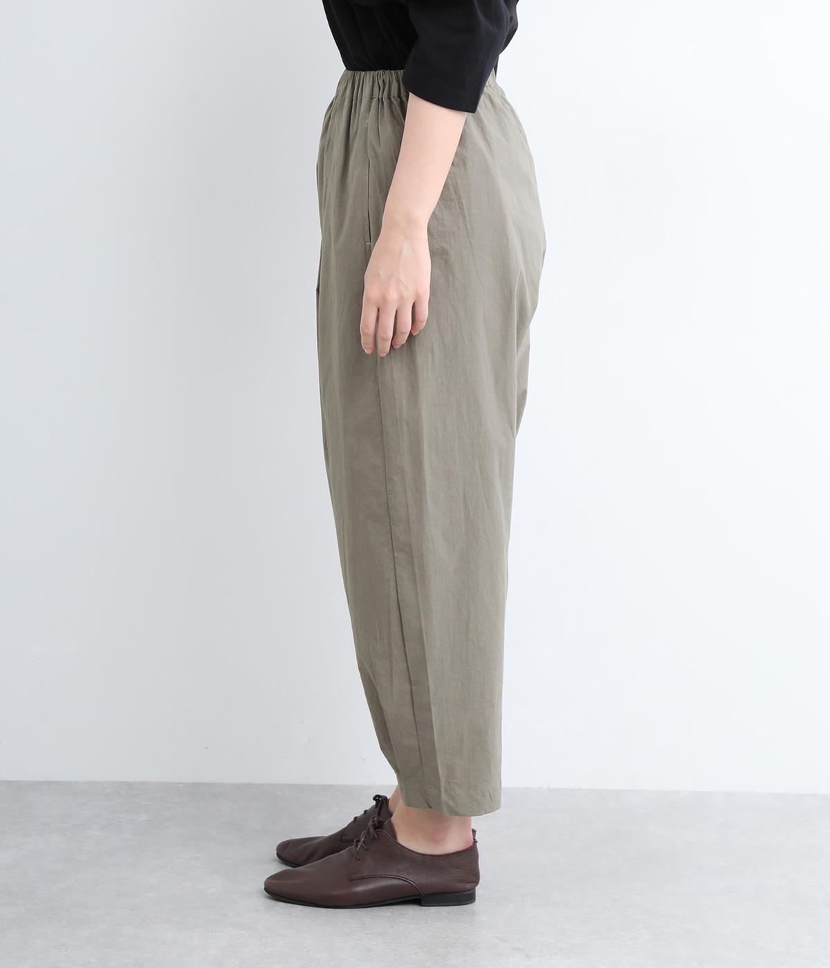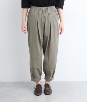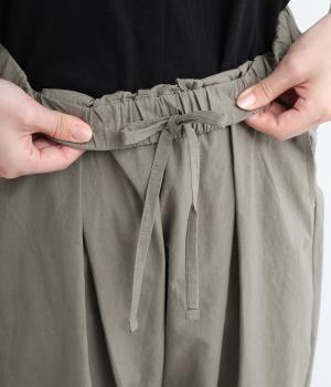 ウエストと裾にタックを施した、ほどよいボリュームのパンツです。ほのかな丸みが、こなれ感のある着こなしに仕上げてくれます。ウエストはゴムタイプで、はき心地のよさも抜群。内側のヒモでフィット感を調整できます。