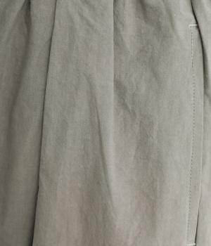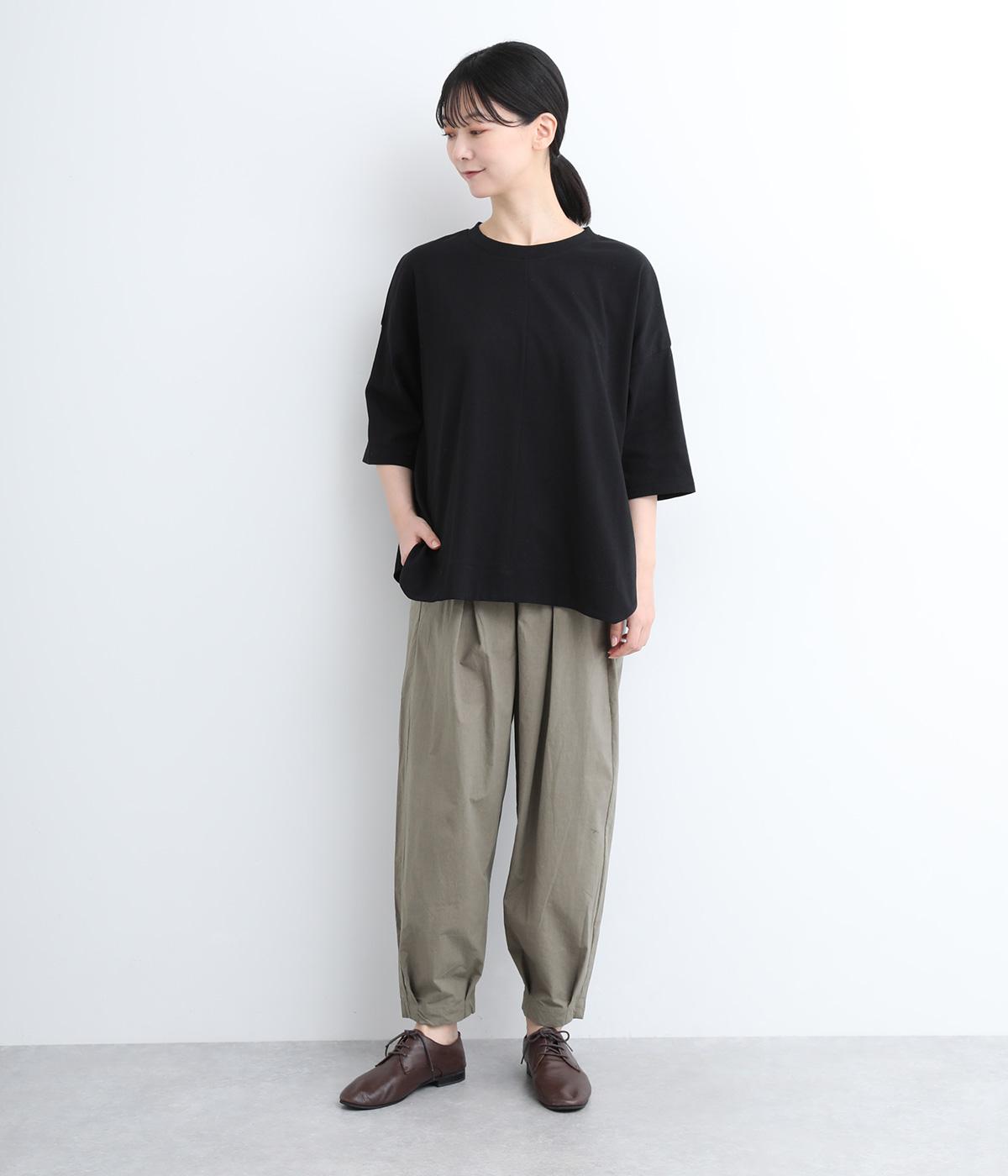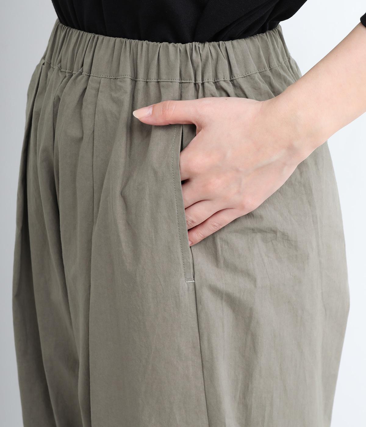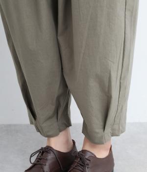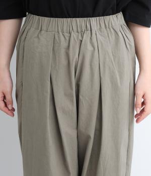 ウエストと裾にタックを施した、ほどよいボリュームのパンツです。ほのかな丸みが、こなれ感のある着こなしに仕上げてくれます。ウエストはゴムタイプで、はき心地のよさも抜群。内側のヒモでフィット感を調整できます。
