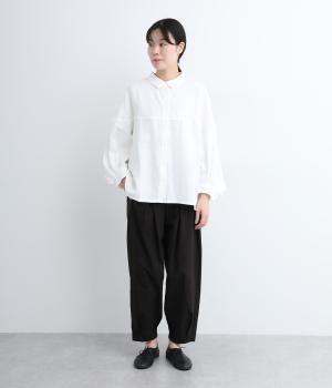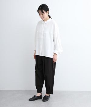 ハリのある軽やかな風合いのコットンを使用。肌にまとわりつかず、ロングシーズン快適です。ふわっとしたシルエットがきれいに描かれ、上品な印象を与えます。