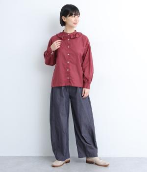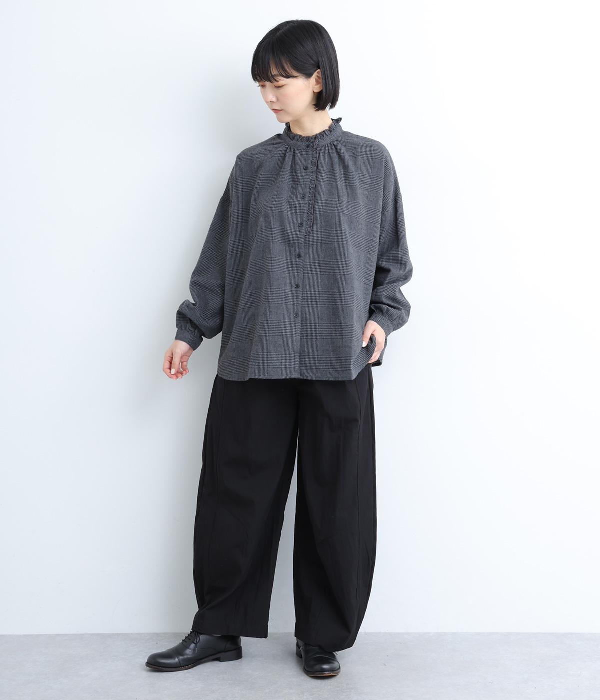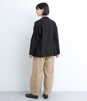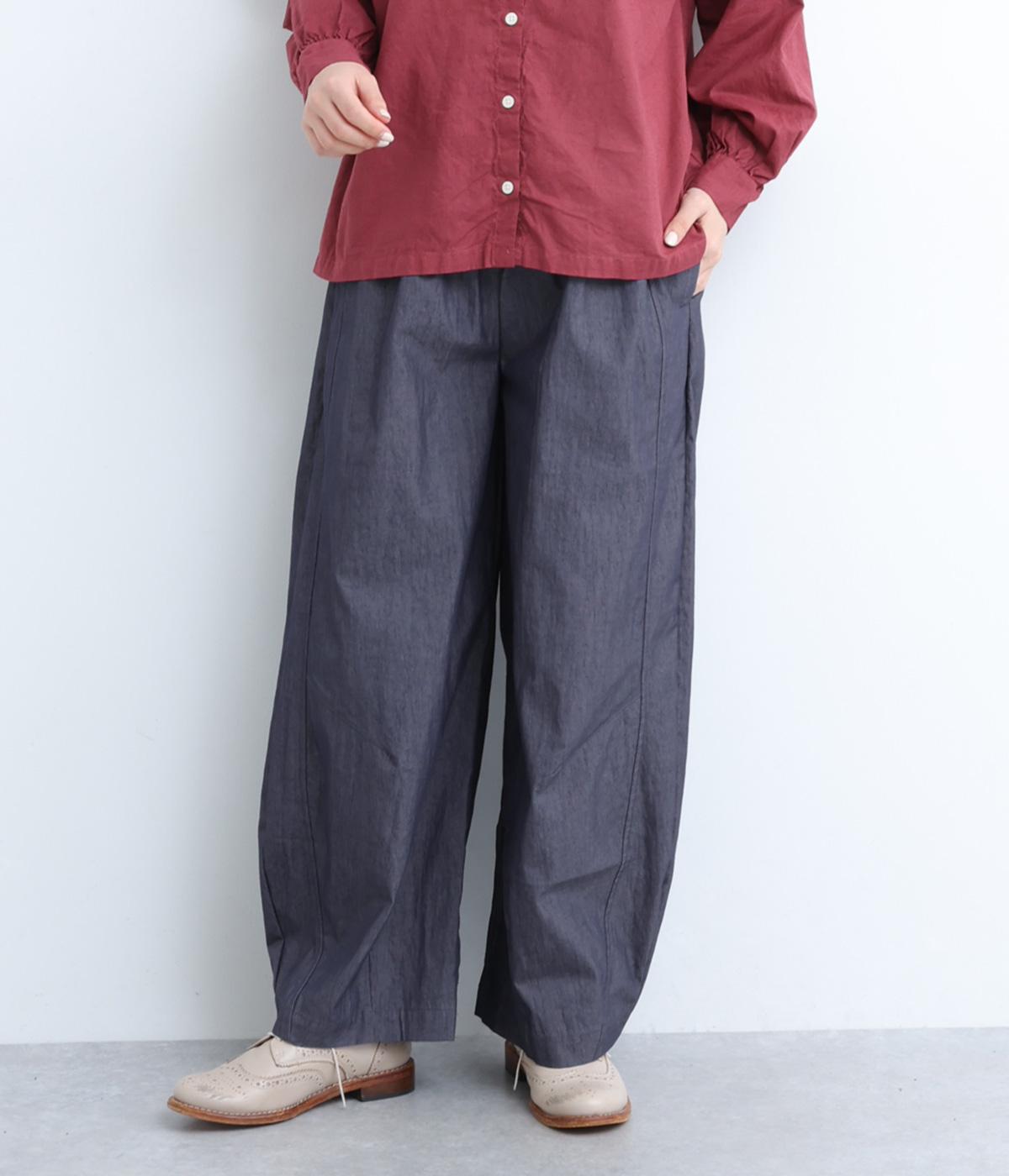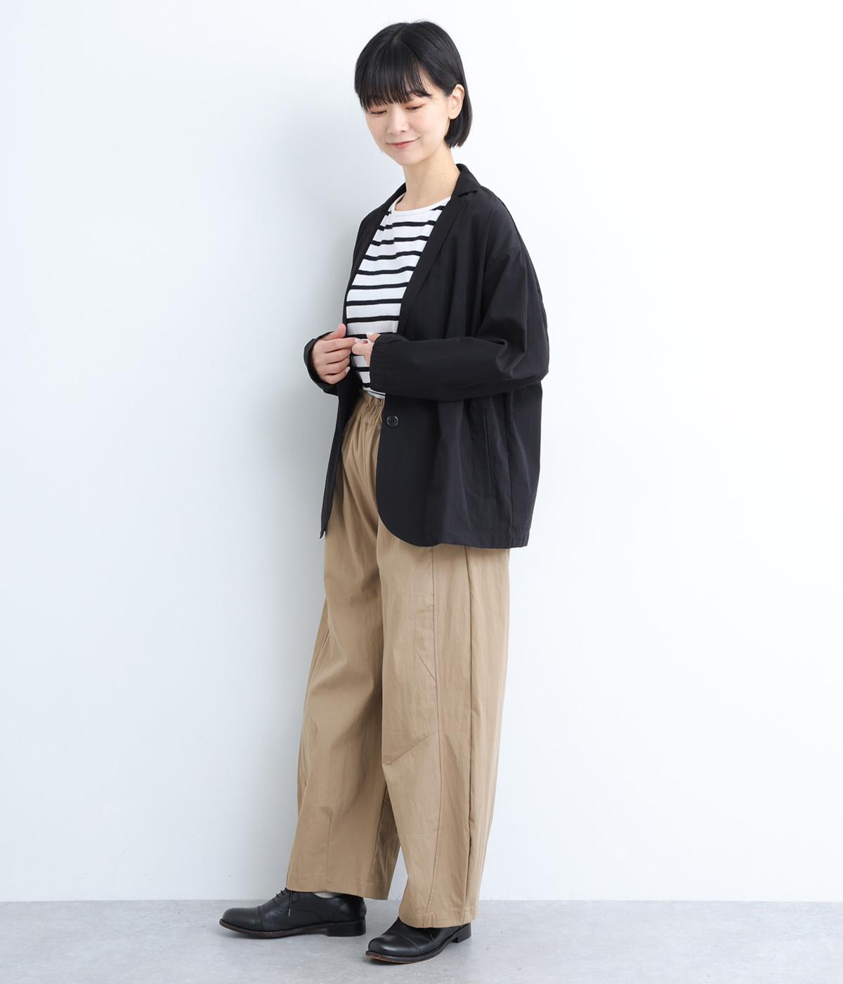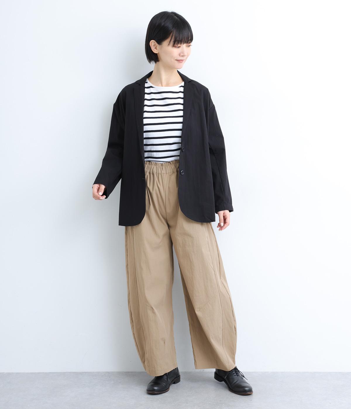 コットンナイロンサイド切替ワイドパンツ(グレイベージュ-F)