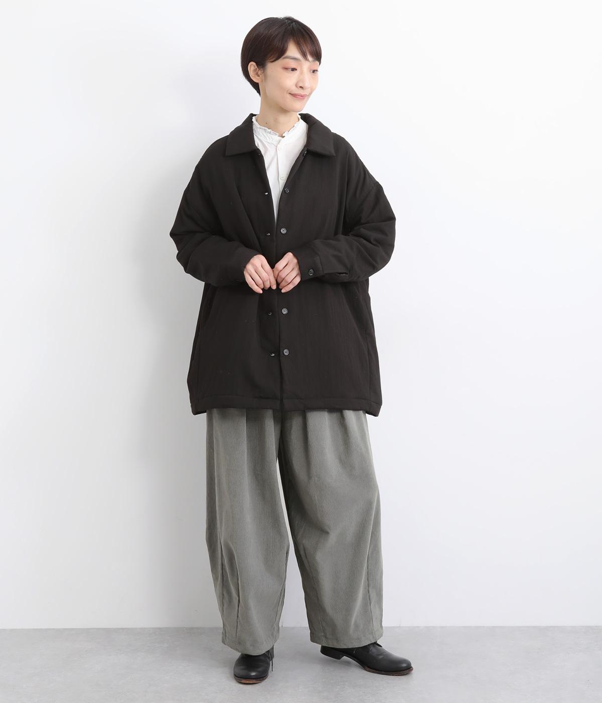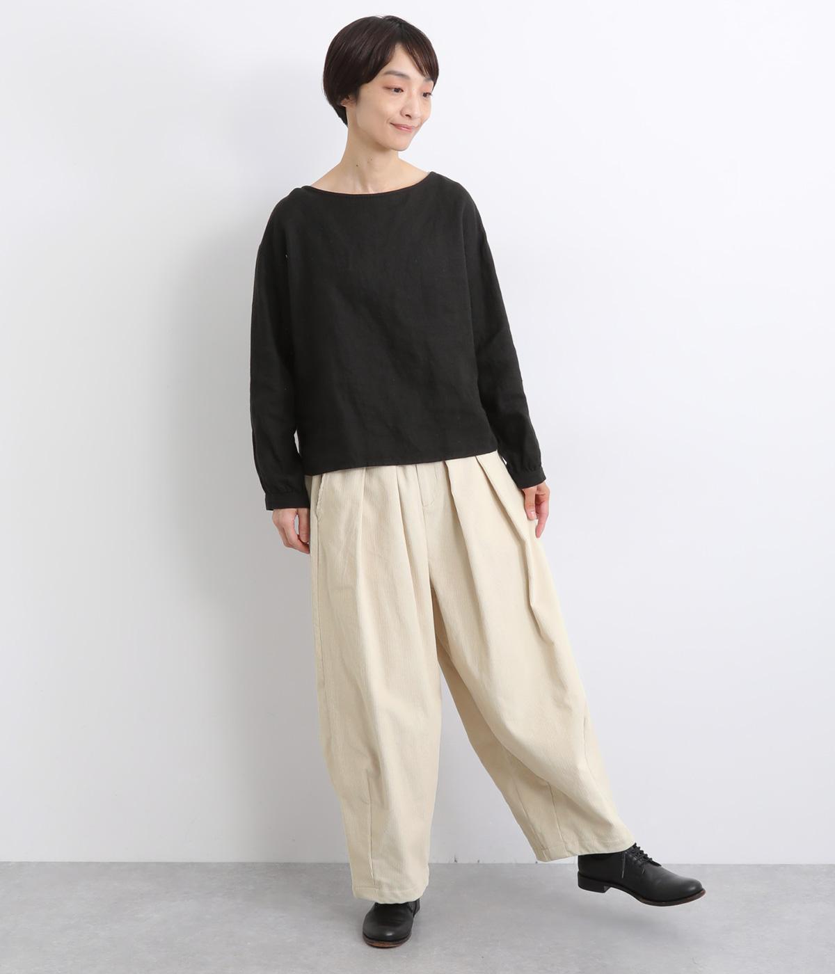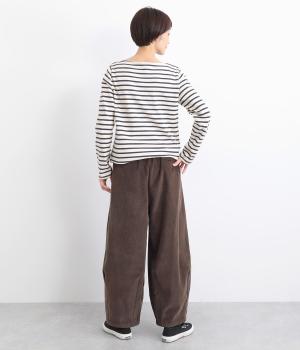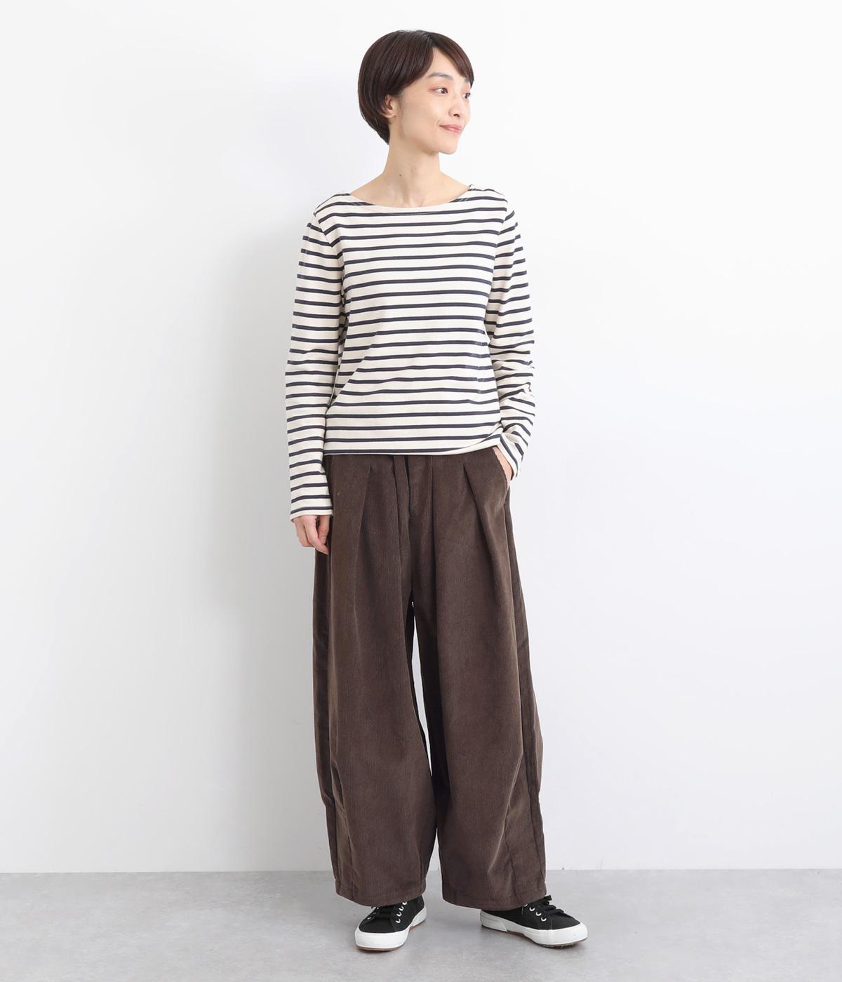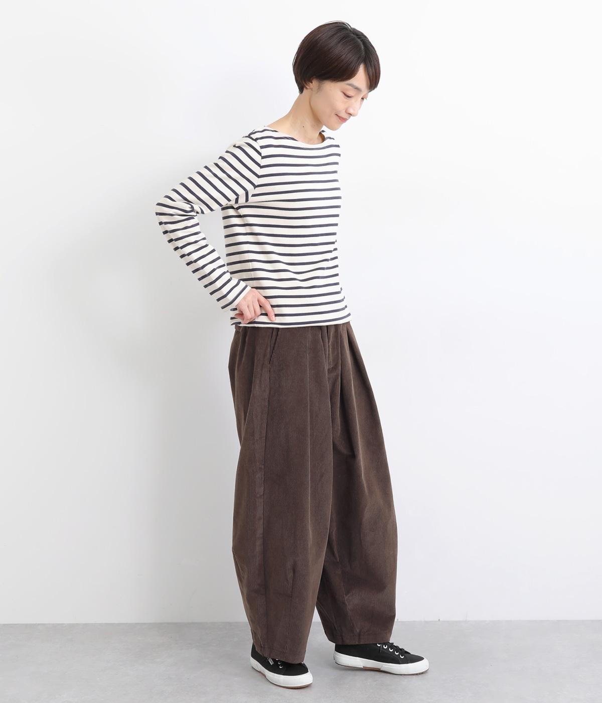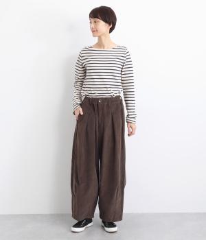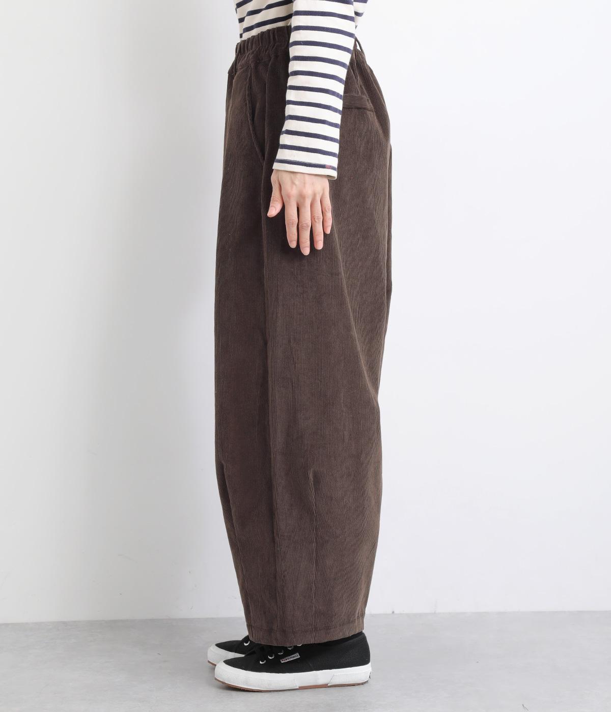 タックと裾の長めダーツで自然な立体感を持たせたワイドパンツ。コーデュロイ生地がいい雰囲気を醸し、シンプルな装いでもこなれ感のある大人スタイルが完成。前ファスナーで脱ぎはきしやすく、ウエストゴムでフィット感も◎。