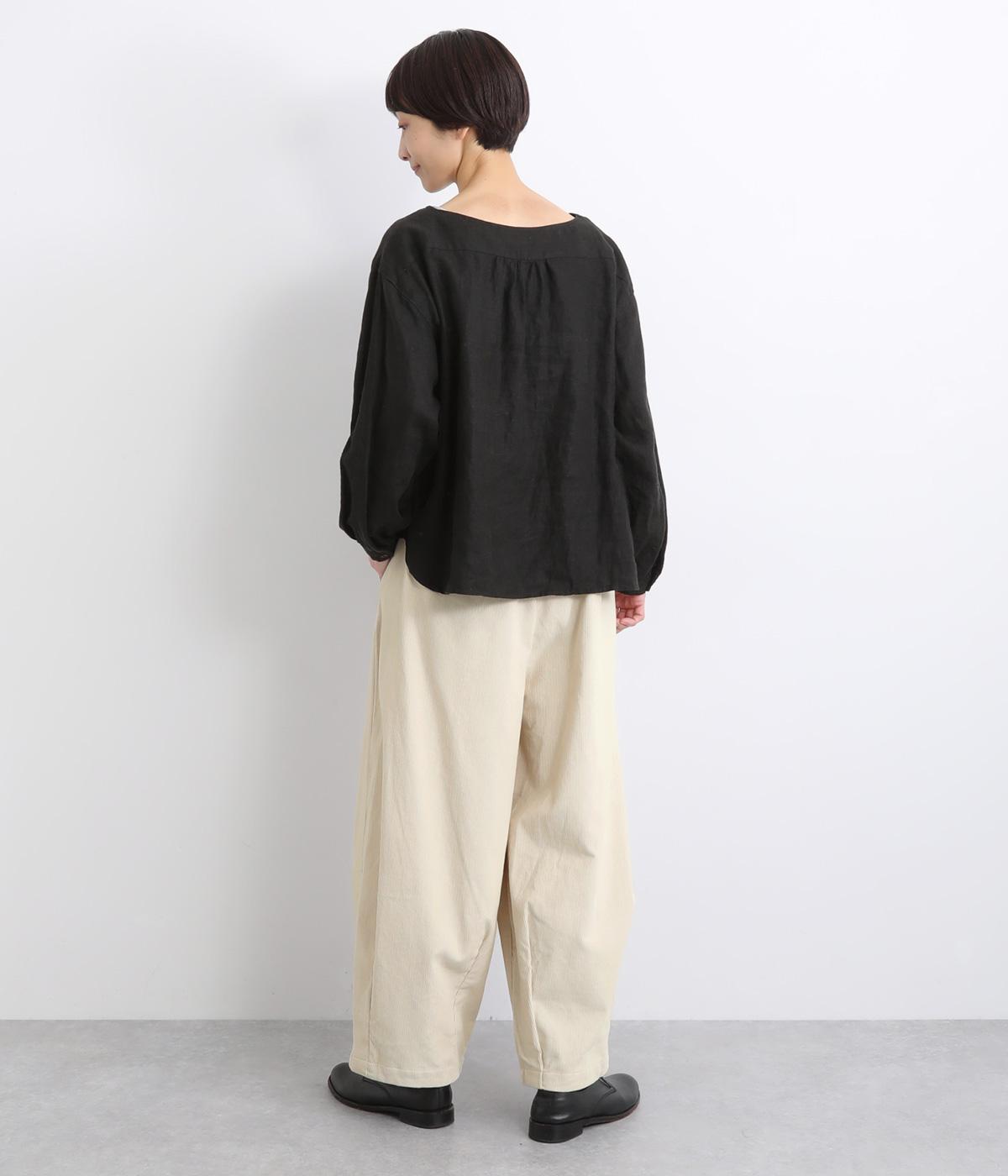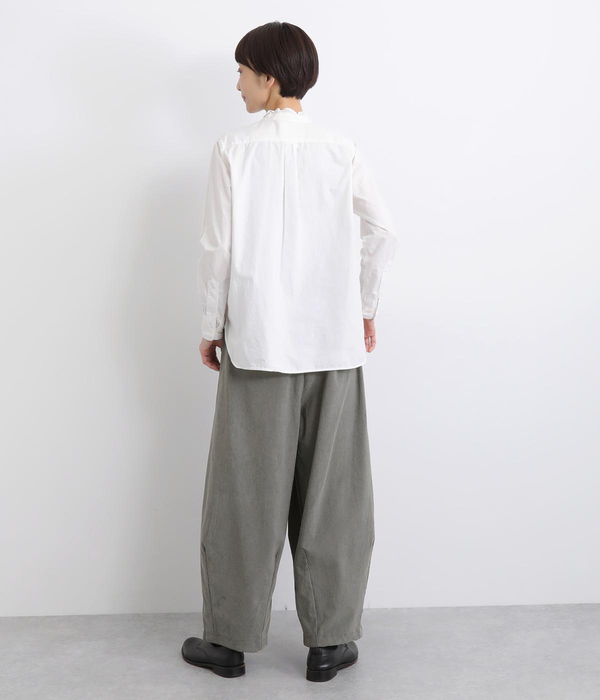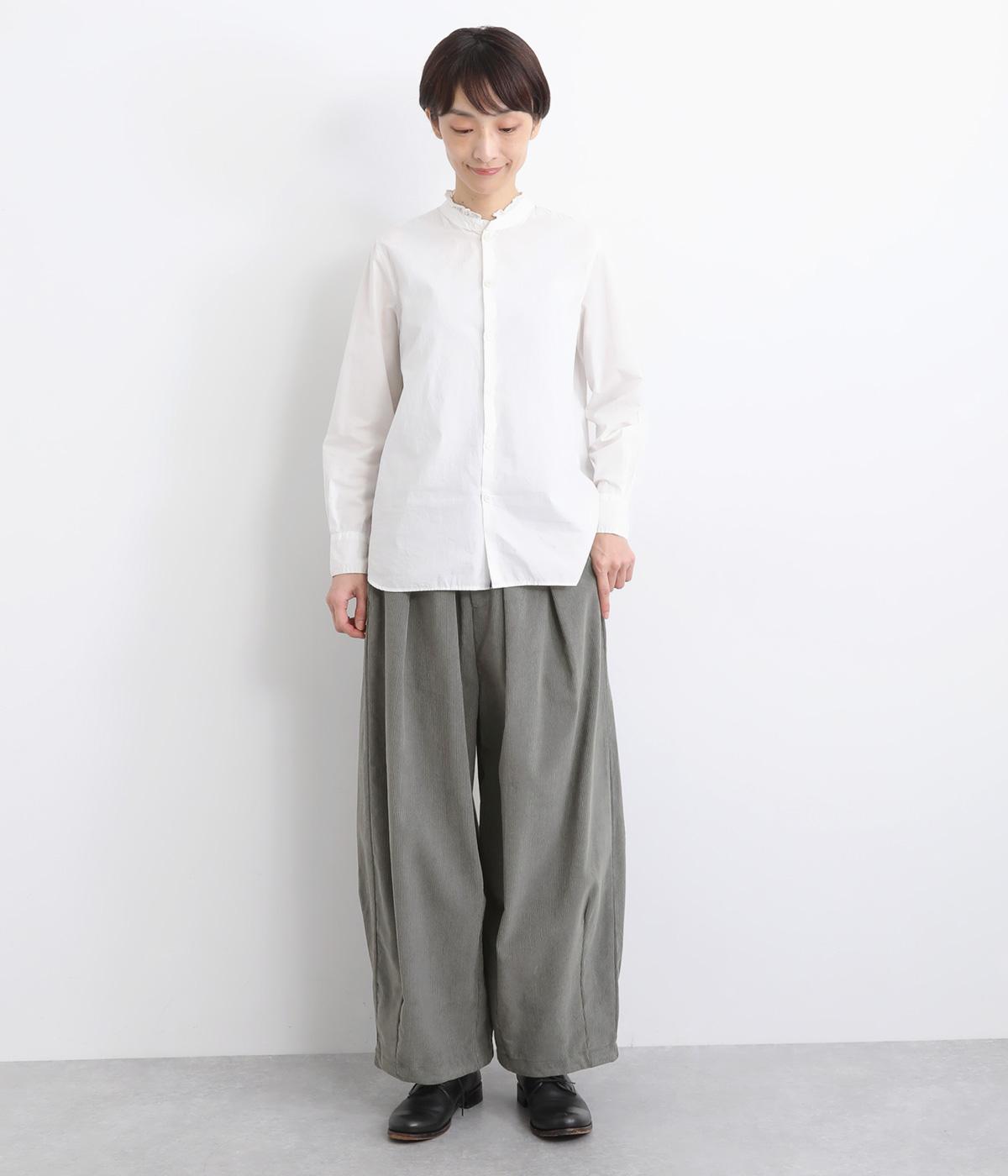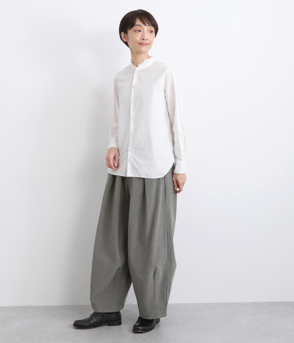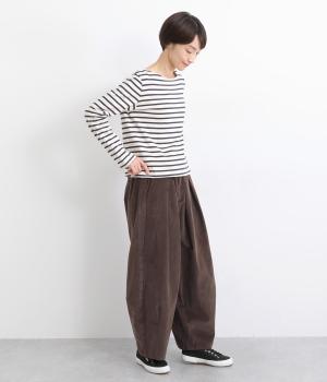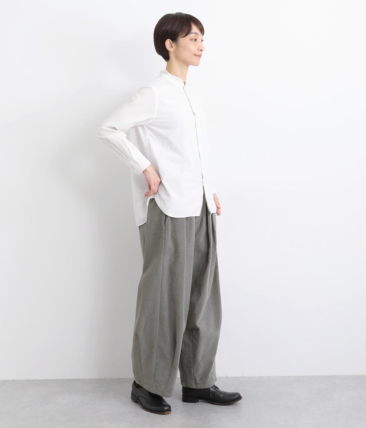 ソフトな風合いのコットンコーデュロイ生地を使用。やわらかな光沢に細畝で、カジュアルすぎない雰囲気のいい仕上がりです。しっかりとした生地感ながら厚手すぎずはきやすい一本。