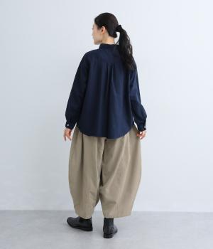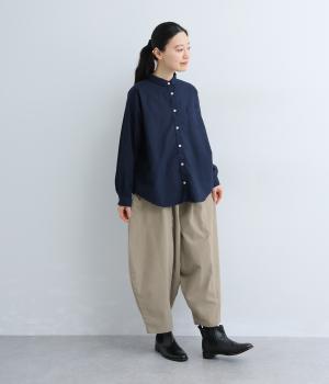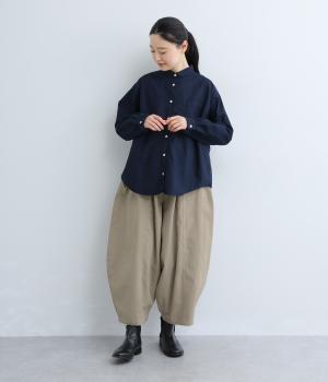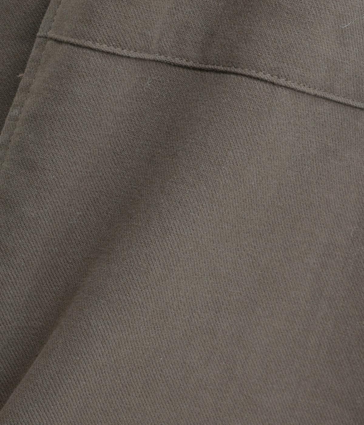 ほどよい厚みでしなやかなハリ感が魅力のコットンツイル生地です。ほのかに起毛した優しい雰囲気で、着るほどに深みを増していく味わいのある素材感です。