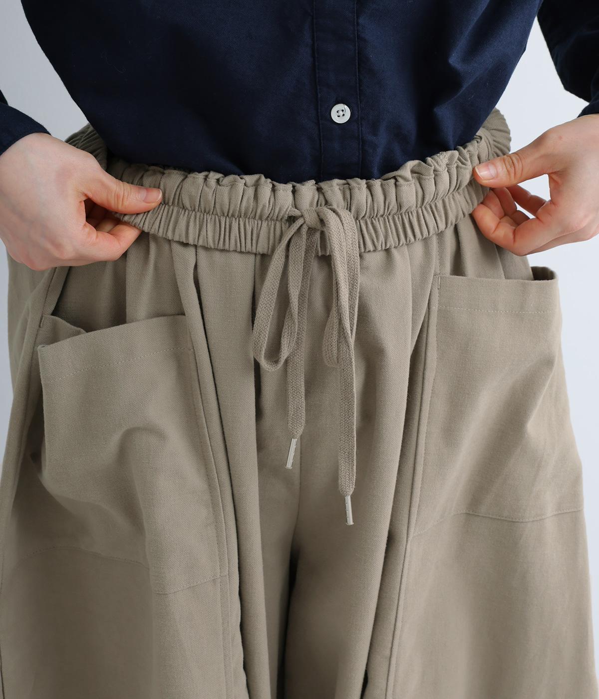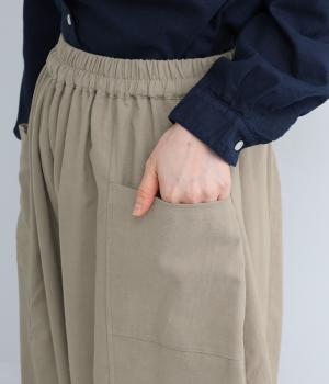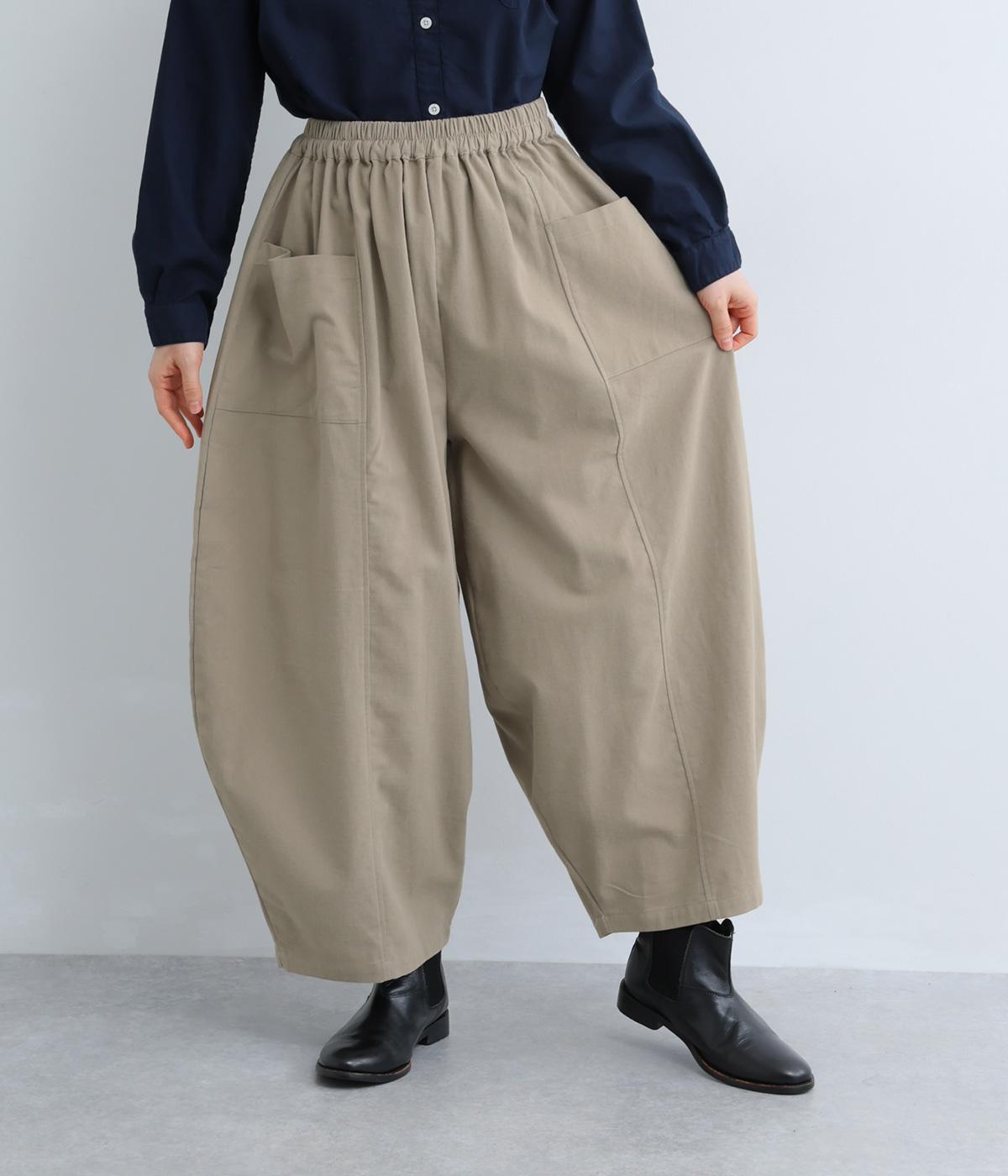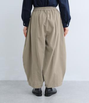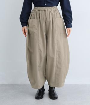 ぽわんと広がる個性的なバルーンシルエットで、前面に配したポケットがアクセントになっています。シンプルなトップスと合わせるだけでスタイリングが完成します。ウエストは総ゴム使用で紐でサイズ調節が可能です。