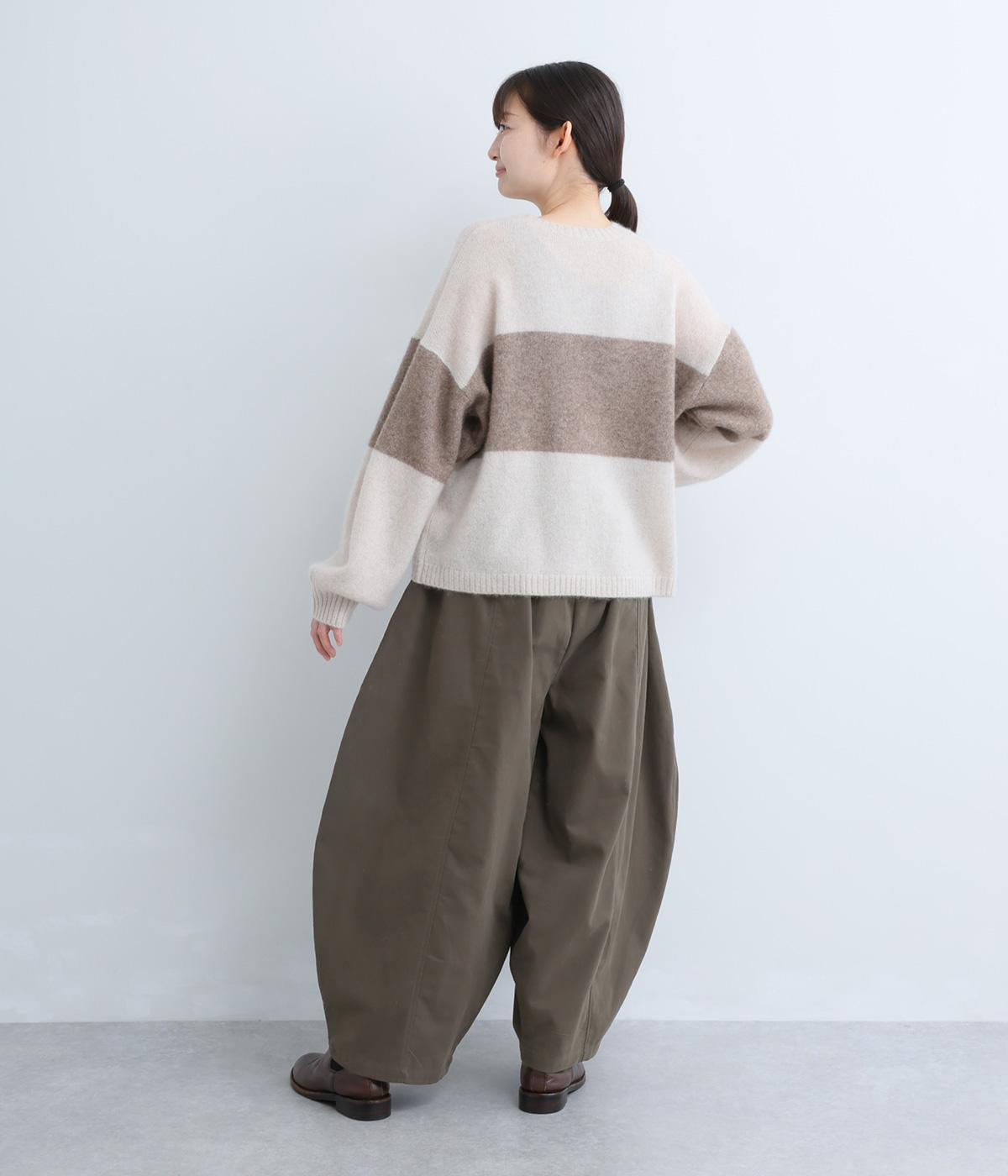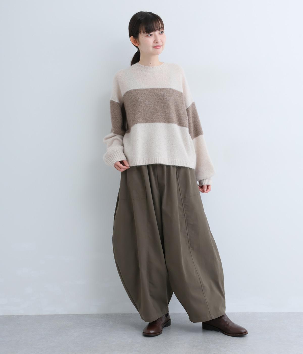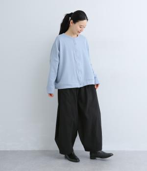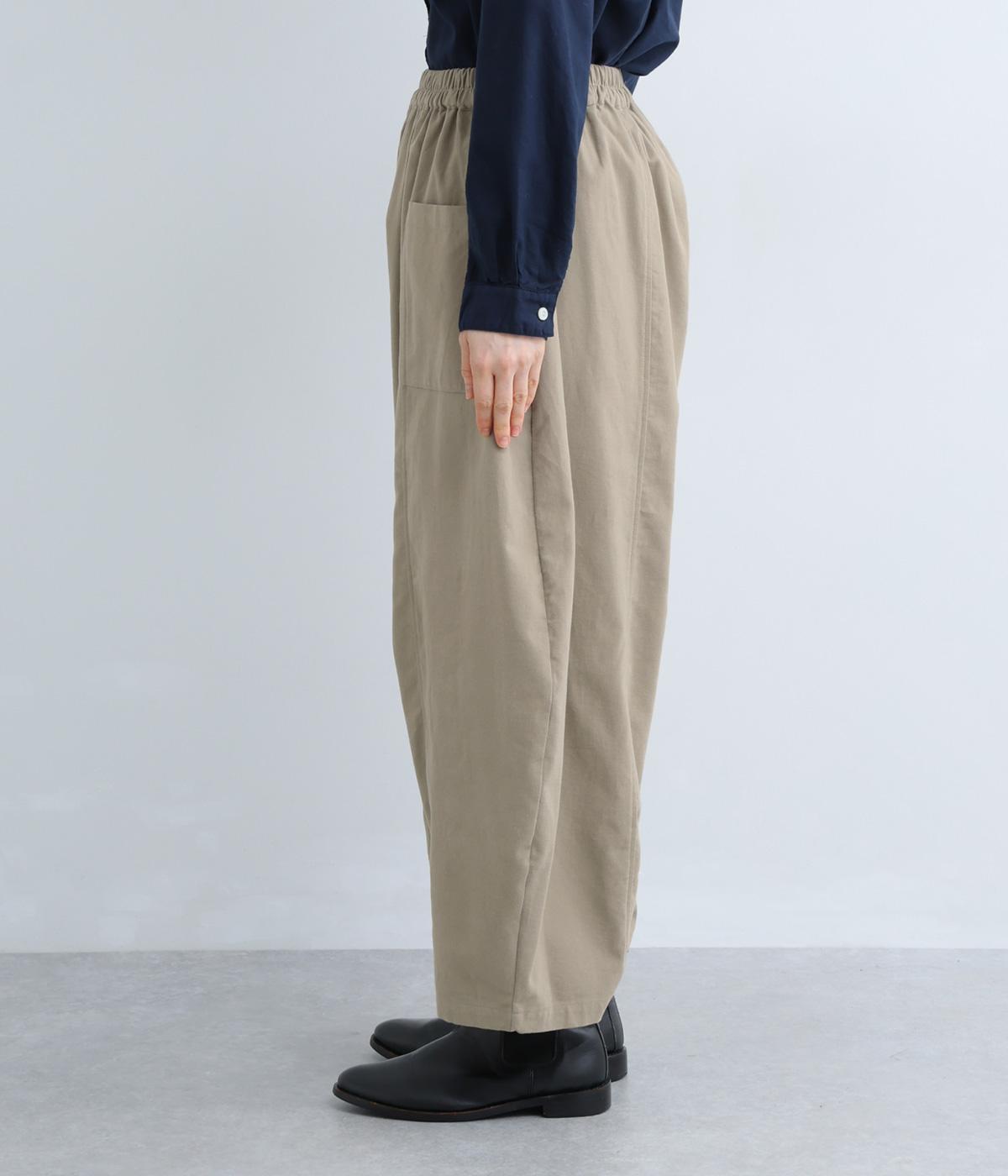 ぽわんと広がる個性的なバルーンシルエットで、前面に配したポケットがアクセントになっています。シンプルなトップスと合わせるだけでスタイリングが完成します。ウエストは総ゴム使用で紐でサイズ調節が可能です。