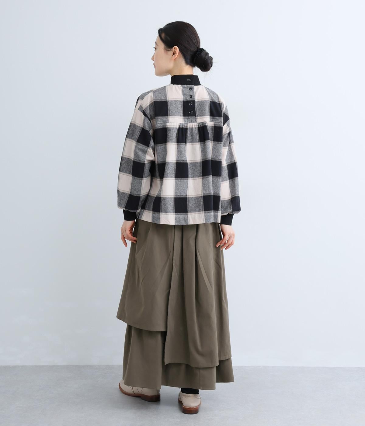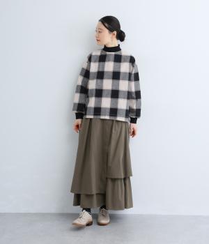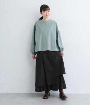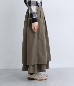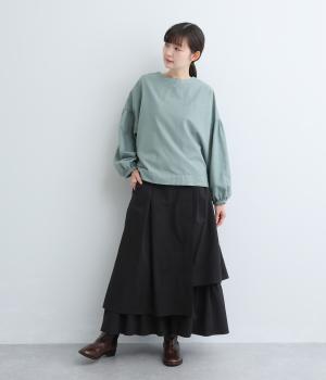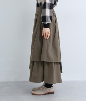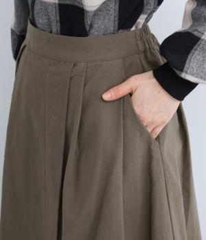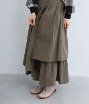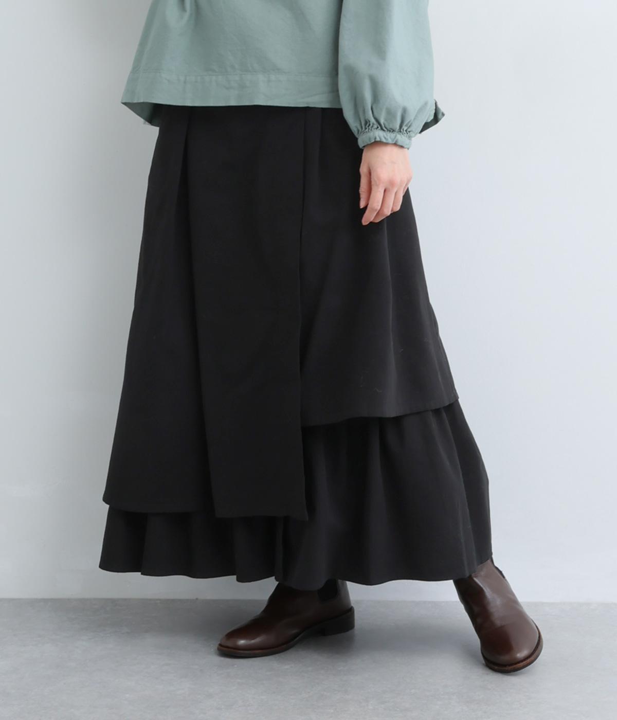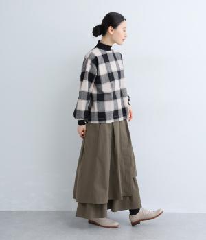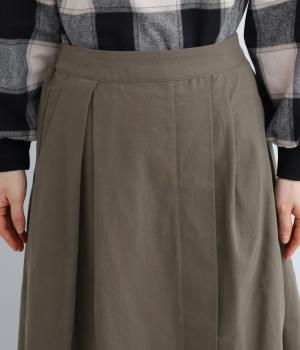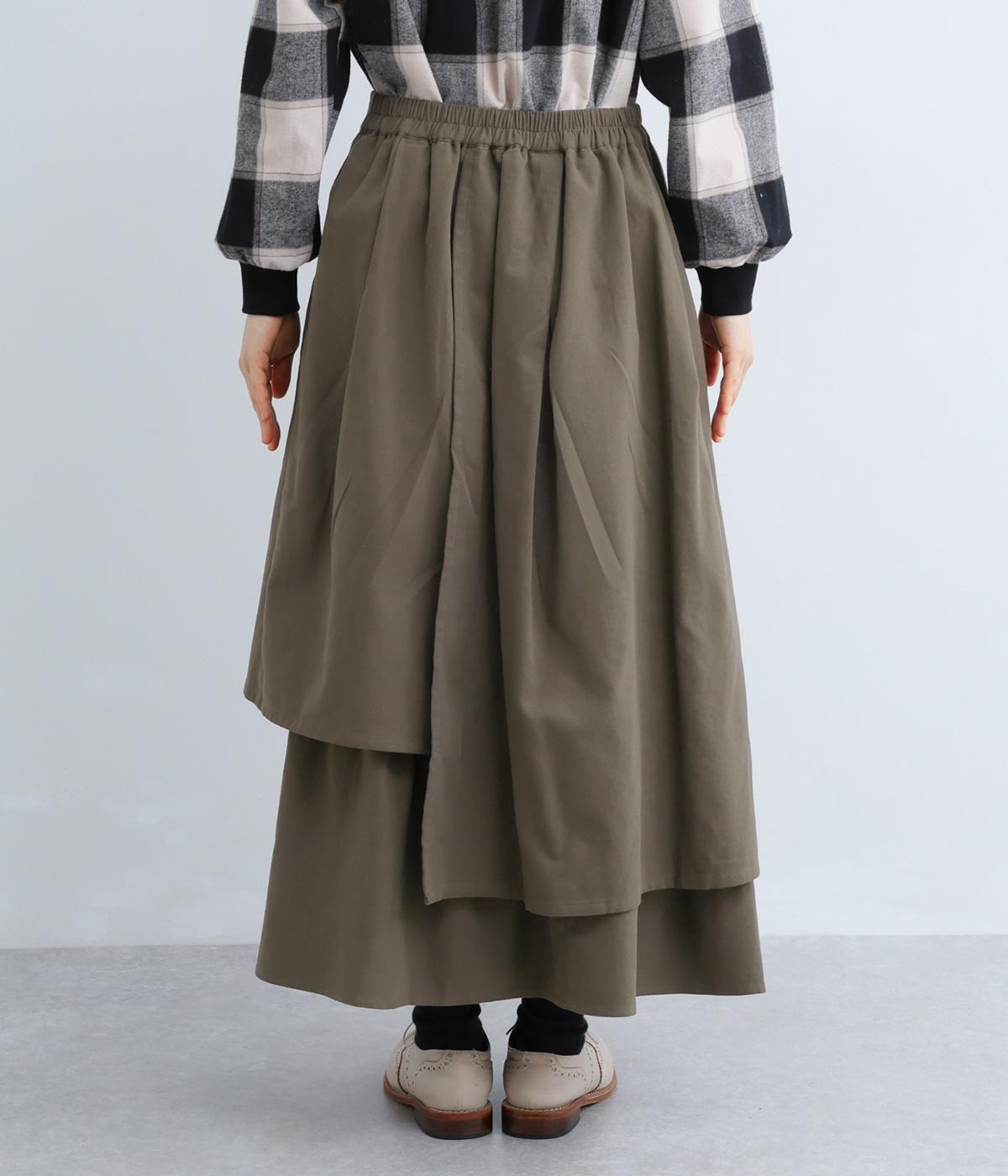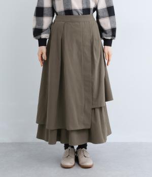 アシンメトリーなシルエットが華やかな主役スカート。歩くたびにゆらりと揺れるラインが女性らしい雰囲気を引き立てます。滑らかな裏地付きで足さばきも◎。ウエストは前面をフラットに、うしろはゴムを施して快適なフィット感に仕上げました。