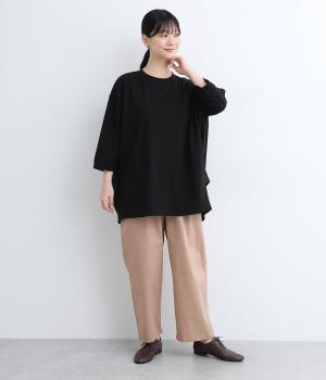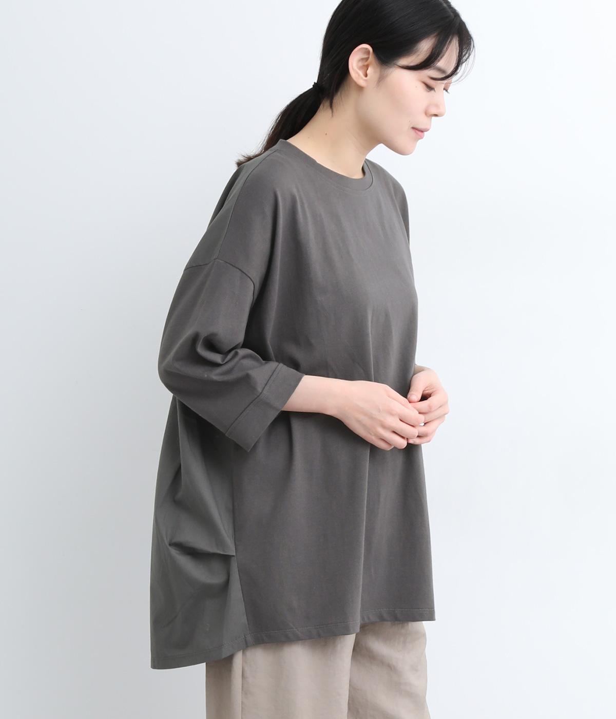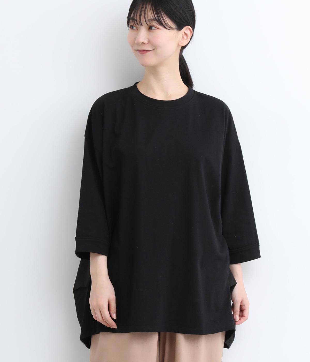 着心地のよさとデザイン性を備えた異素材使いのプルオーバー。裾のサイドはタックでつまんで、動きのあるシルエットに仕上げています。腰までカバーする着丈で、安心感も◎。大人のカジュアルスタイルにおすすめの一枚です。