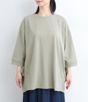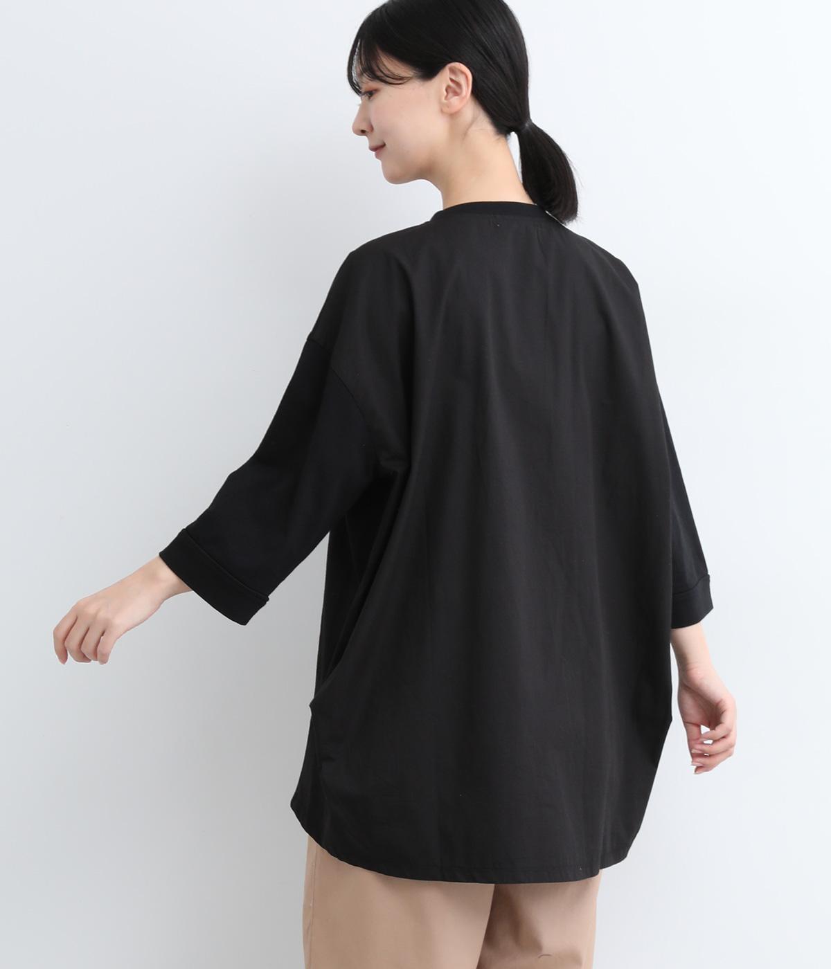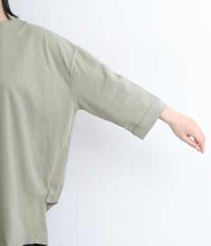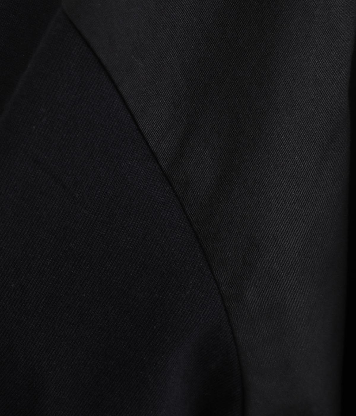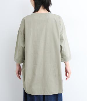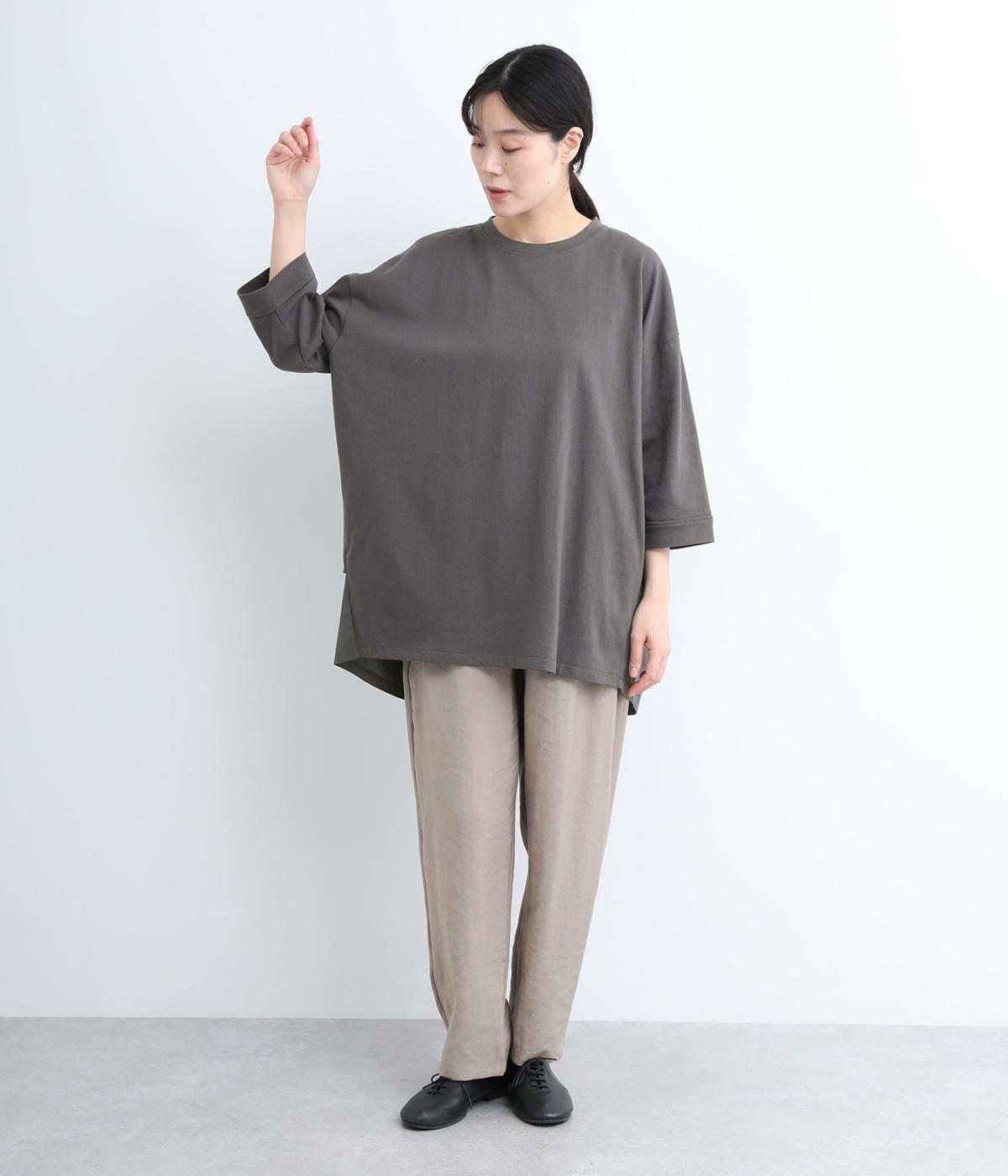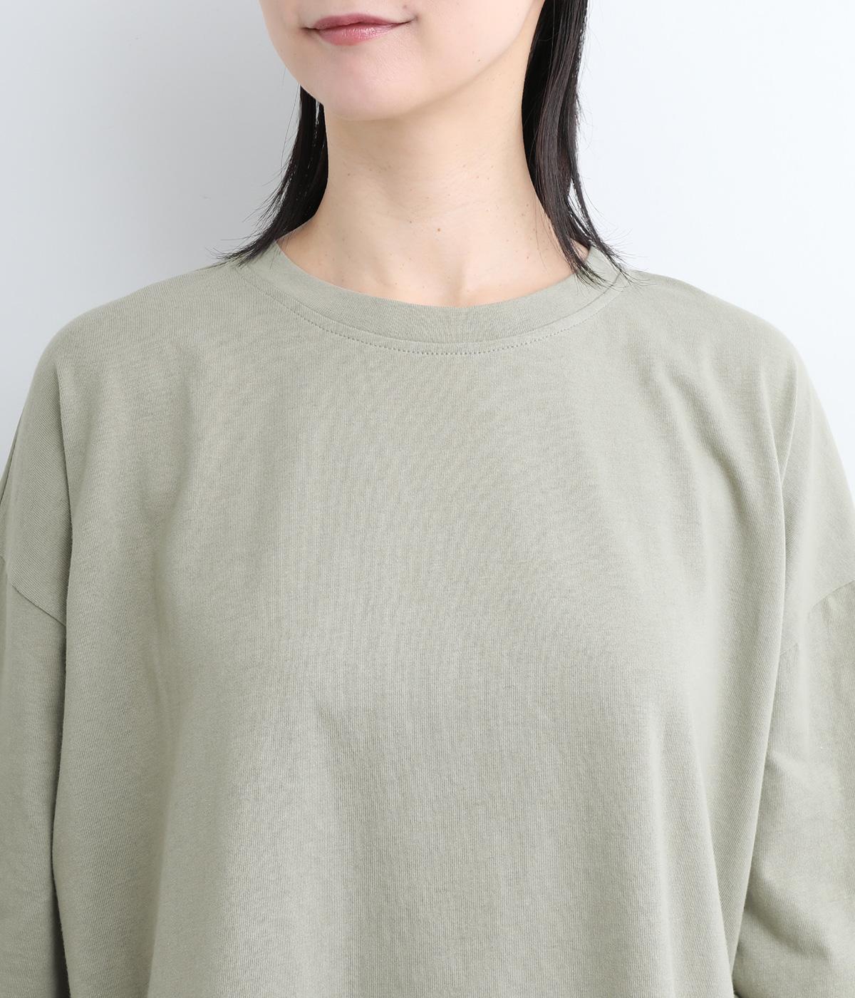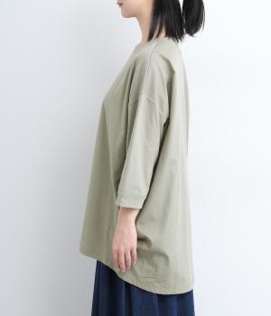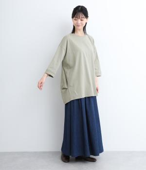 やわらかく伸縮性のあるコットン天竺素材を使用。背面の切り替えには、さらりとした風合いのコットンボイル地を切り替えました。同色異素材切り替えで、さりげない表情の変化が楽しめます。