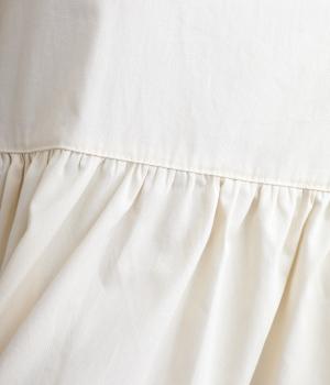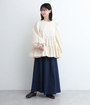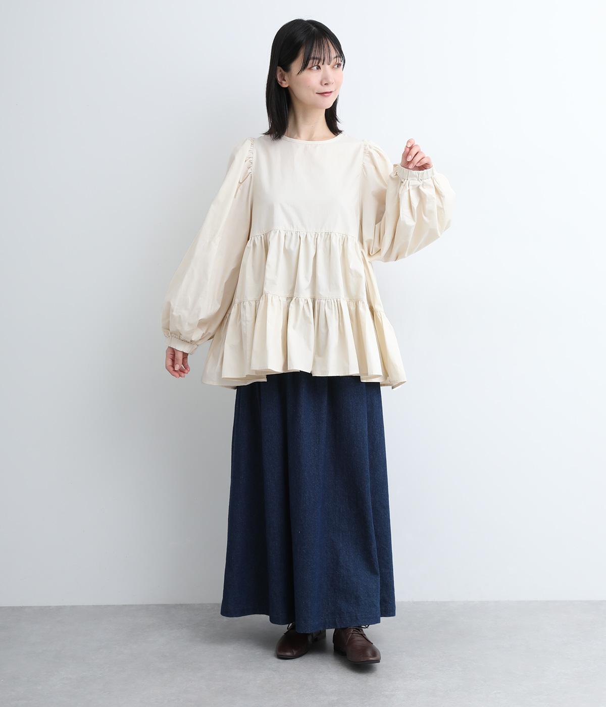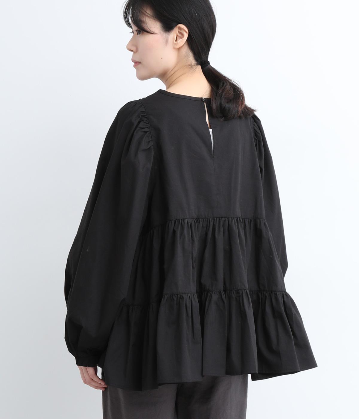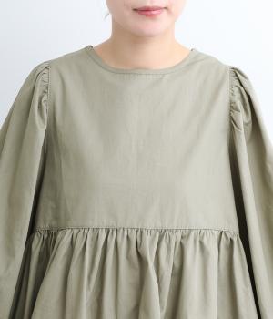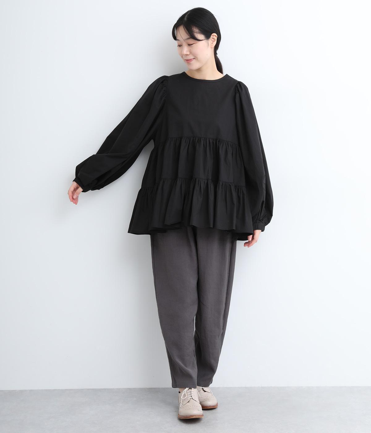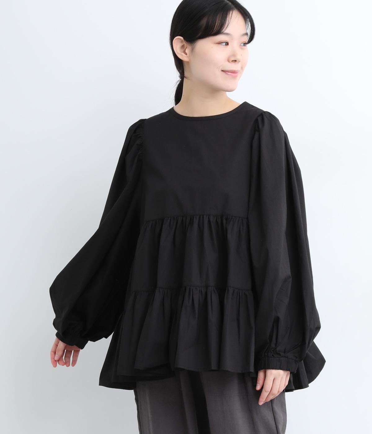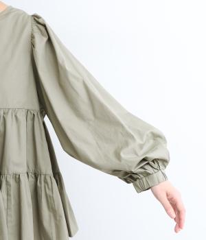 切り替えとギャザーを重ねたボリュームたっぷりのティアードデザインです。シンプルにボトムと合わせるだけで華やかな印象に。袖口ゴム入りでバルーン袖にアレンジするのもおすすめ。