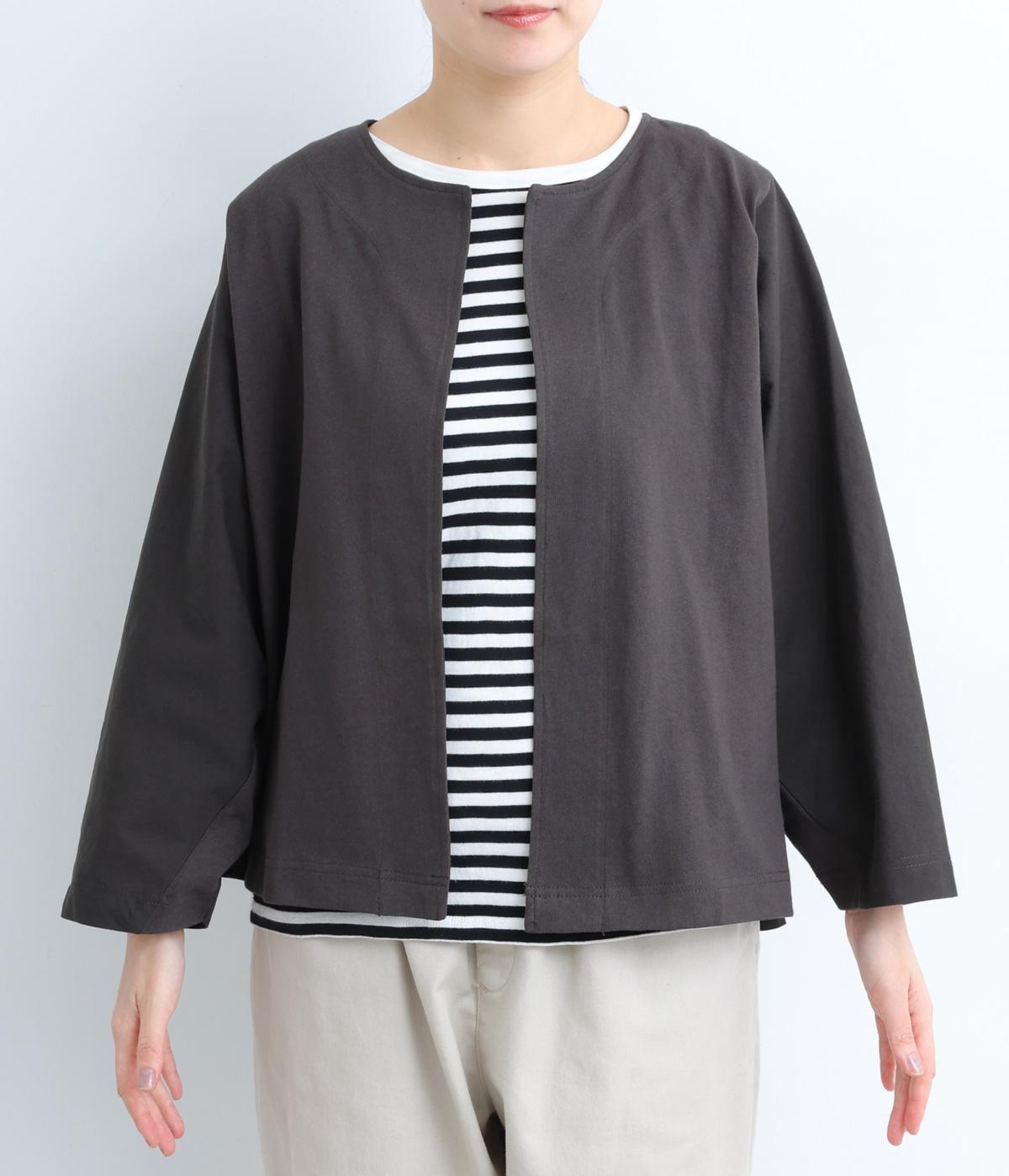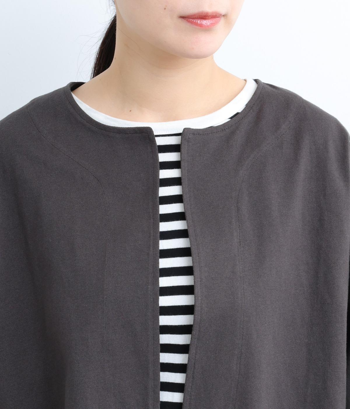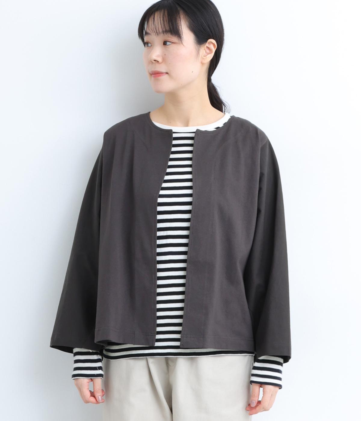 留め具のない、ラフに羽織れるカーディガンです。たっぷりとした袖が特徴的で、布帛生地も組み合わせることによって適度に軽さもプラス。ゆったりとした作りでワンピースなどにも合わせやすい一枚です。