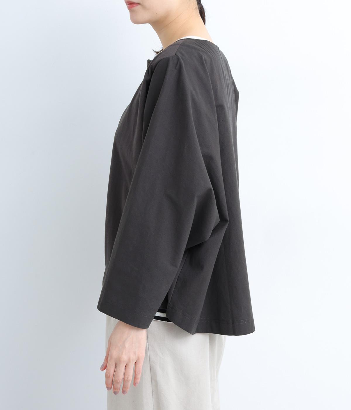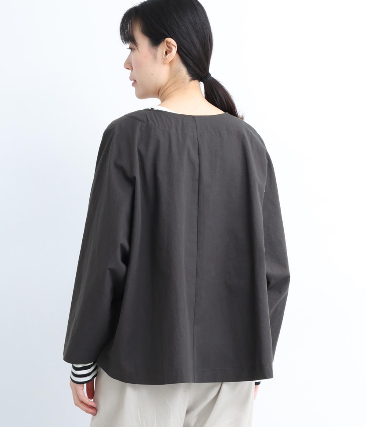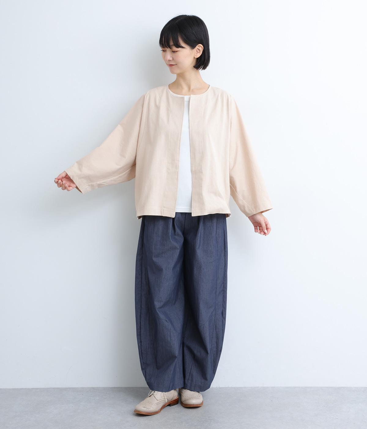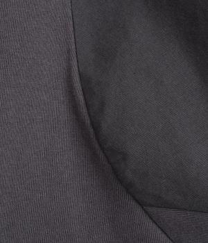 ソフトで伸びのあるカットソー生地と布帛を組み合わせました。同色系でまとまりも良く、さり気なく変化をつけています。どちらもコットンでロングシーズン活躍する生地感です。