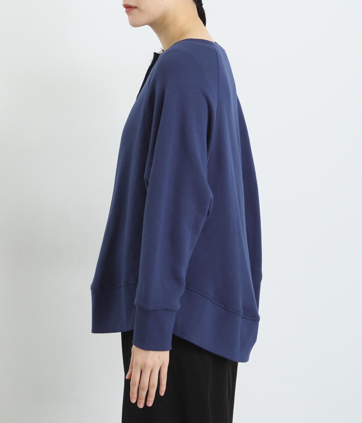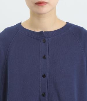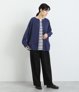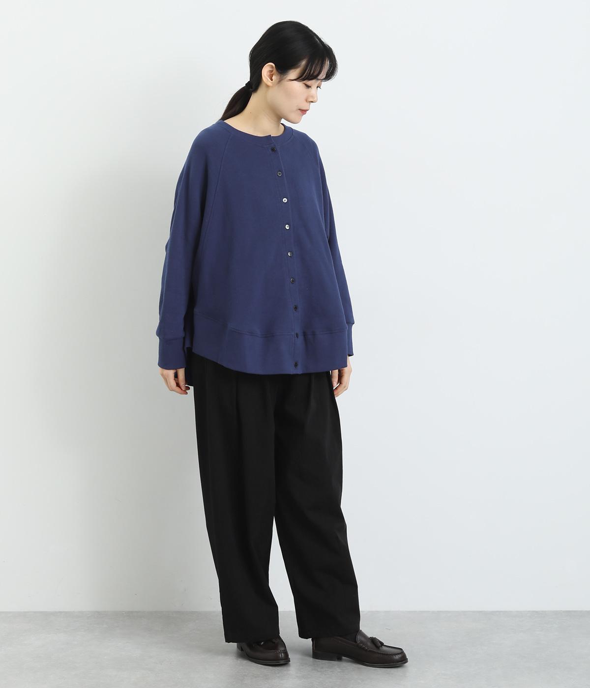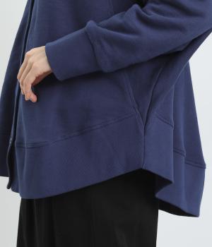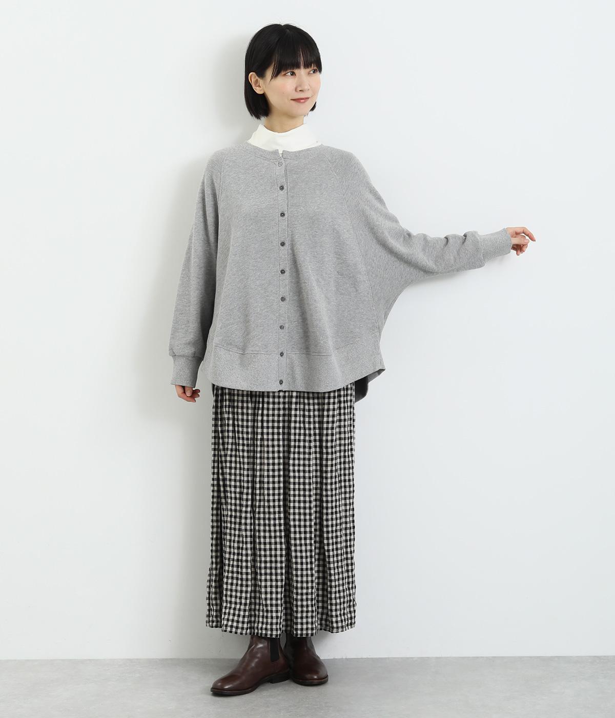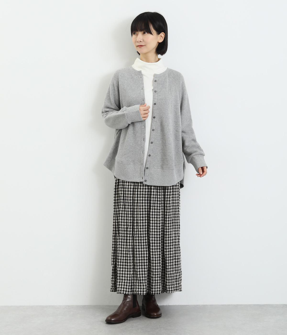 スラブメランジの裏毛が生み出す、やわらかくナチュラルな風合いが心地いい生地。伸縮性があるので動きやすくデイリーに活躍。着まわしやすくロングシーズン対応してくれます。