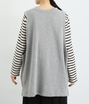 スラブメランジ裏毛のナチュラルな風合いが心地よく、軽快に着こなすことができます。伸縮性があるのでデイリー使いにぴったり。着まわしやすく、ロングシーズン対応してくれます。