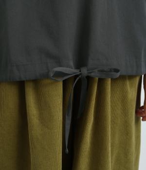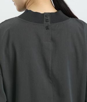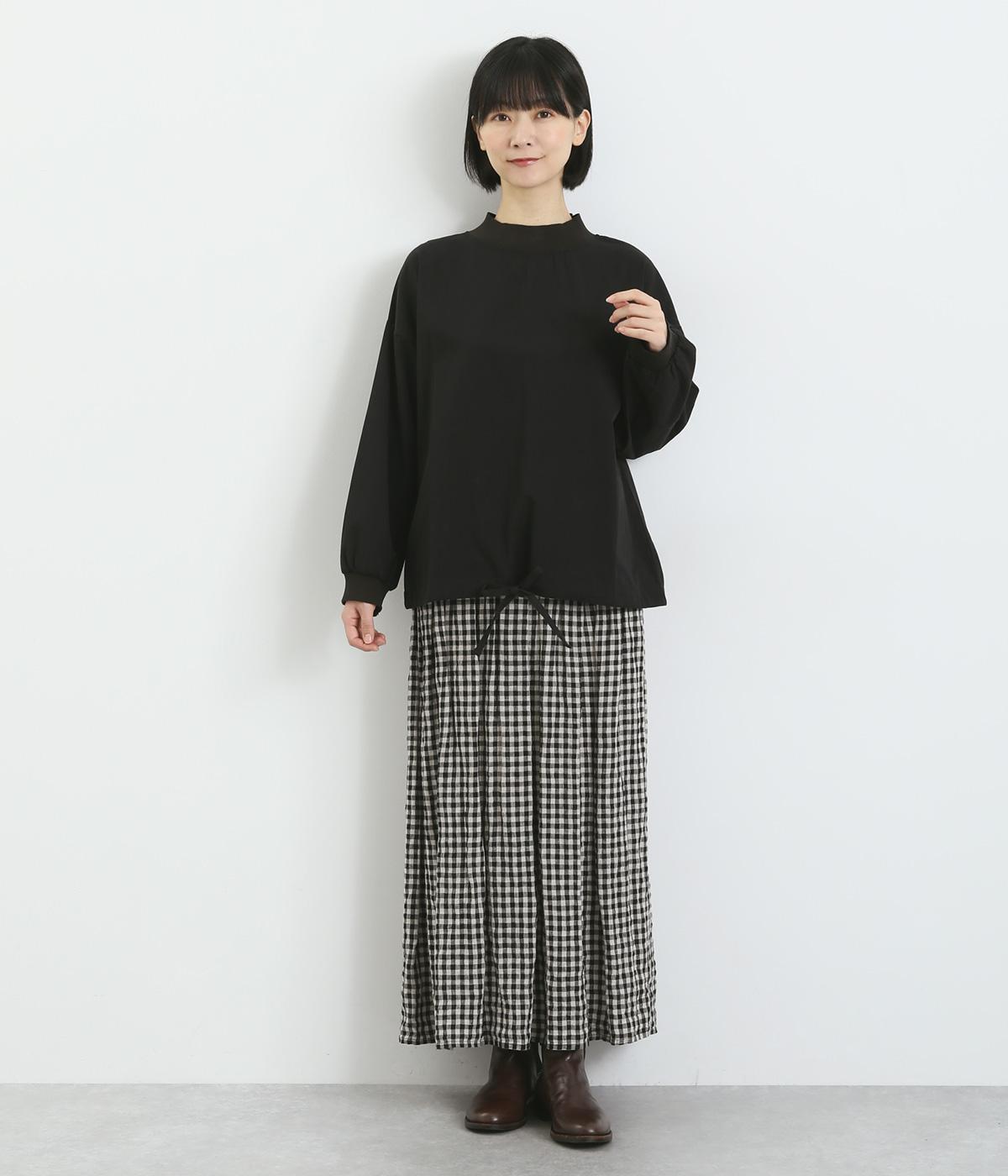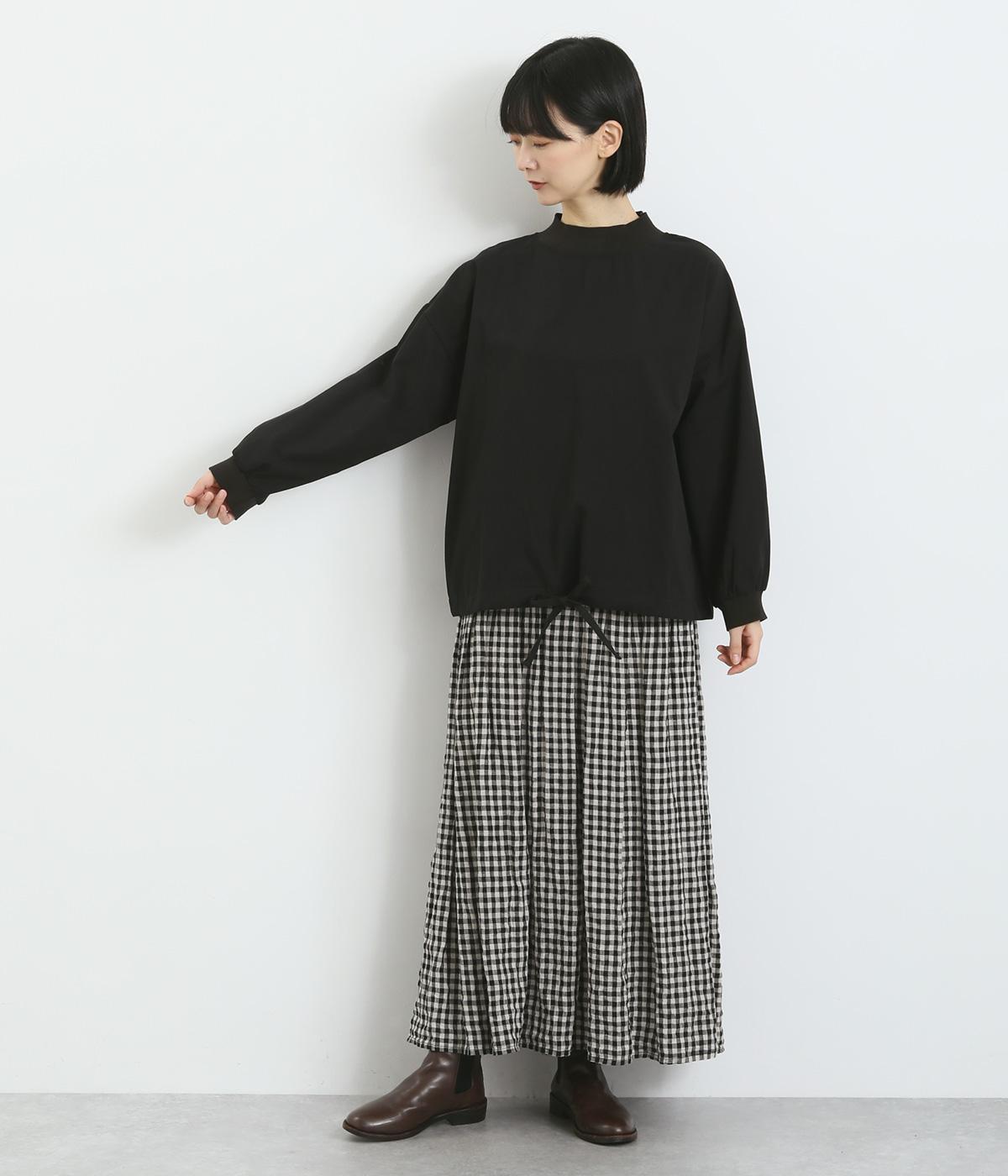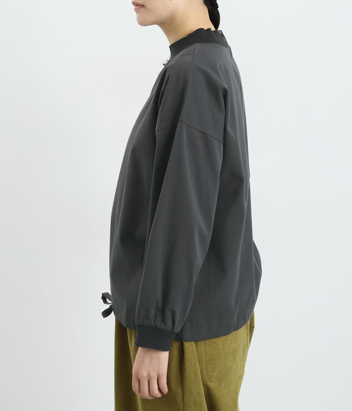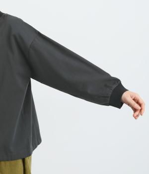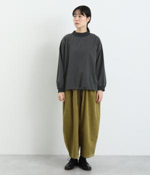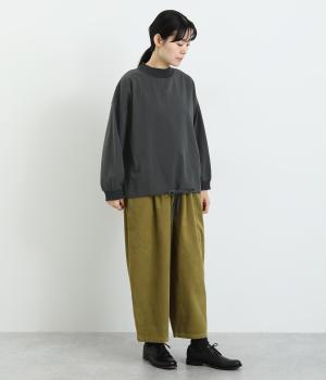 一枚で大人の抜け感を表現できるシンプルなプルオーバー。裾にはヒモを通しているので、キュッと絞ることで立体感を楽しめます。リブ付きのネックと袖口で動きやすさも兼ね備え、機能性も◎です。
