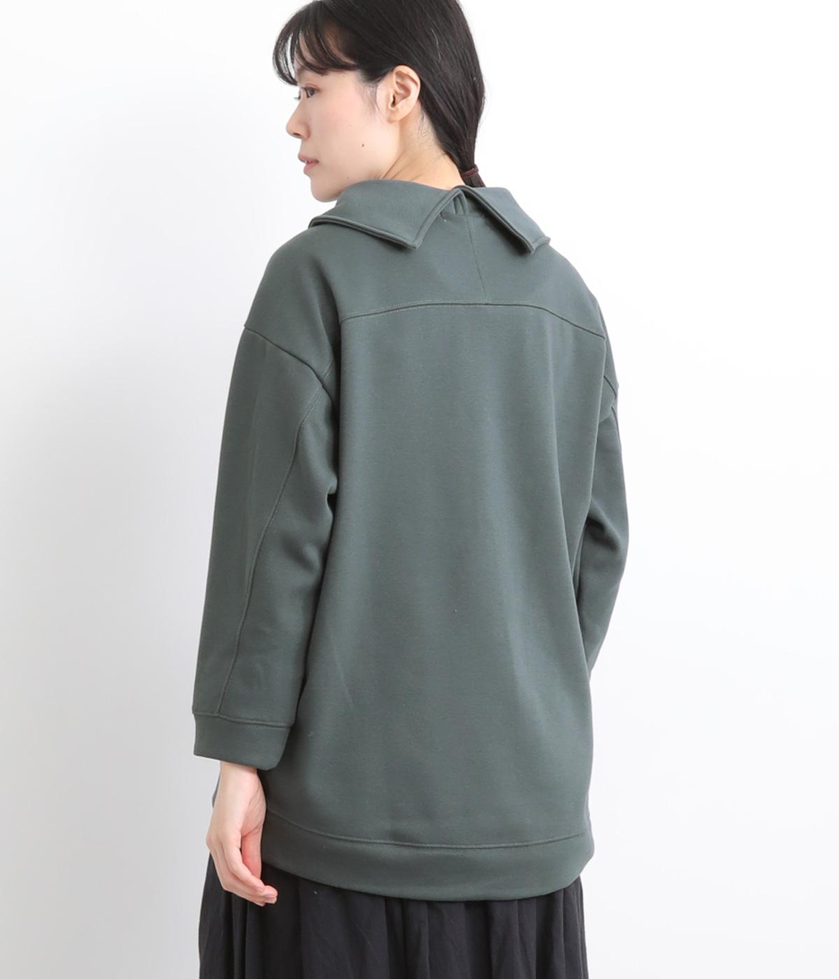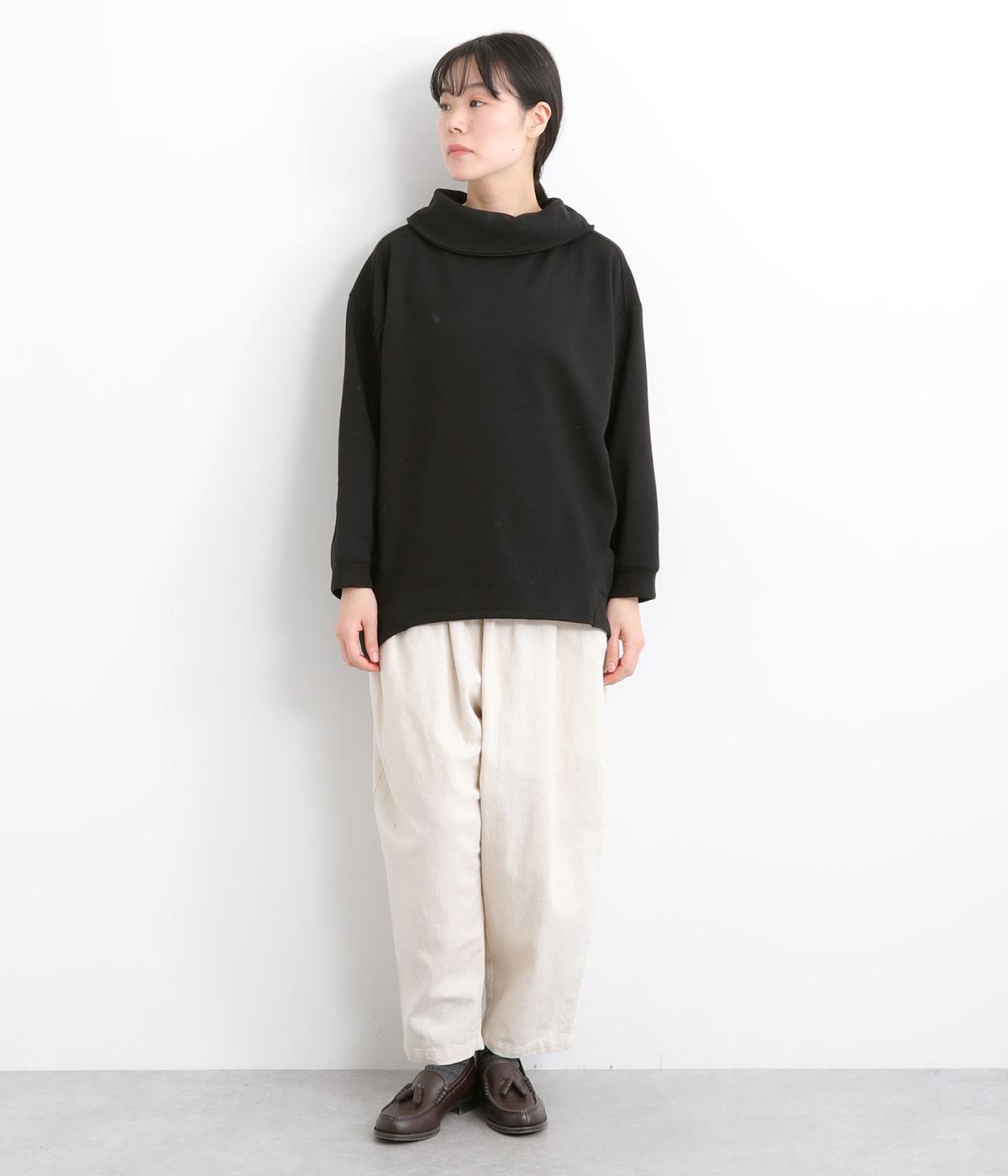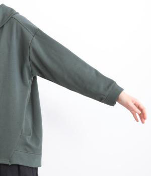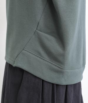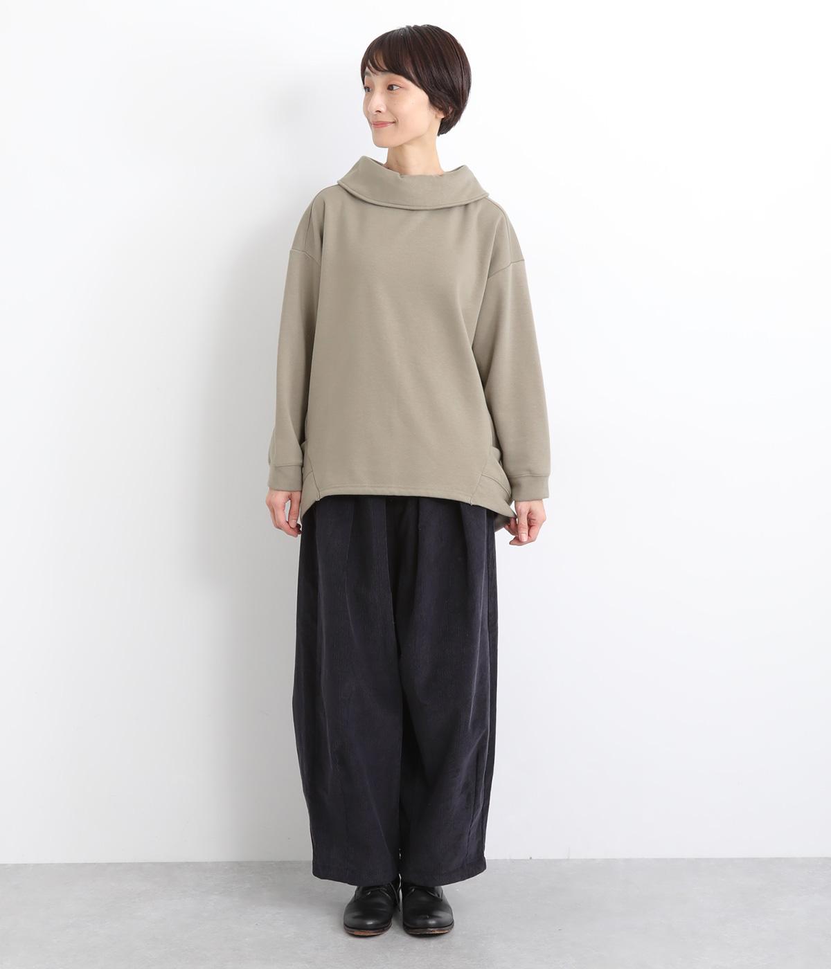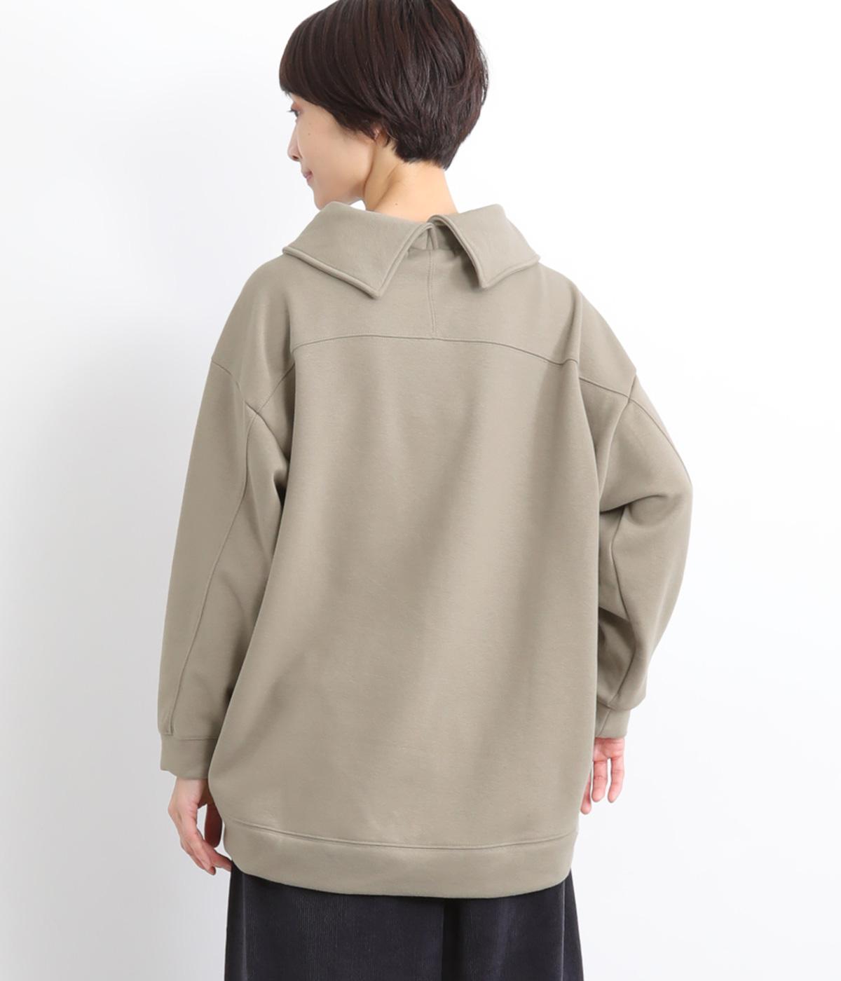 ワントーンですっきりまとめ、ロールカラーが上品な印象を与えるプルオーバーチュニック。前に持ってきた脇線にタックを入れて、さり気なく動きのあるシルエットに仕立てています。シャツ襟のような後ろ姿もいいポイントです。