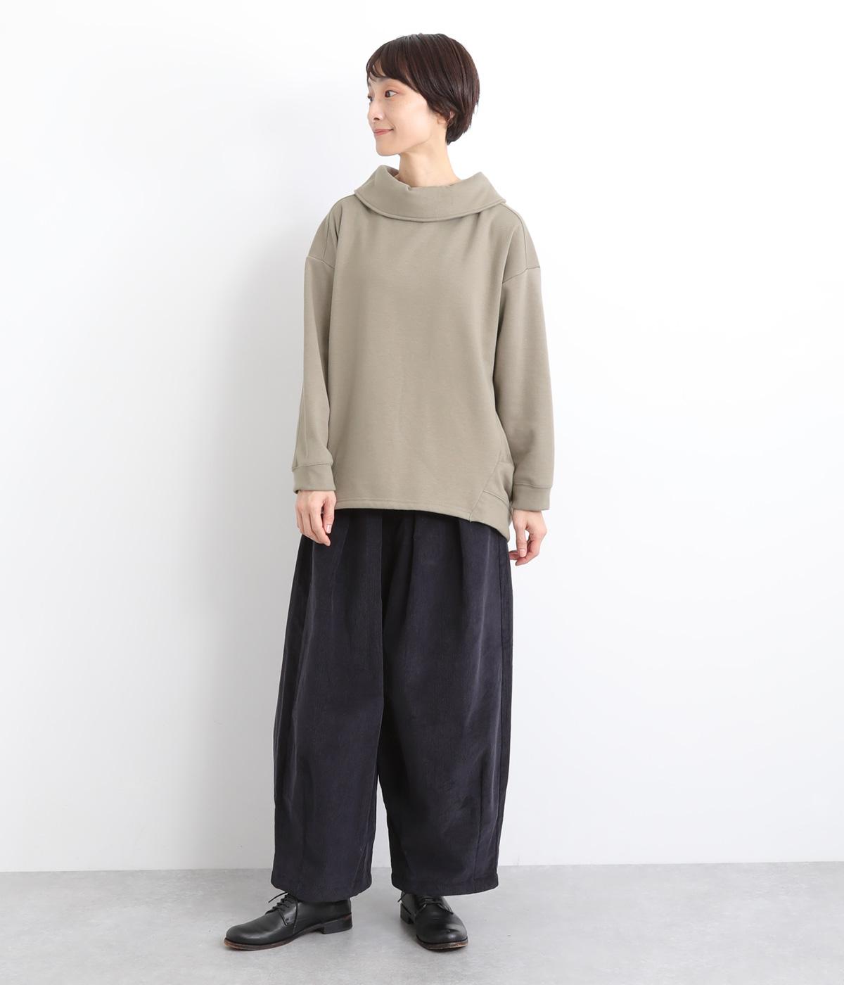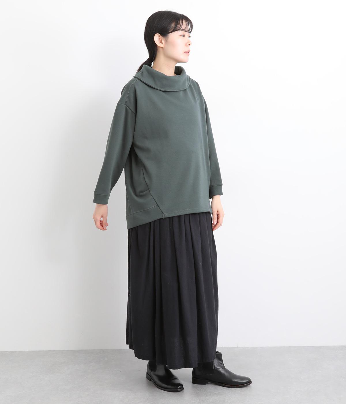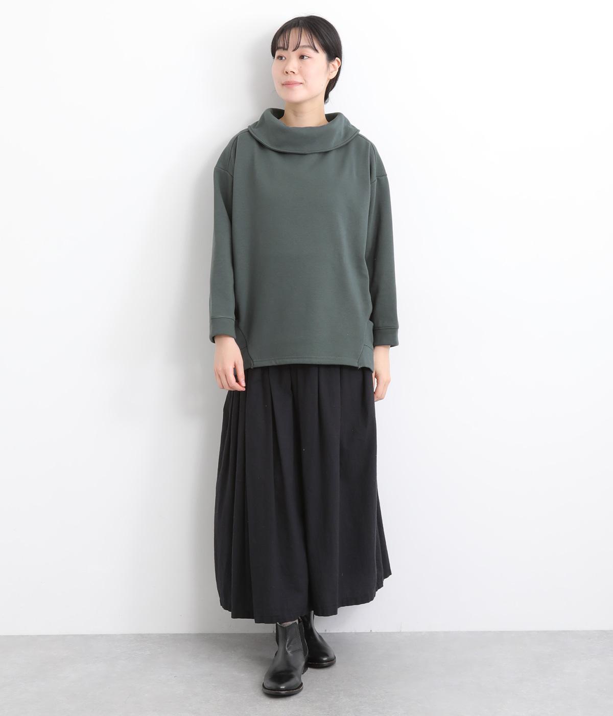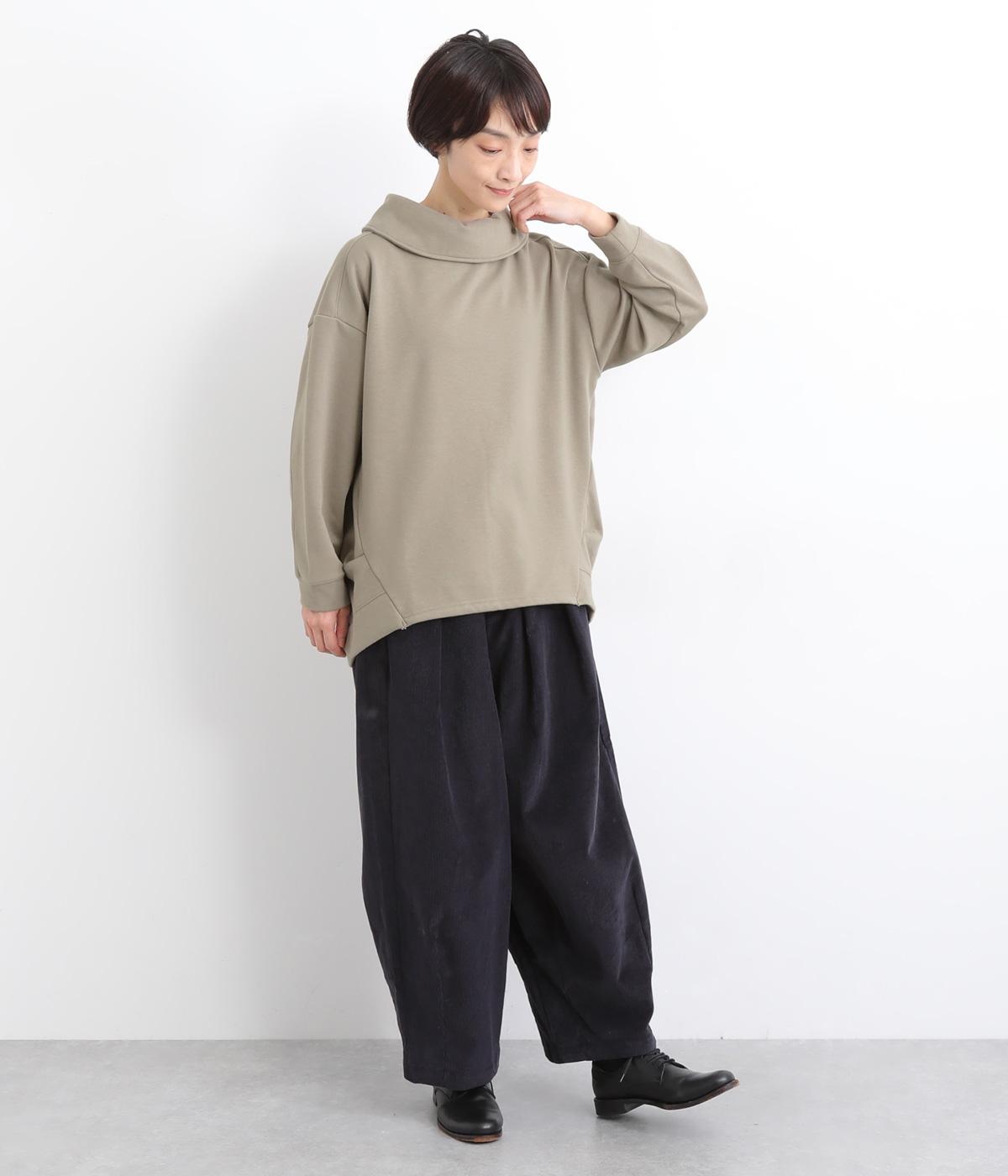 ワントーンですっきりまとめ、ロールカラーが上品な印象を与えるプルオーバーチュニック。前に持ってきた脇線にタックを入れて、さり気なく動きのあるシルエットに仕立てています。シャツ襟のような後ろ姿もいいポイントです。