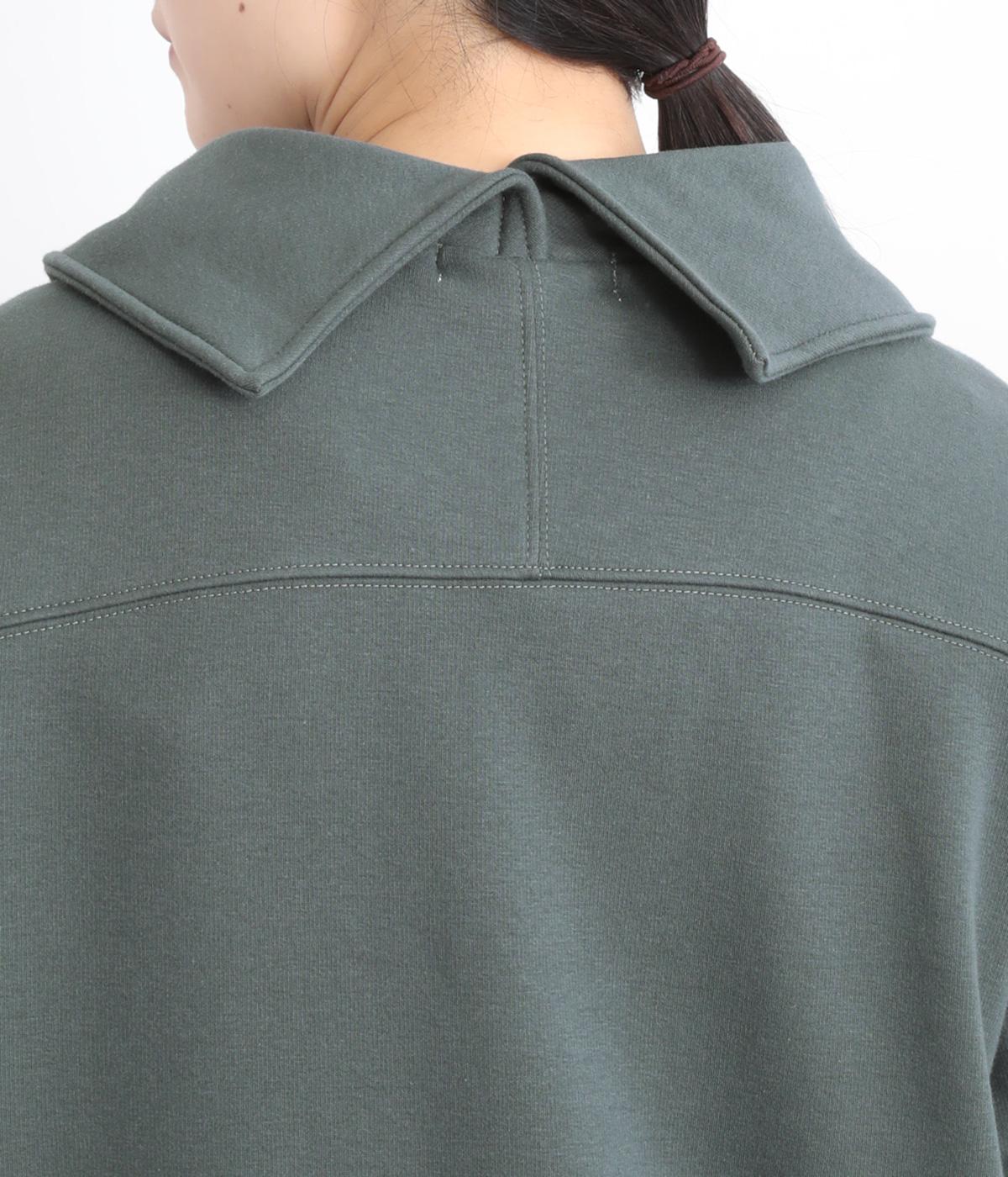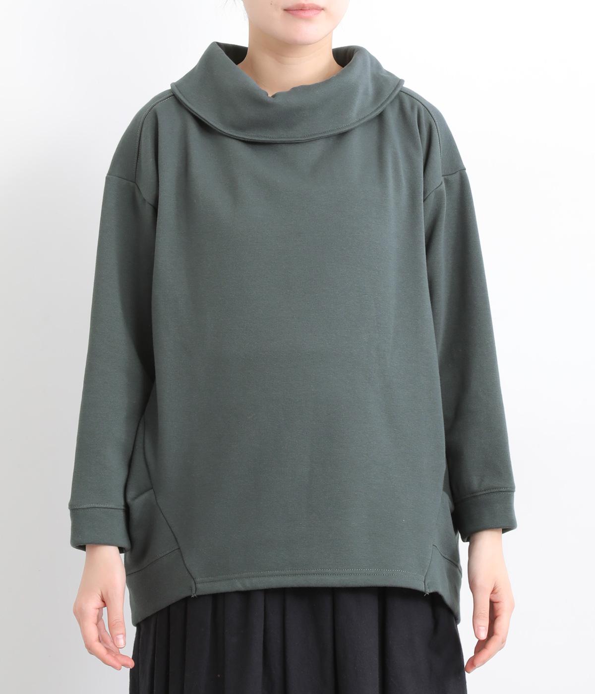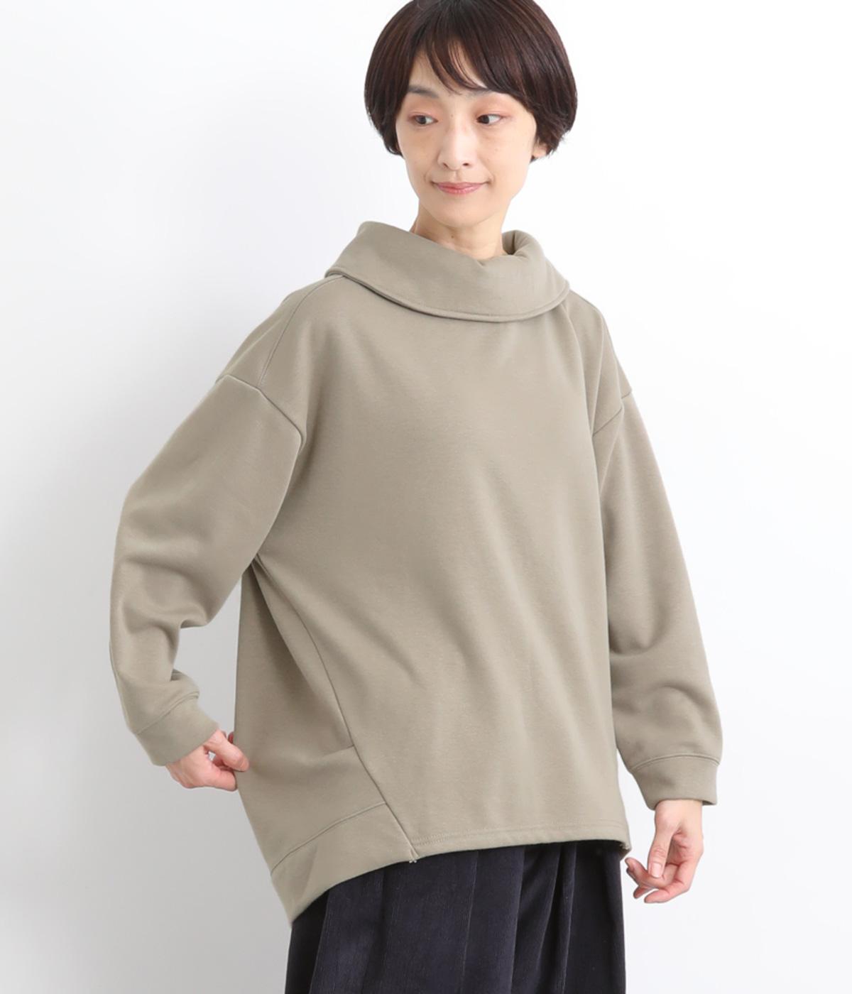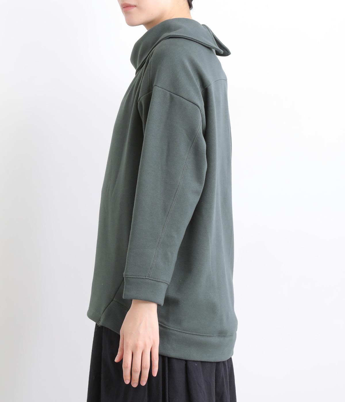 ワントーンですっきりまとめ、ロールカラーが上品な印象を与えるプルオーバーチュニック。前に持ってきた脇線にタックを入れて、さり気なく動きのあるシルエットに仕立てています。シャツ襟のような後ろ姿もいいポイントです。
